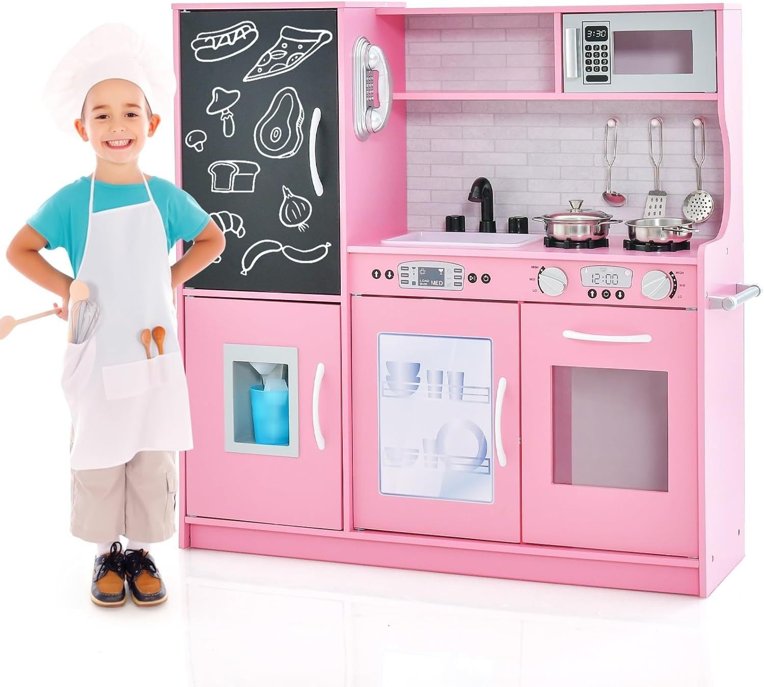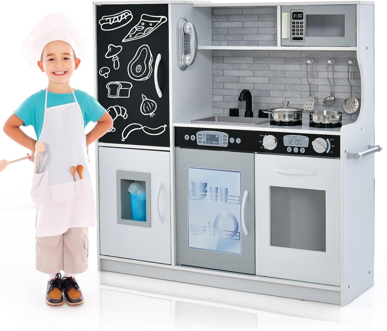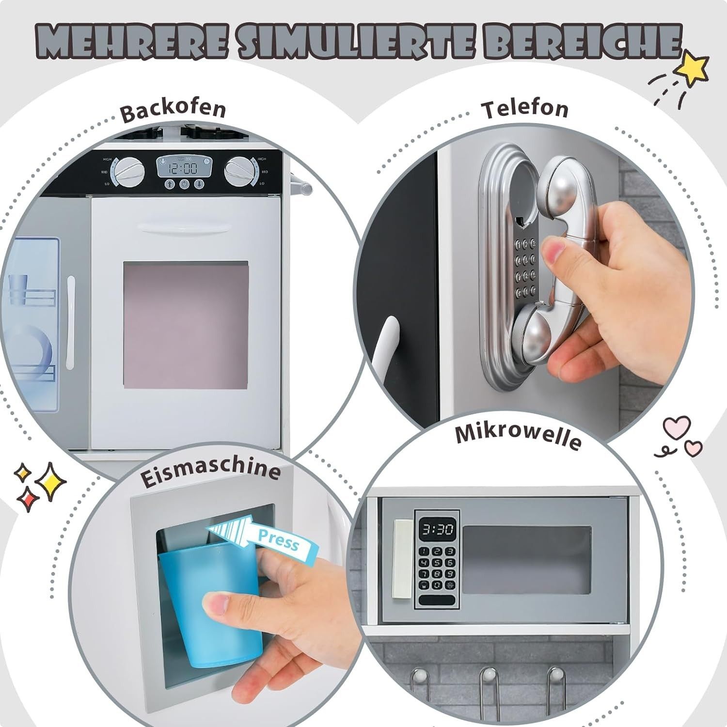 Kinderküche mit 10 Spielzubehör, Spielküche Kinder mit Tafel, Spielzeugküche