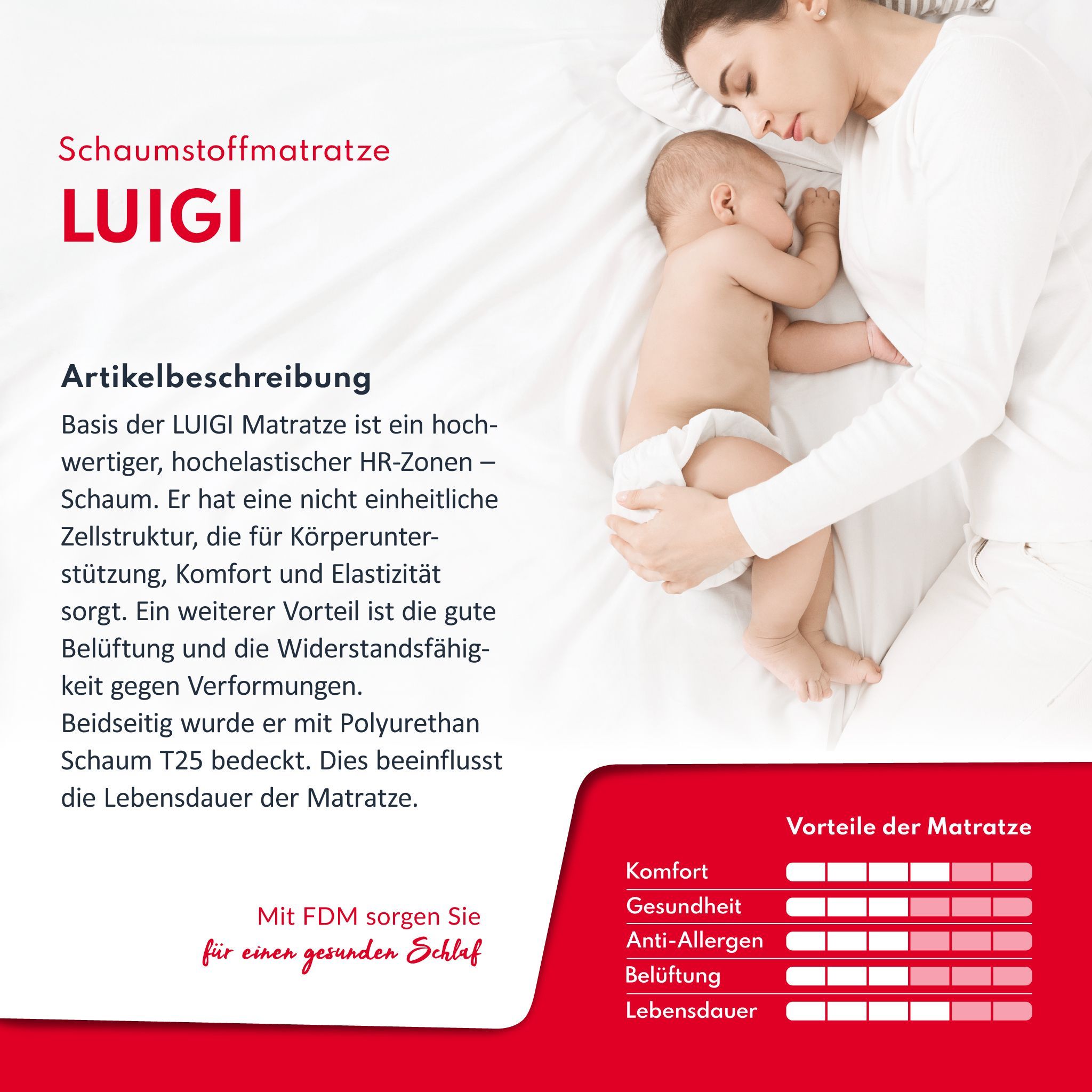 Kindermatratze LUIGI 7 Zonen Premium H3 HR Kaltschaum 11 cm Größe wählbar