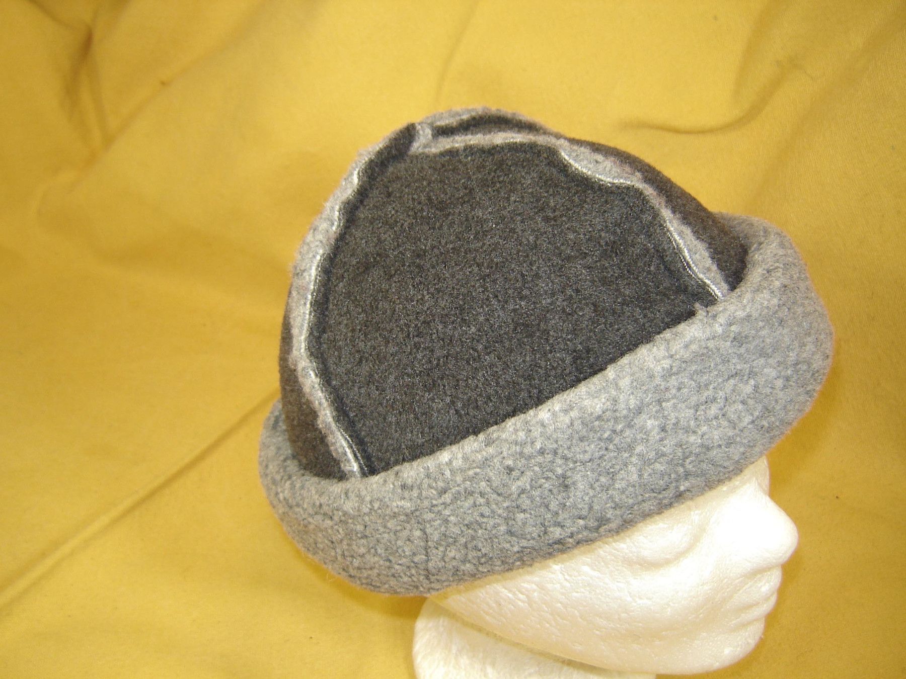 Kindermütze dicker Fleece grau und mittelgrau mit Sichtnähten