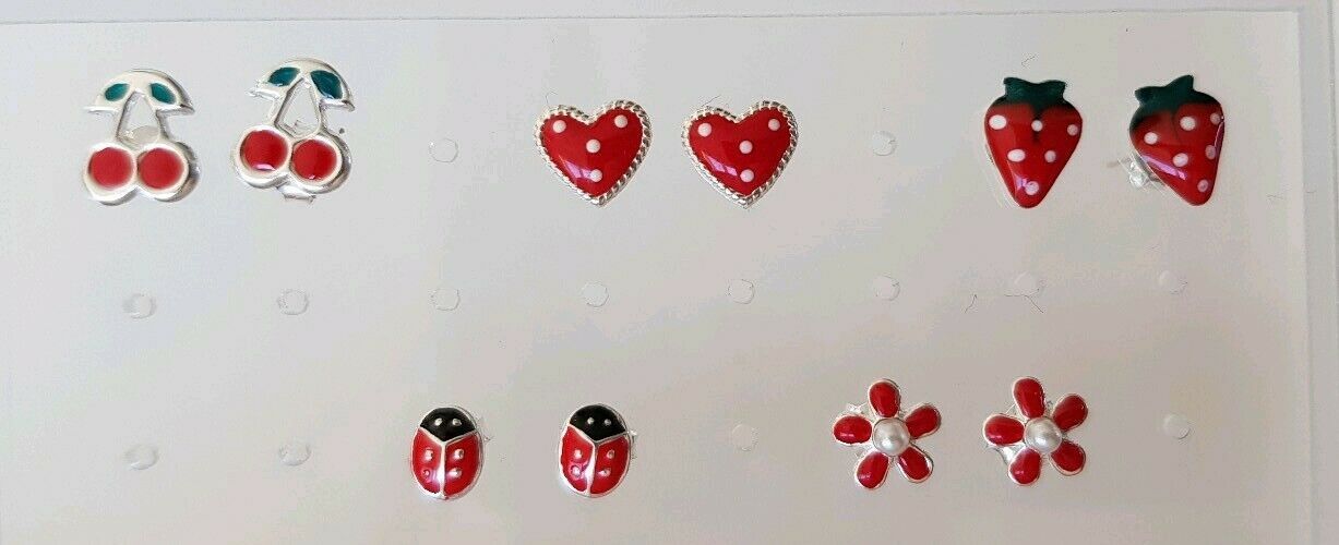 925er Silber Ohrringe für Mädchen Kirsche Herz Blume Marienkäfer Erdbeere Details: 925 er Silber Größe: 0,5 - 0,8 cm Verschluß: Butterfly Motiv wählbar Farbe: rot Stablänge: ca 1,1 cm Neuware Der Kaufpreis betrifft immer 1 Paar = 2 Stück gleicher Sorte egal, wie viele Paare Sie kaufen, Versandkosten