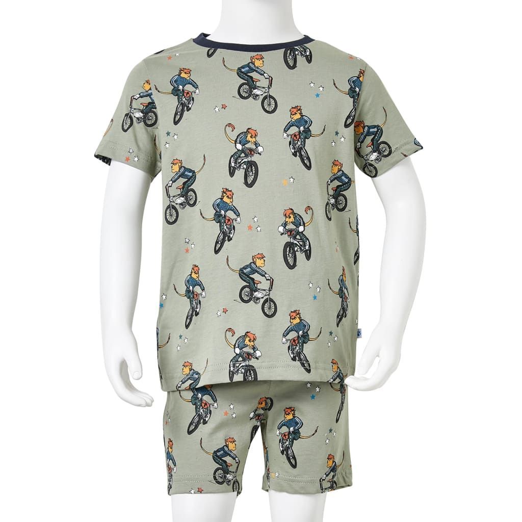 vidaXL Kinderpyjama mit Kurzen Ärmeln Hellkhaki 140