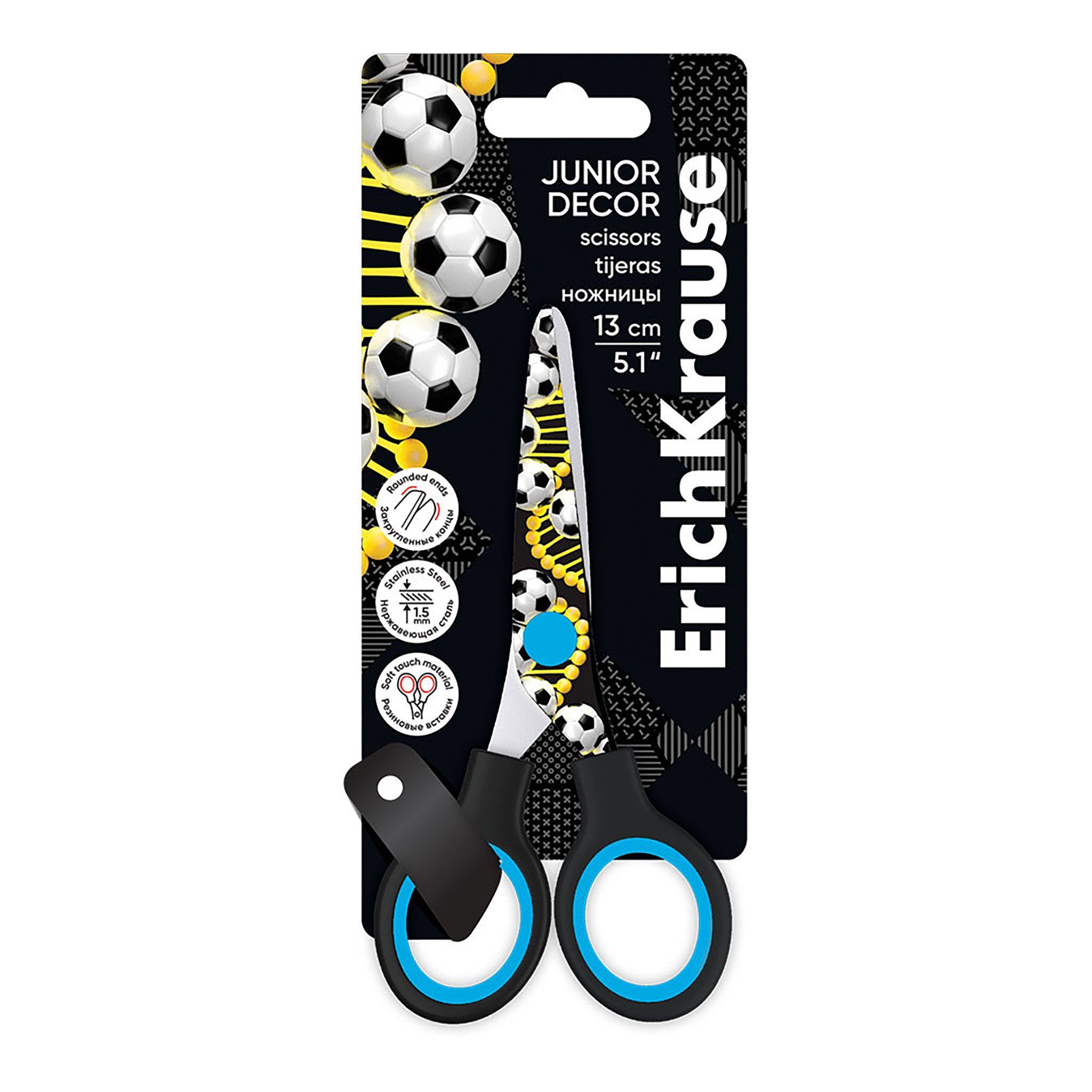 Kinderschere Junior 13cm mit Fußball Motiv abgerundete Spitzen Schwarz