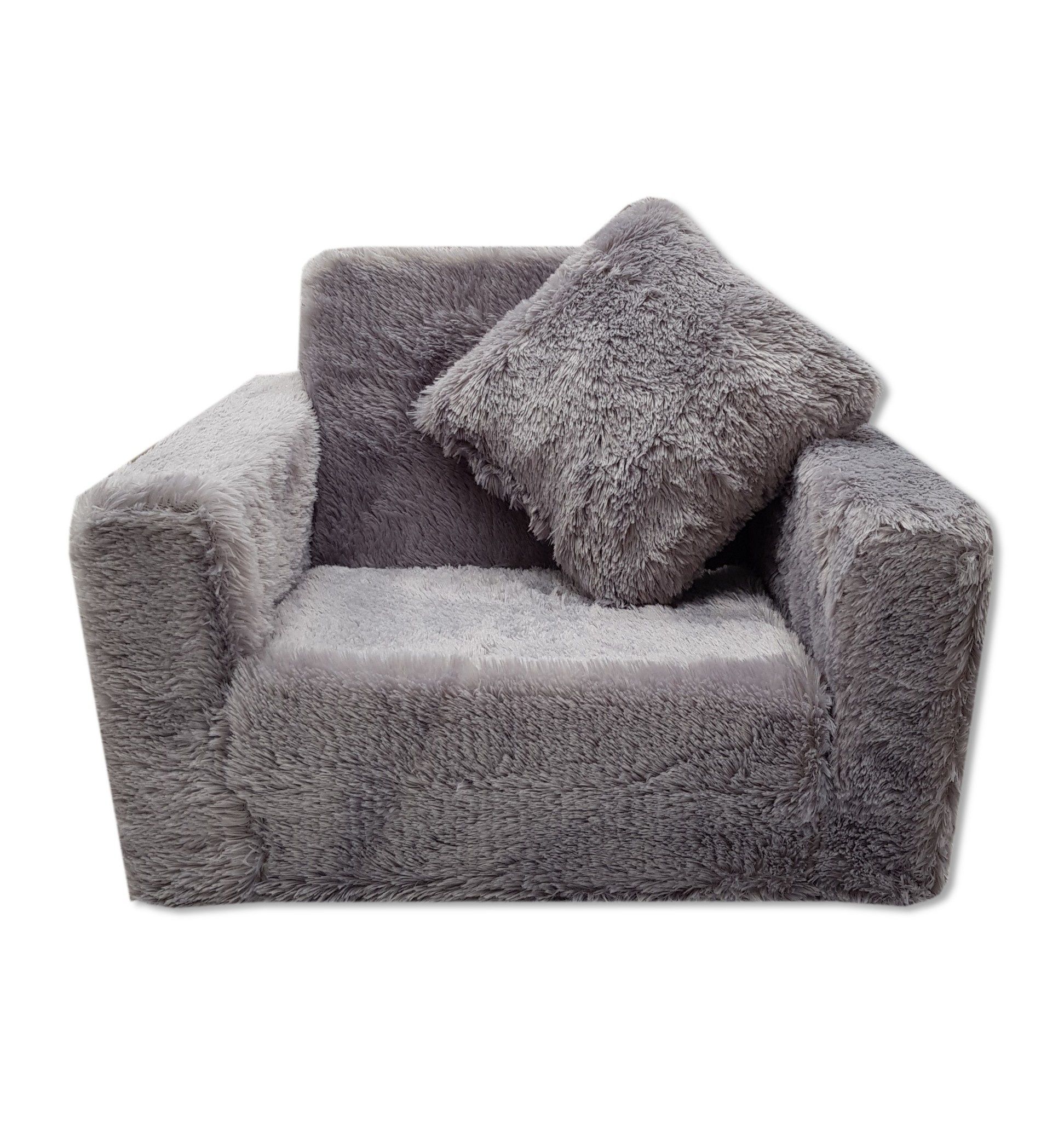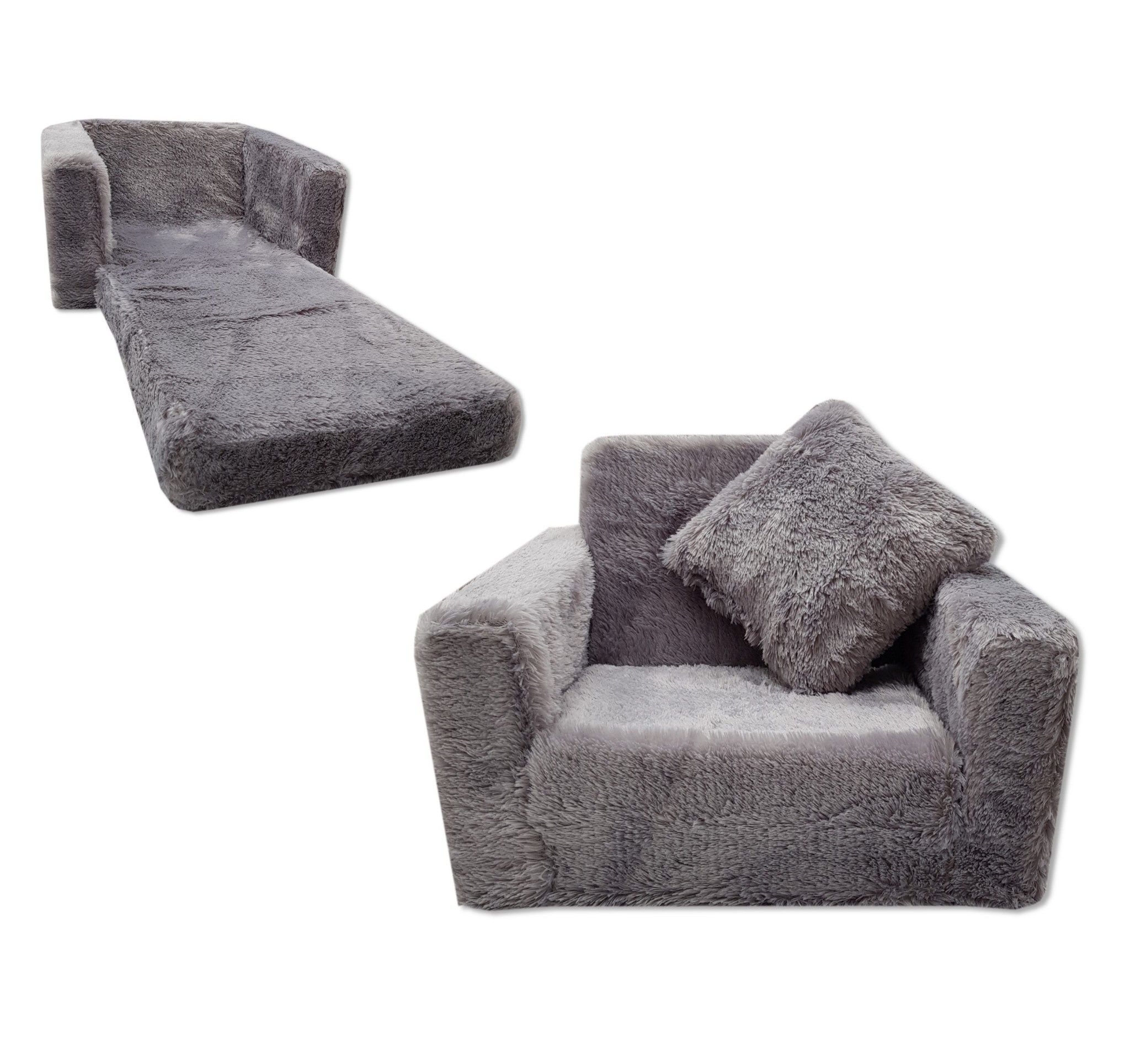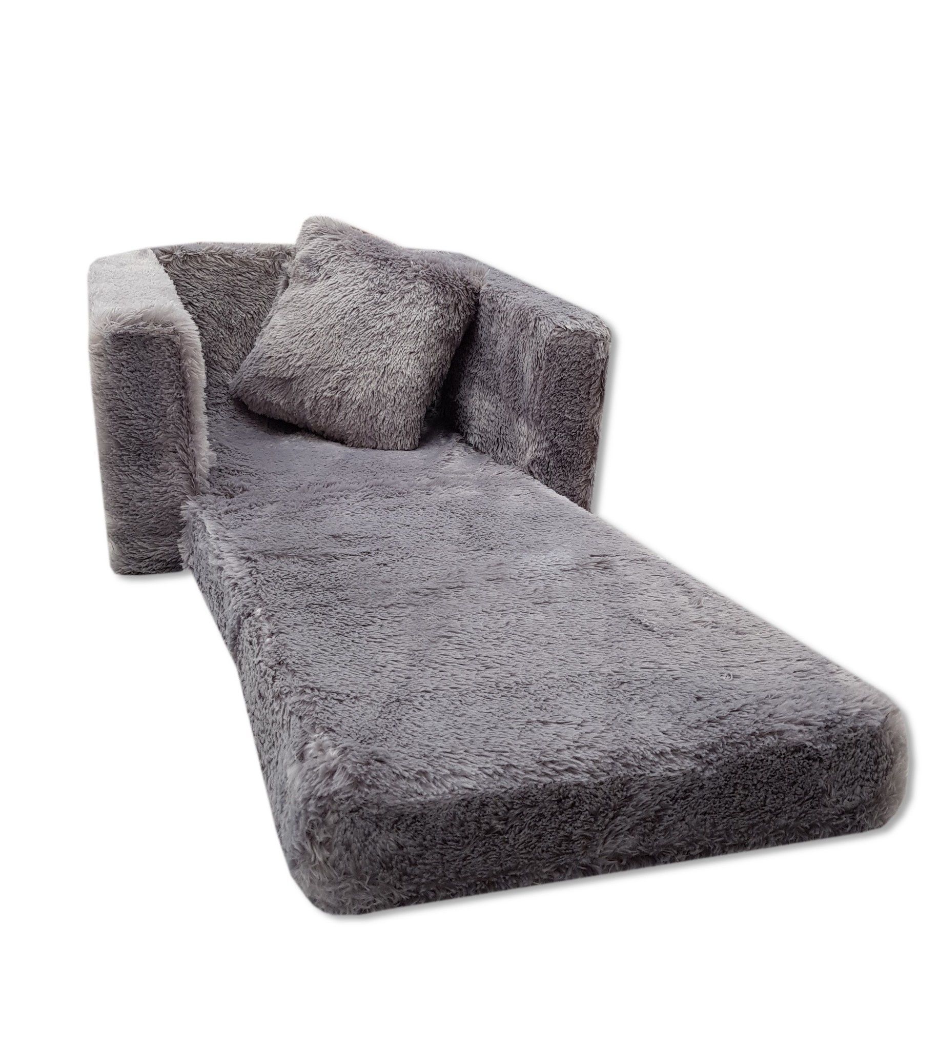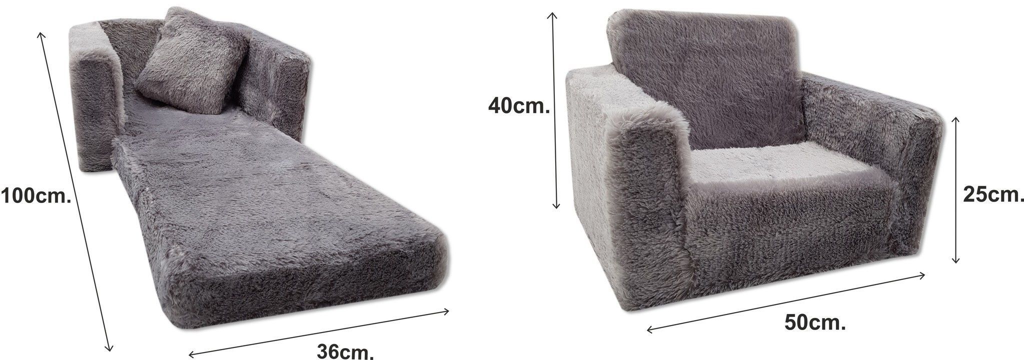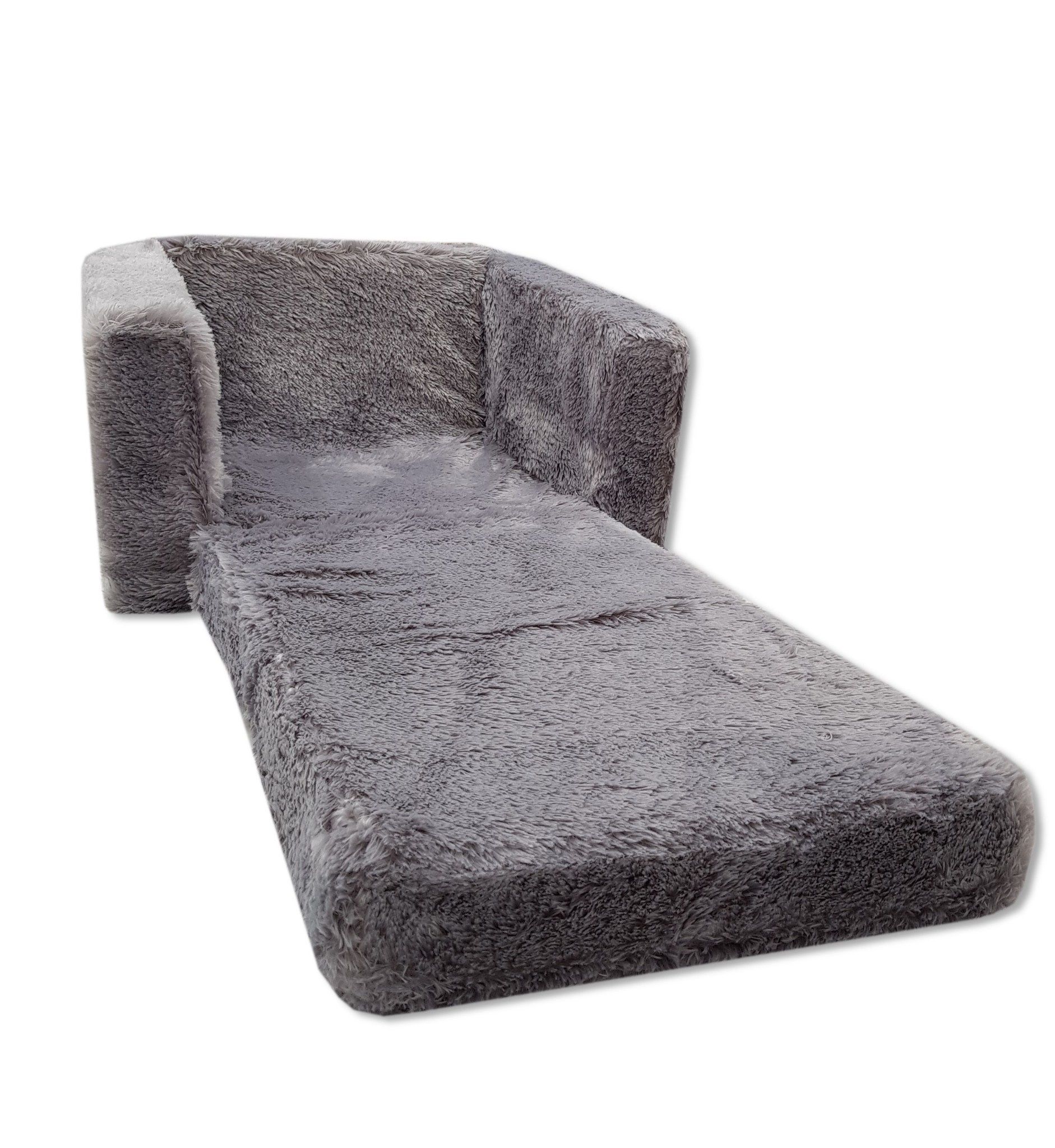 Kinderschlafsofa und Gästebett in einem - 100cm x 36cm x 25cm - grauer Plüsch