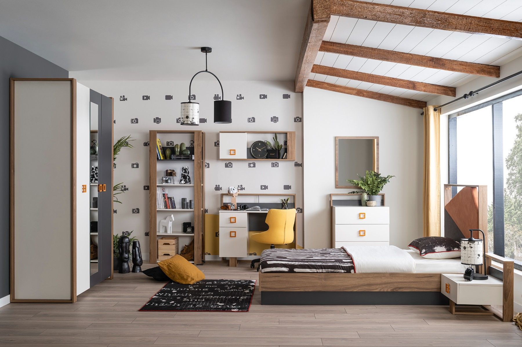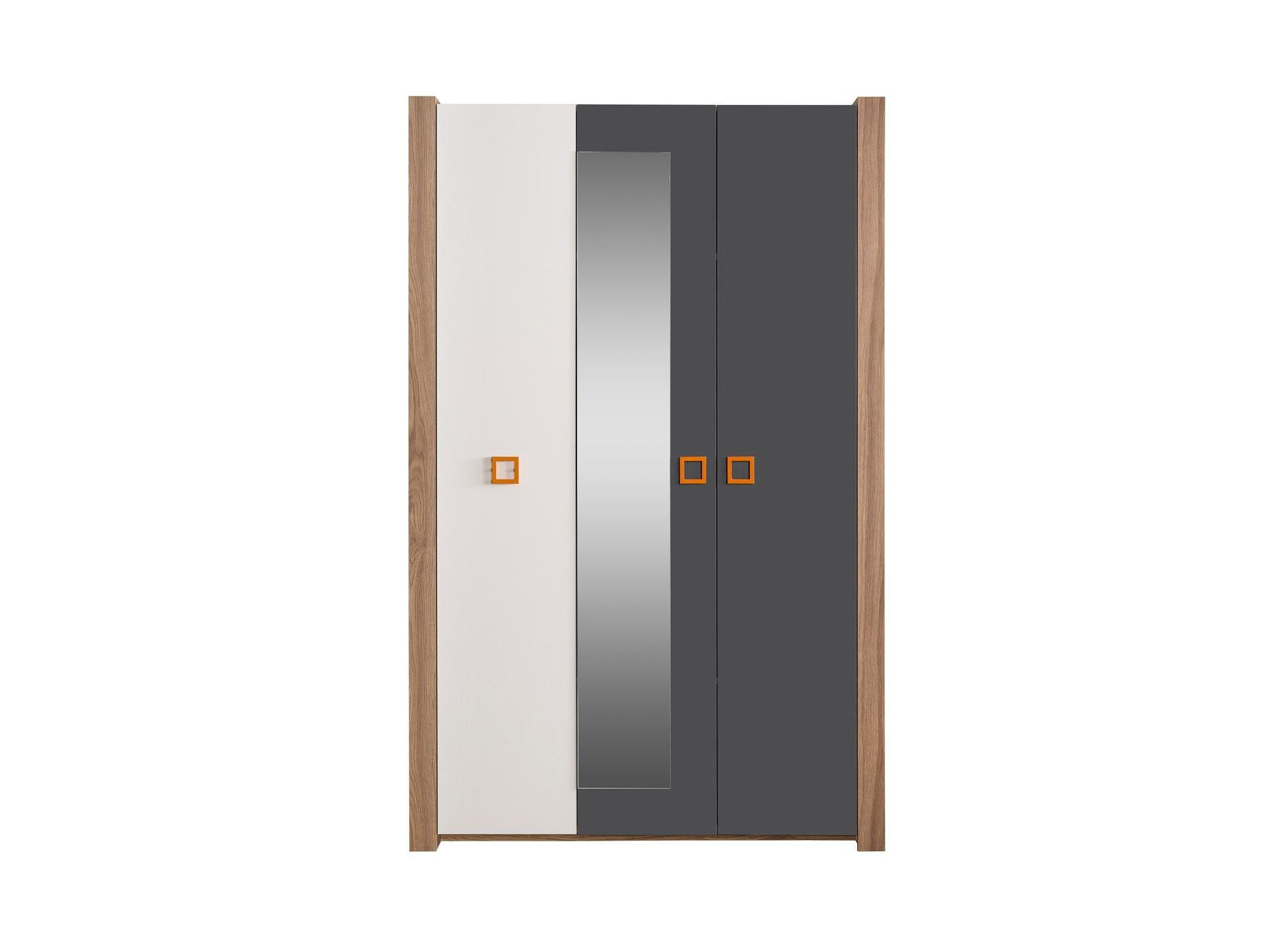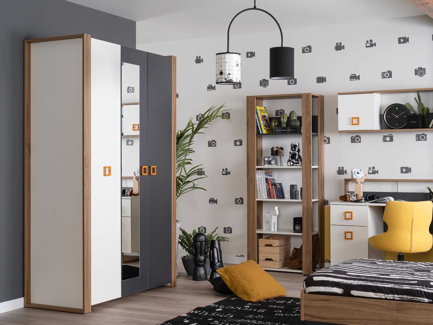 Kinderschlafzimmerset Comfort 3 türiger Kleiderschrank Weiß / Anthrazit / Braun