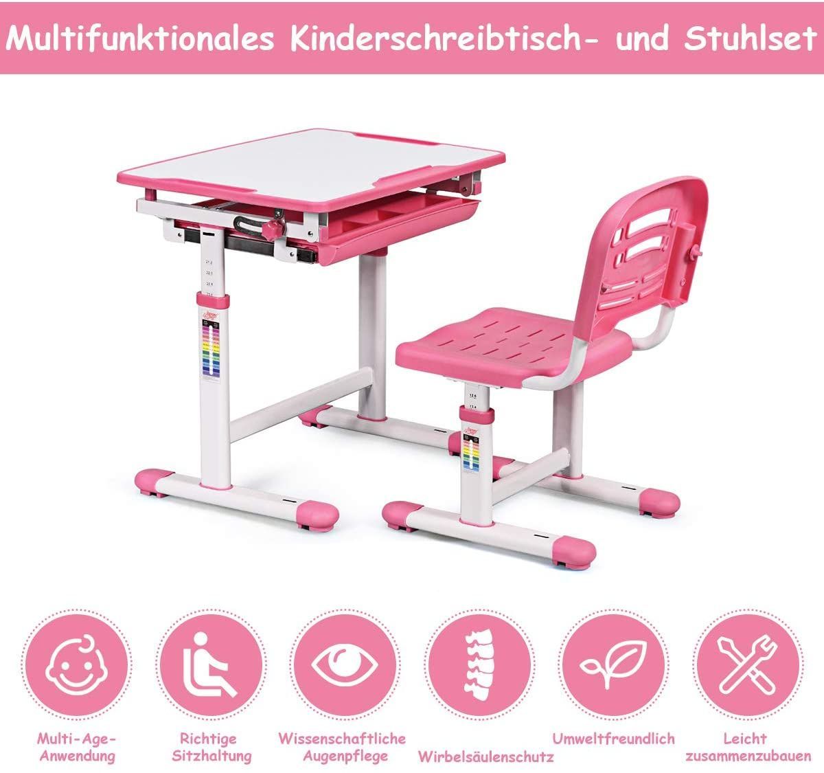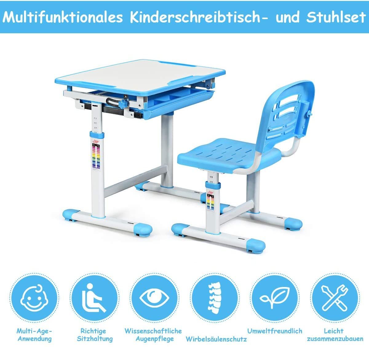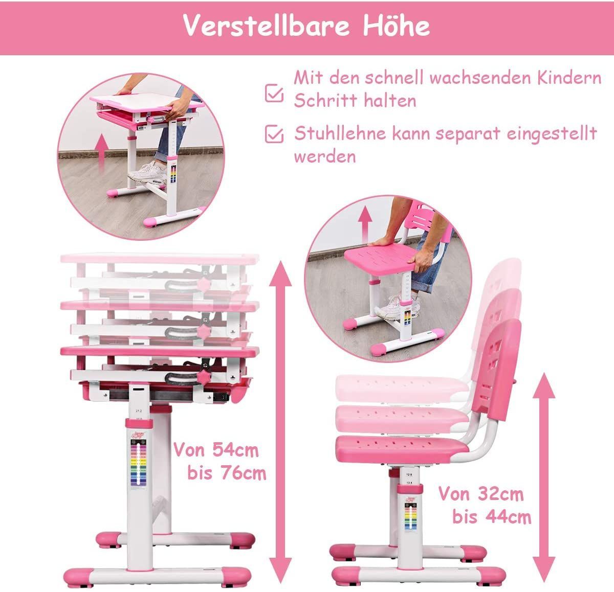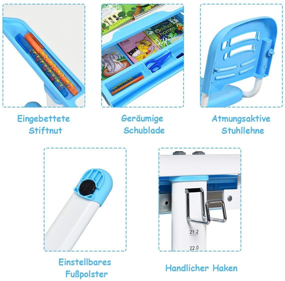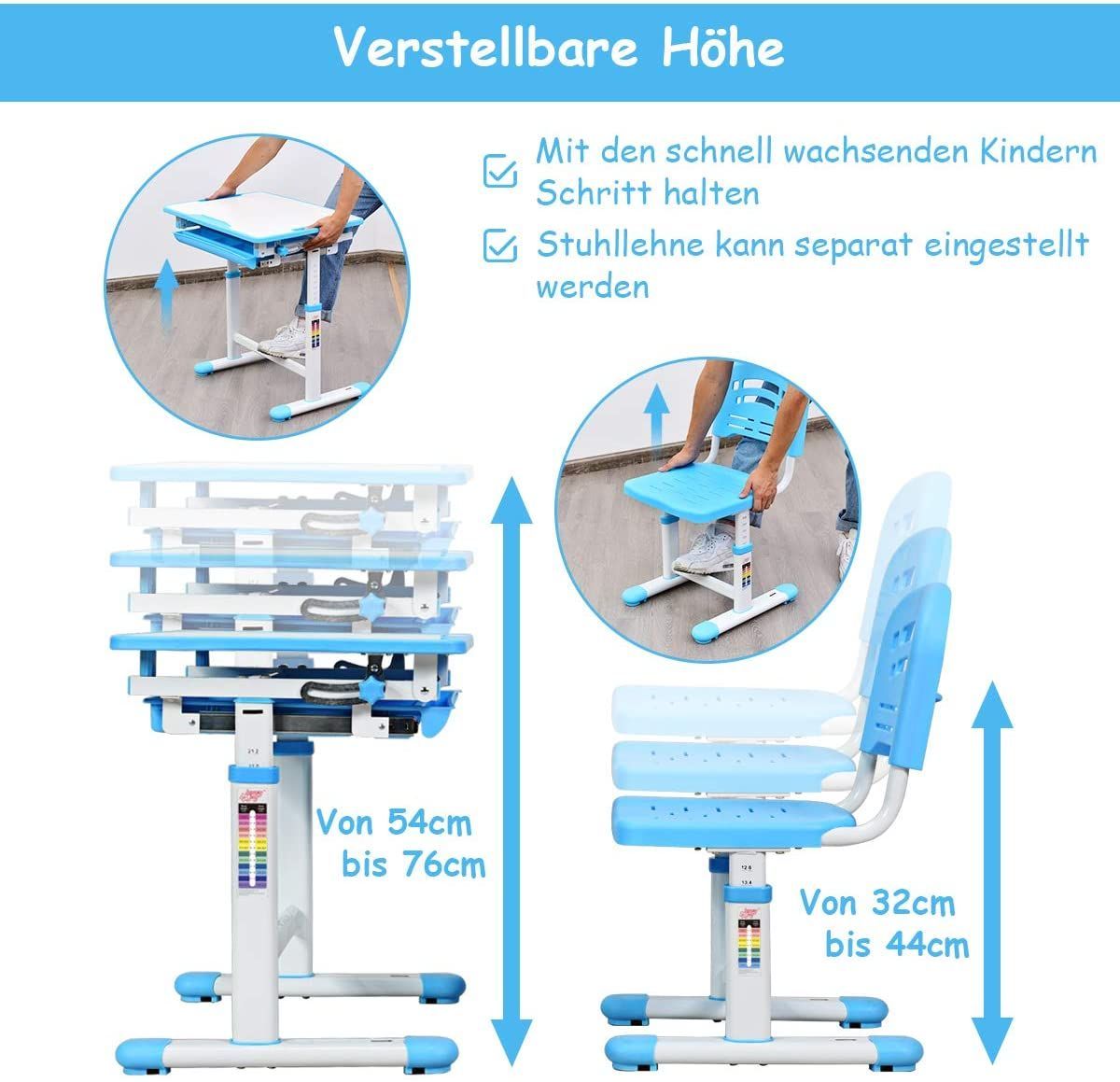 Kinderschreibtisch höhenverstellbar, Schülerschreibtisch Kinder neigungsverstellbar