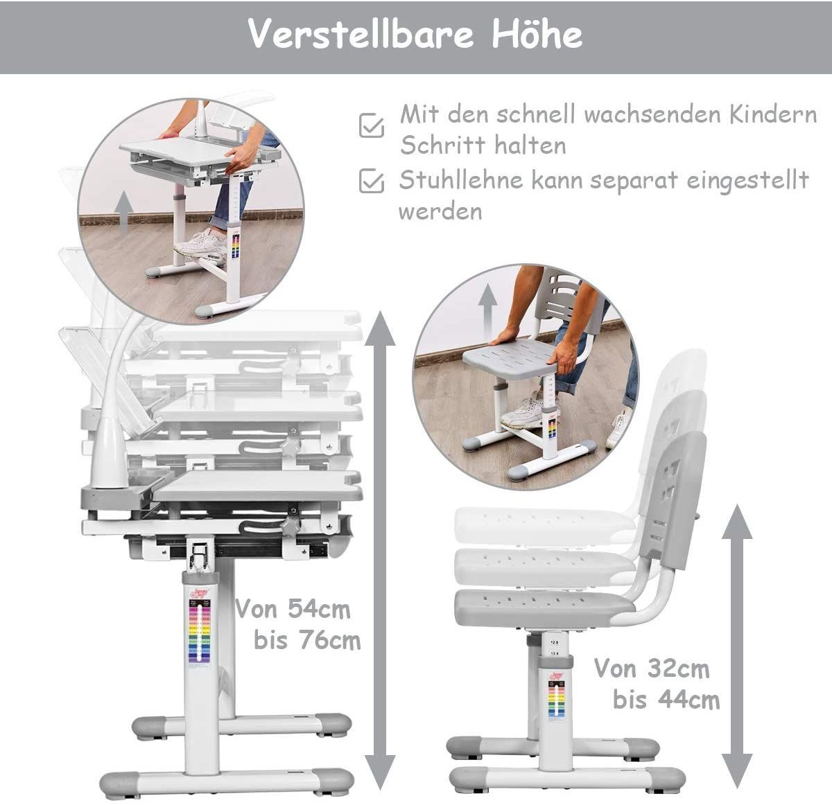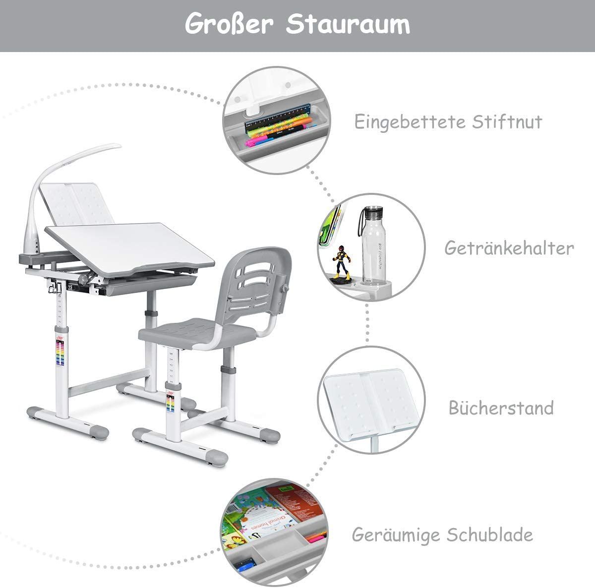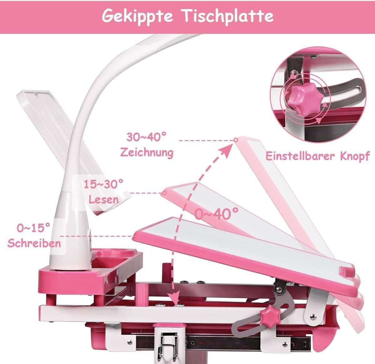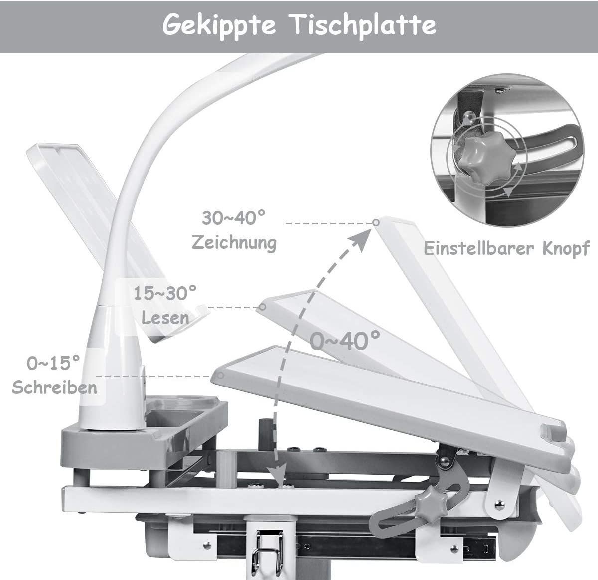Kinderschreibtisch höhenverstellbar, Schülerschreibtisch mit Lampe, Schreibtisch