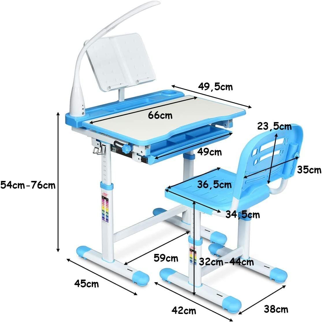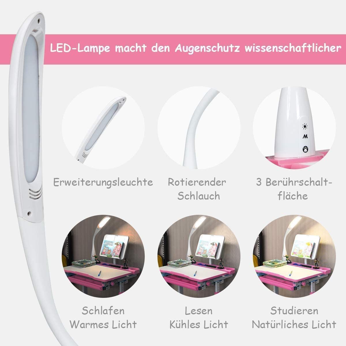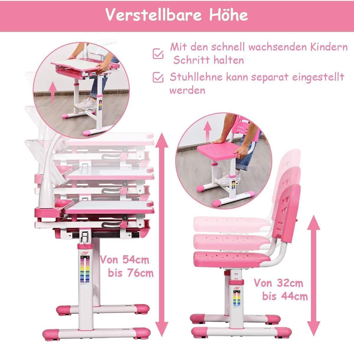 Kinderschreibtisch höhenverstellbar, Schülerschreibtisch mit Lampe, Schreibtisch