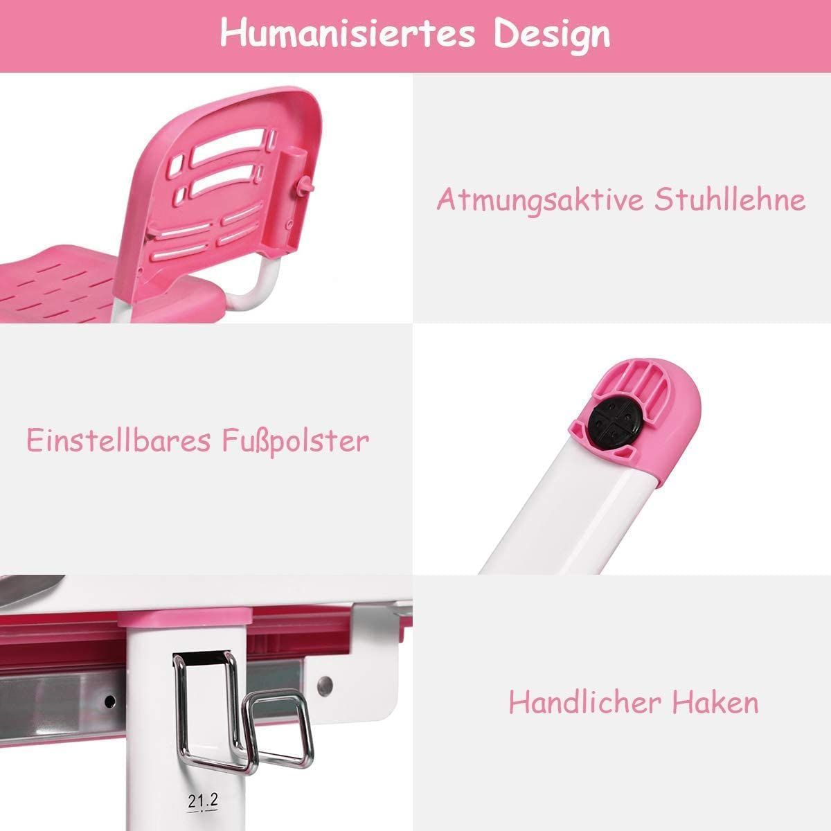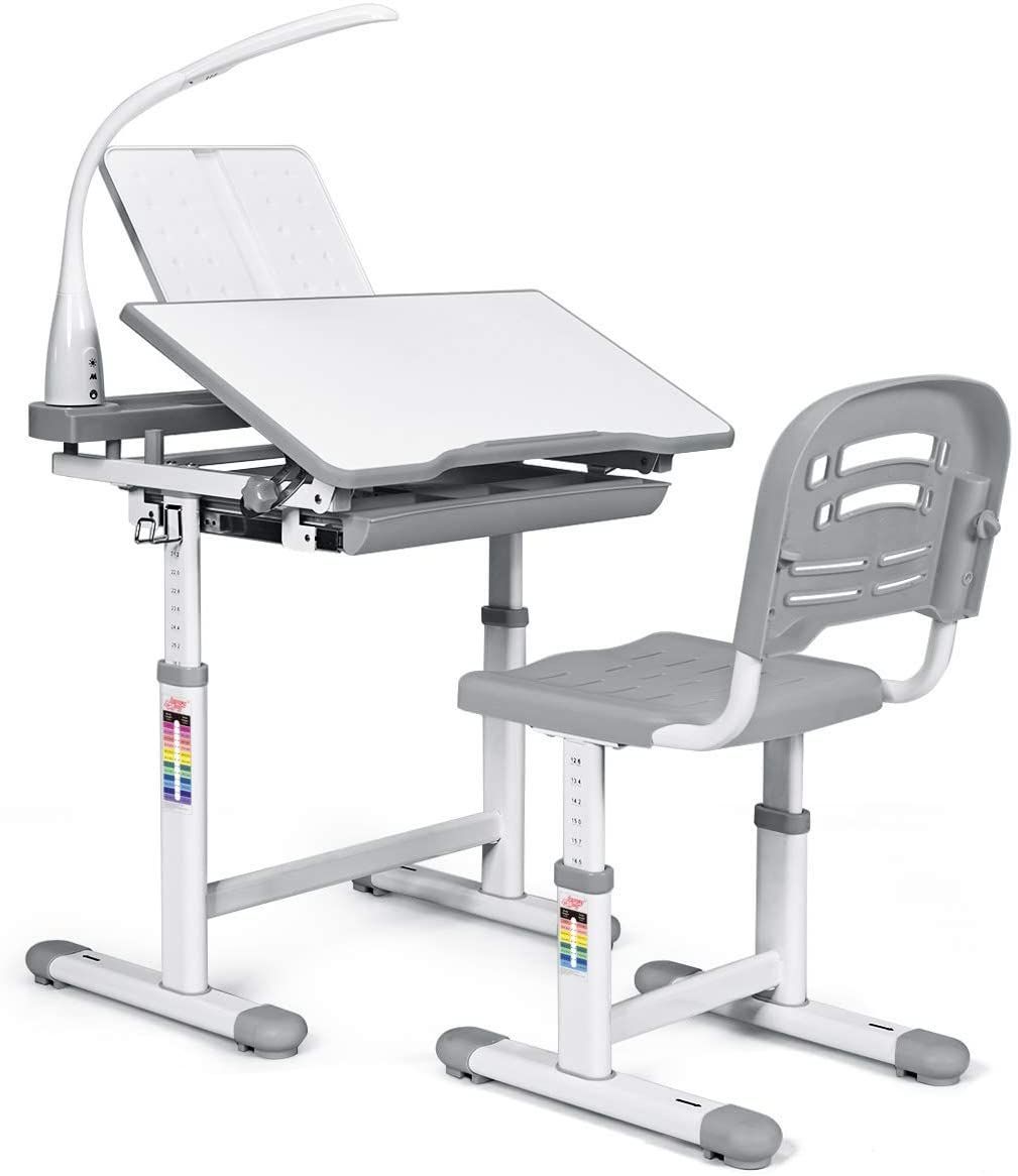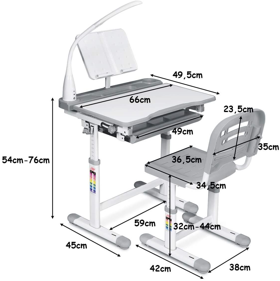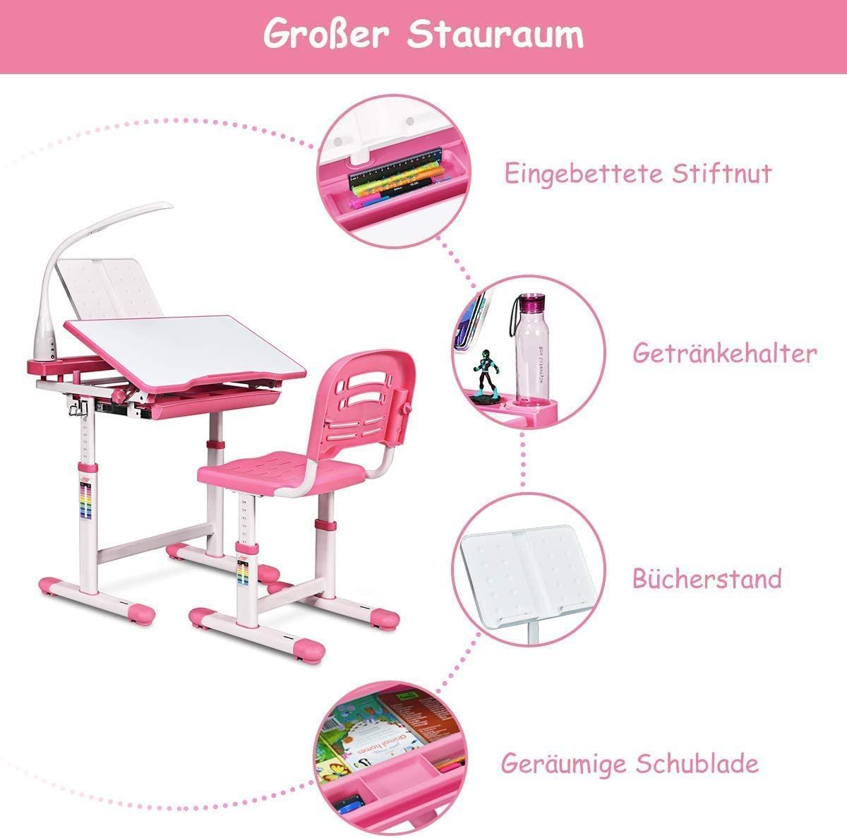 Kinderschreibtisch höhenverstellbar, Schülerschreibtisch mit Lampe, Schreibtisch