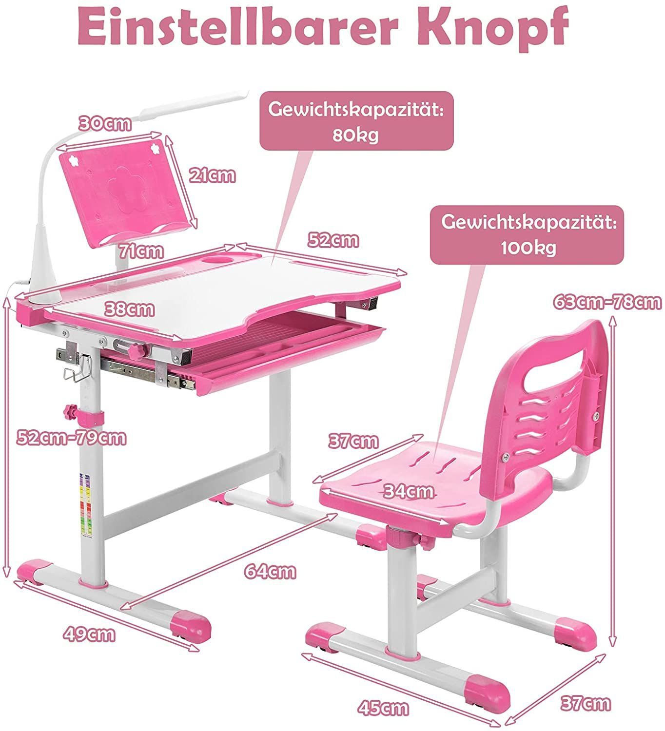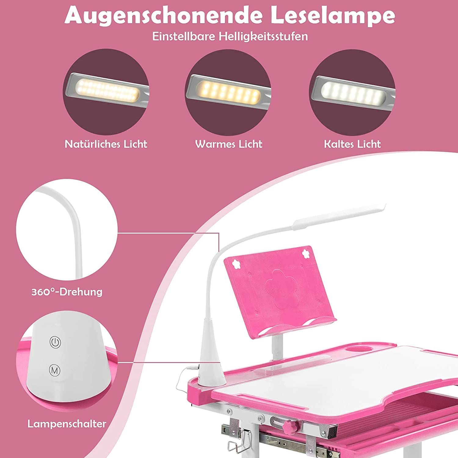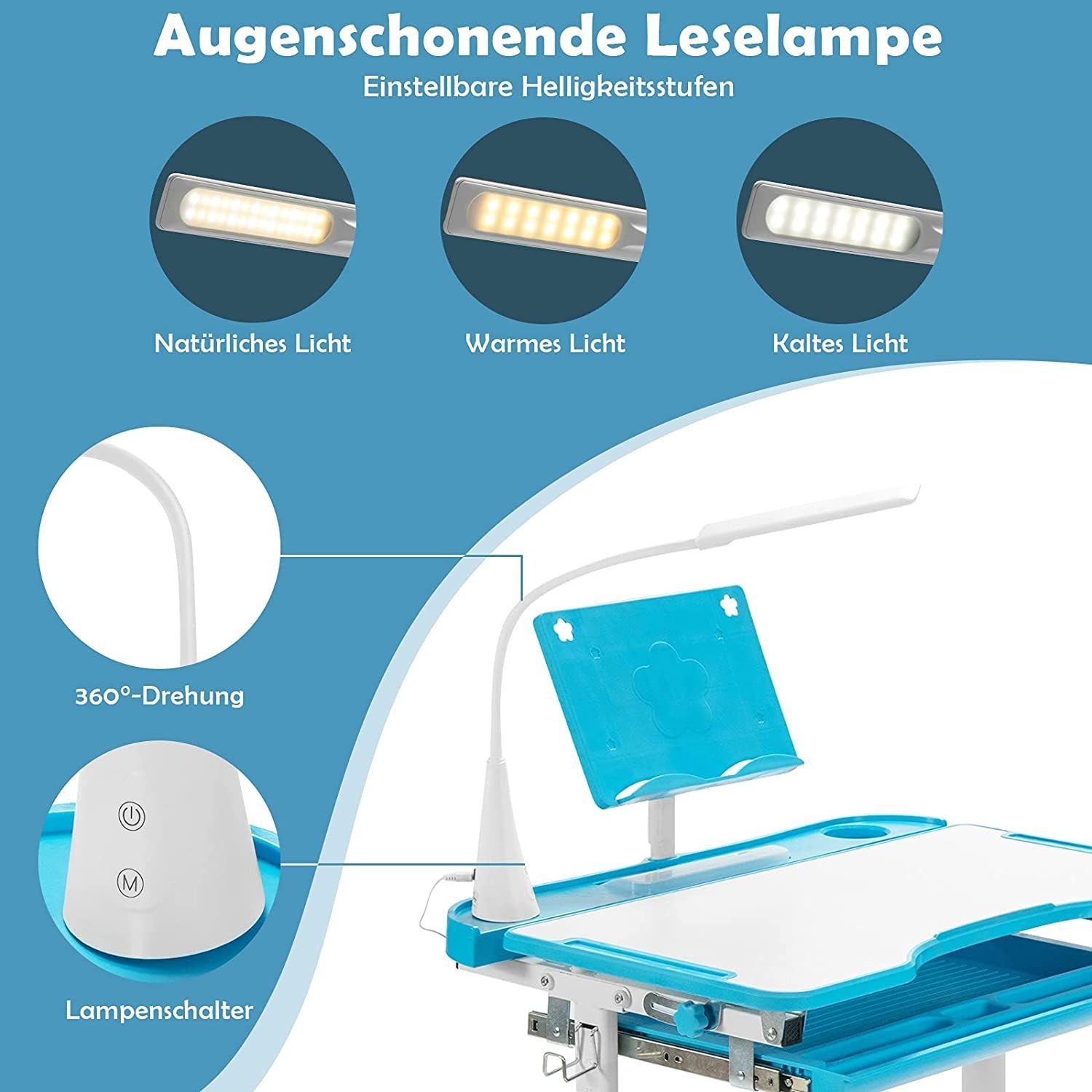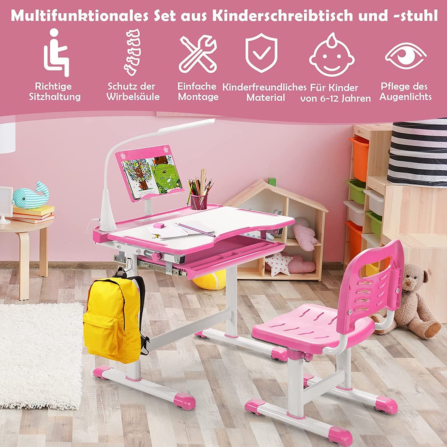 Kinderschreibtisch mit Bücherständer & LED, höhenverstellbarer Kindertisch&Stuhl