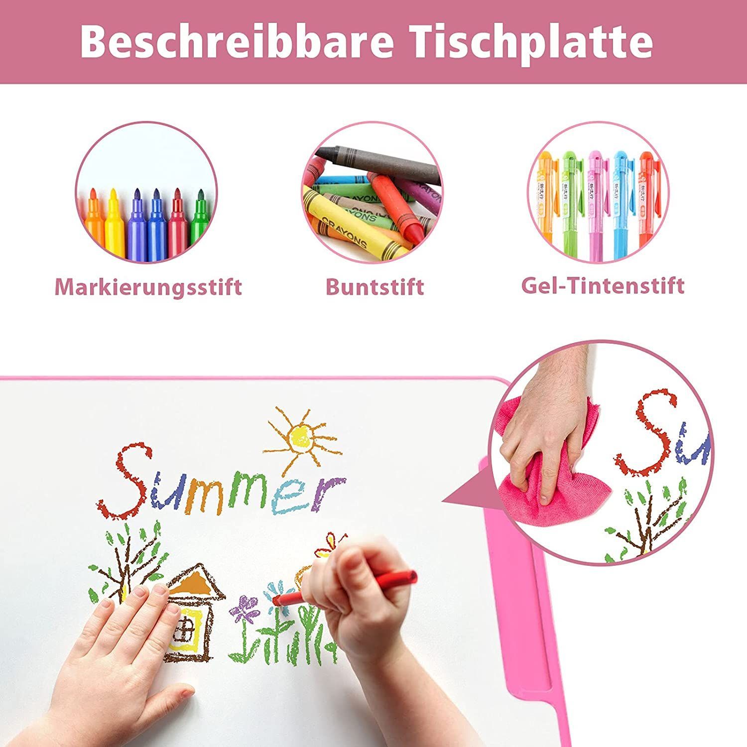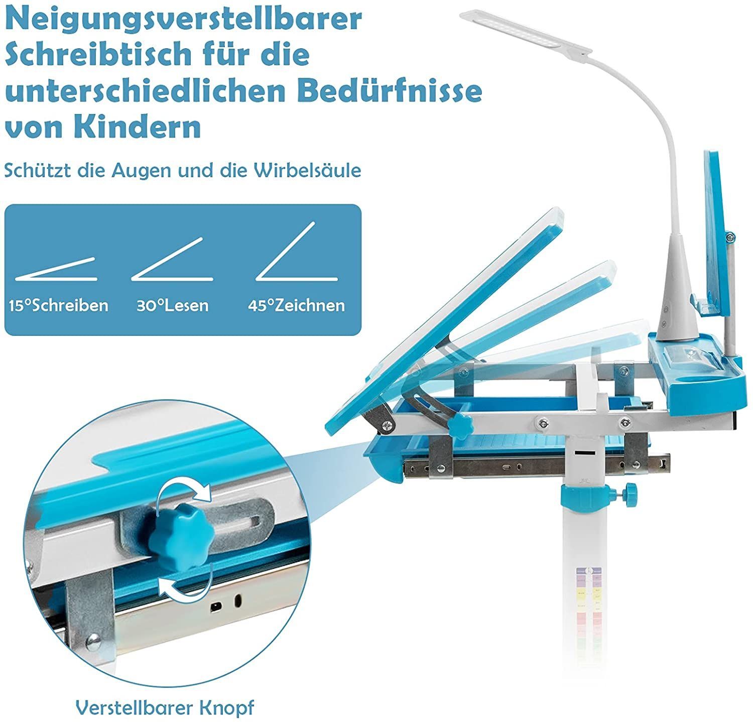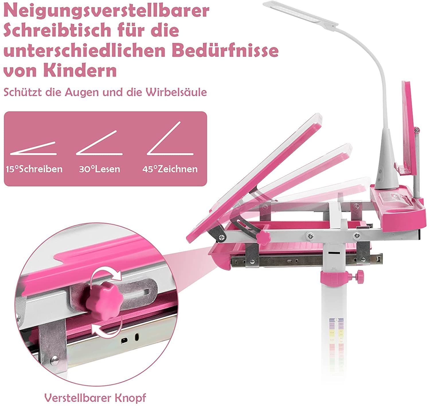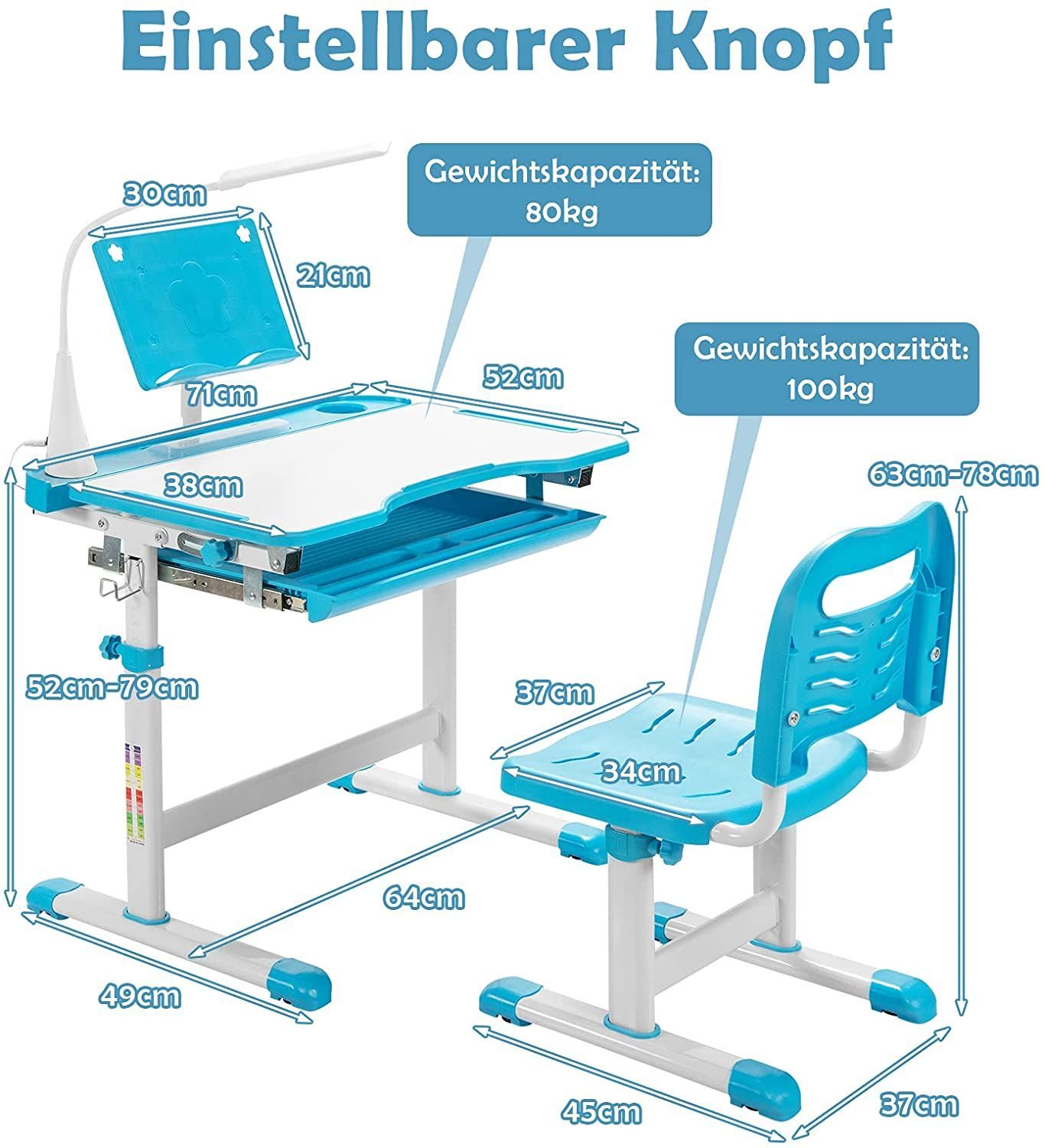 Kinderschreibtisch mit Bücherständer & LED, höhenverstellbarer Kindertisch&Stuhl