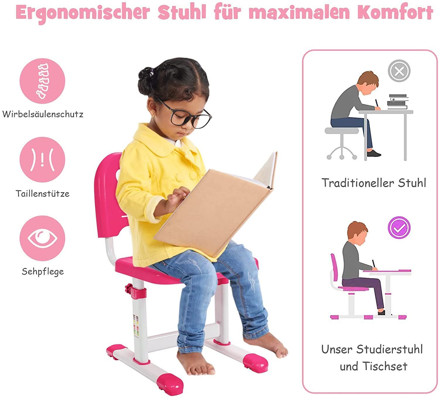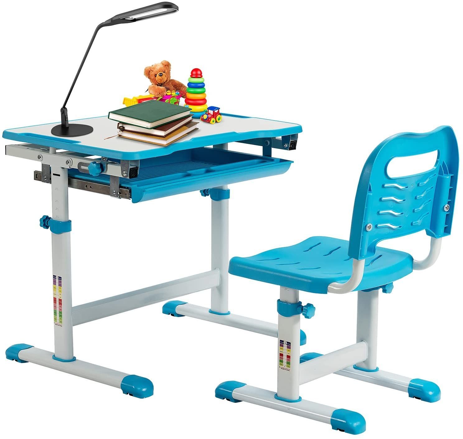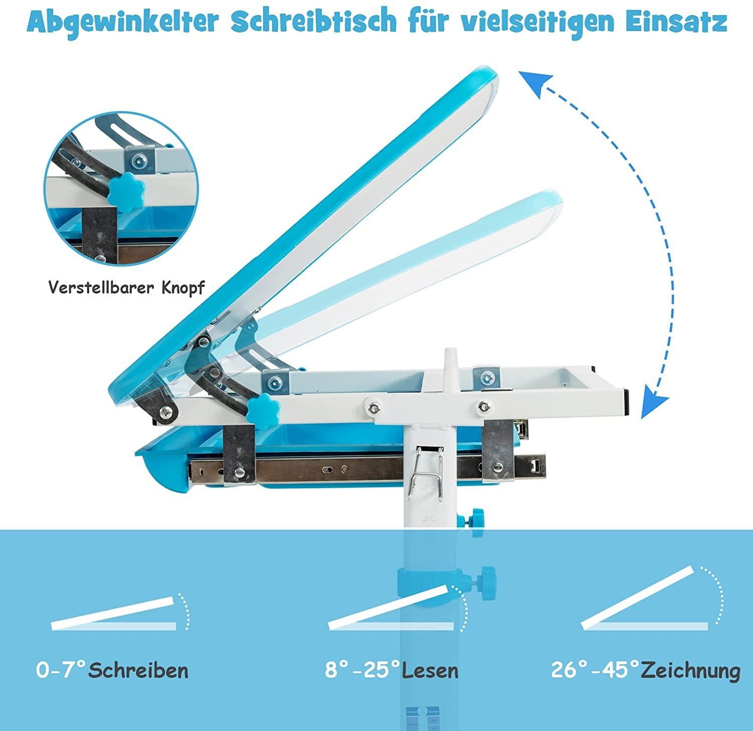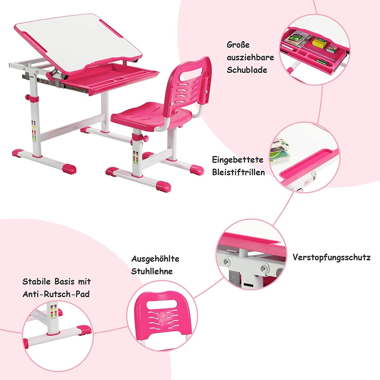 Kinderschreibtisch Set höhenverstellbar, Kindertisch & Stuhl neigbar beschreibbar