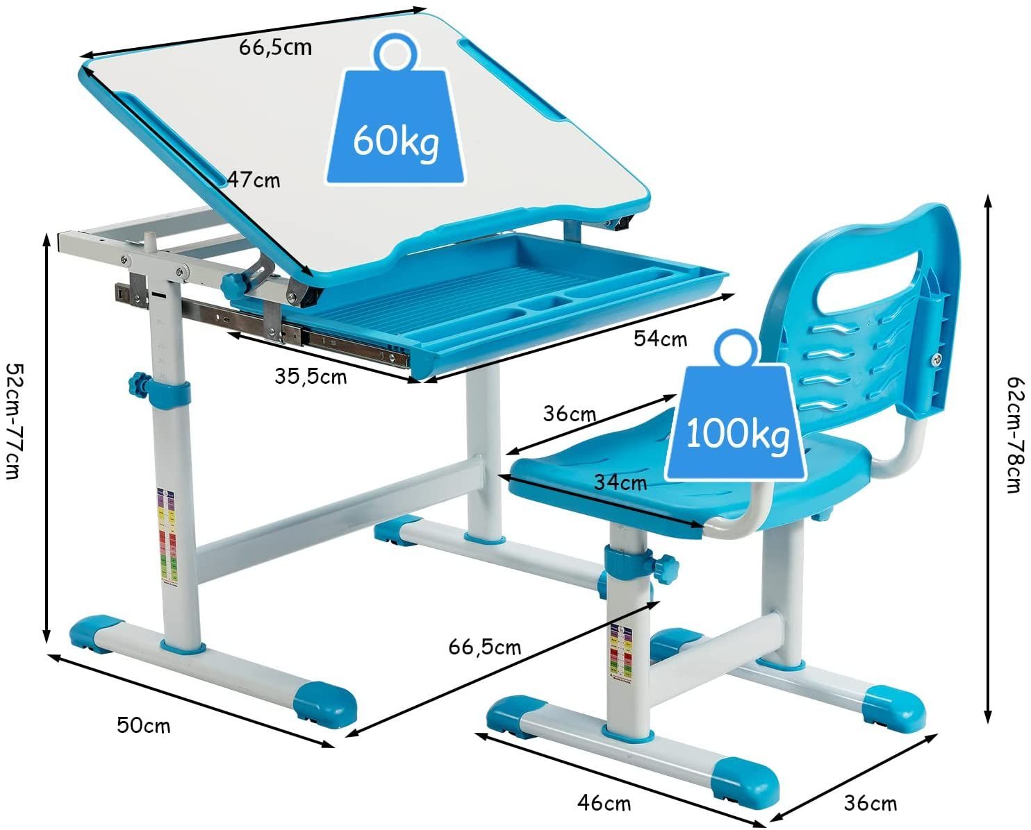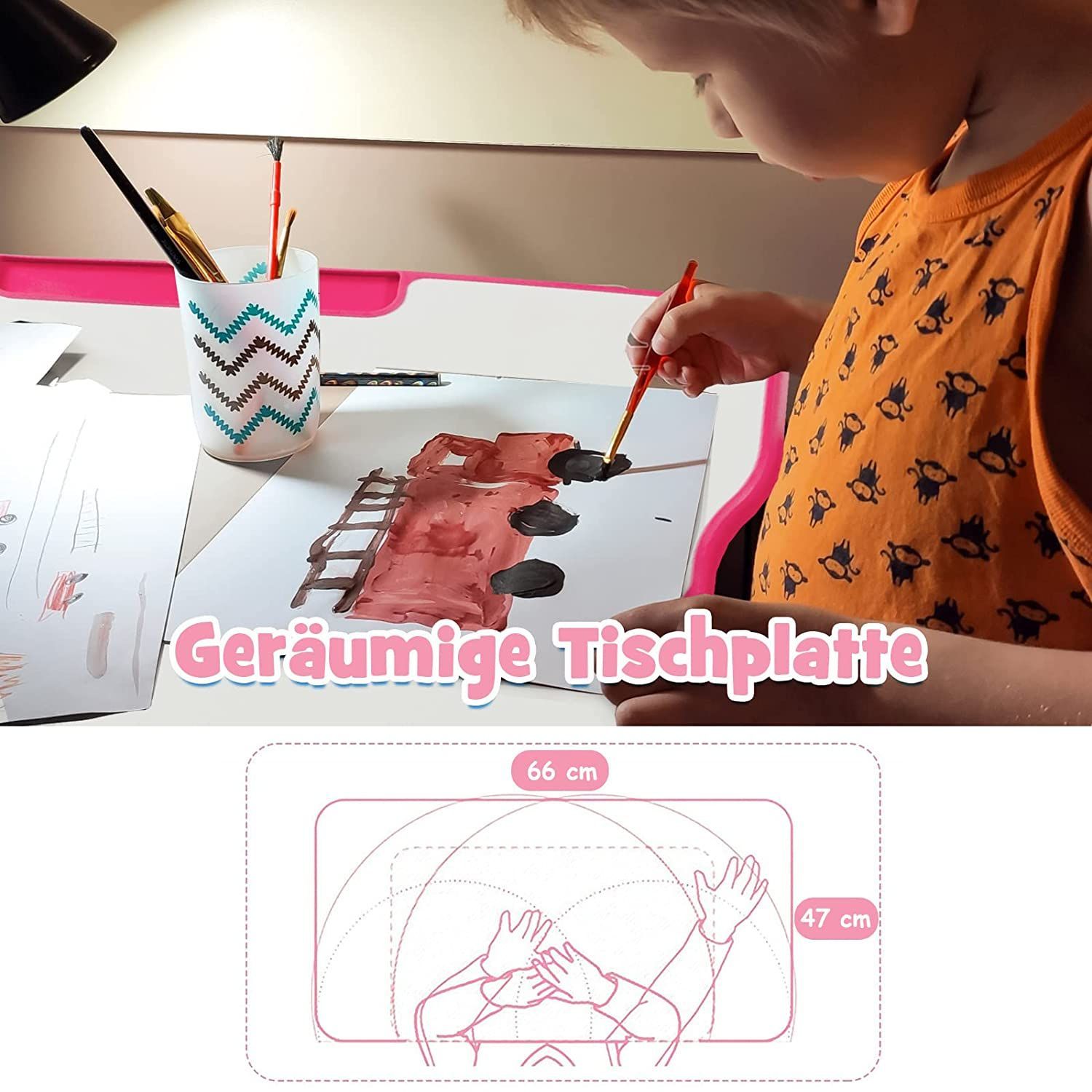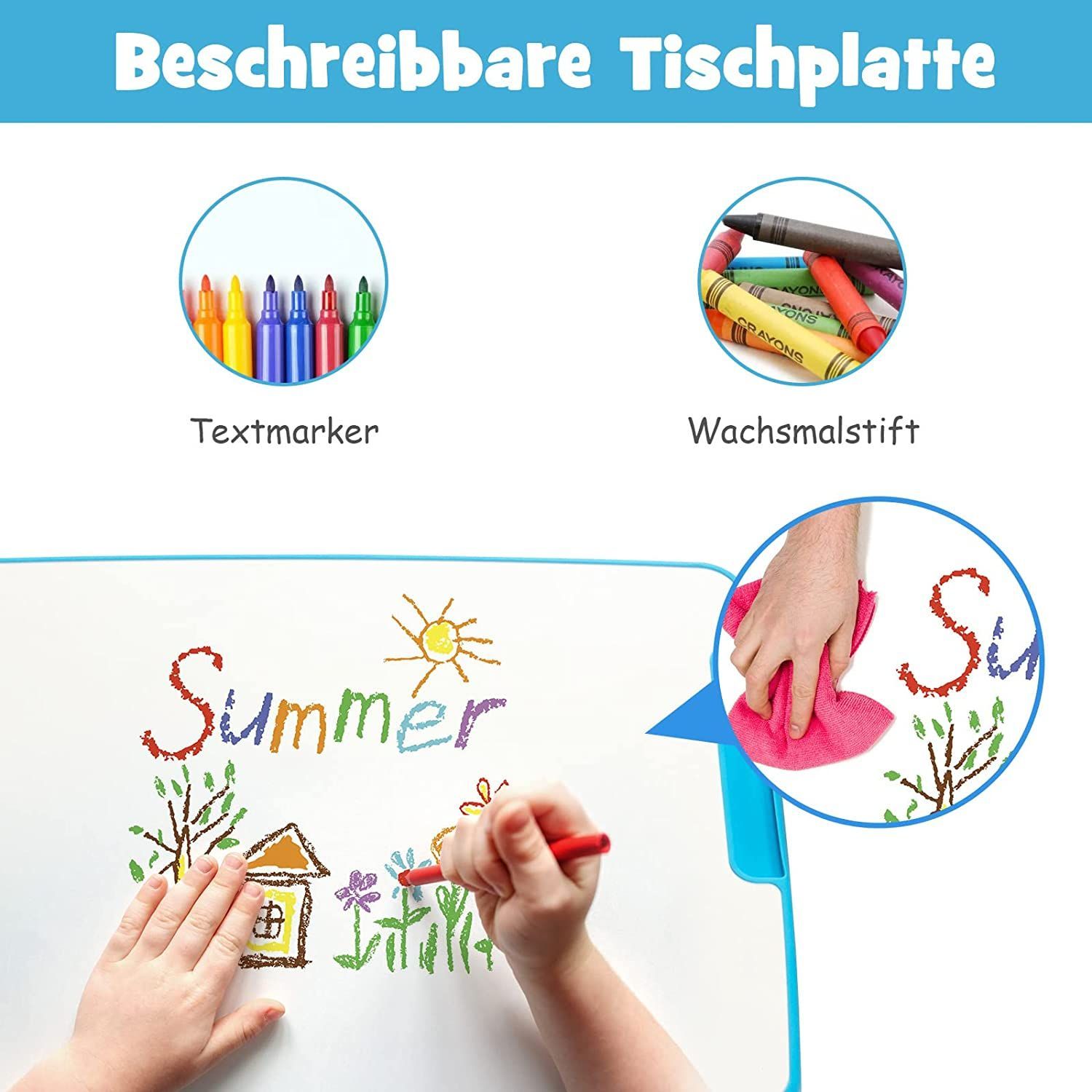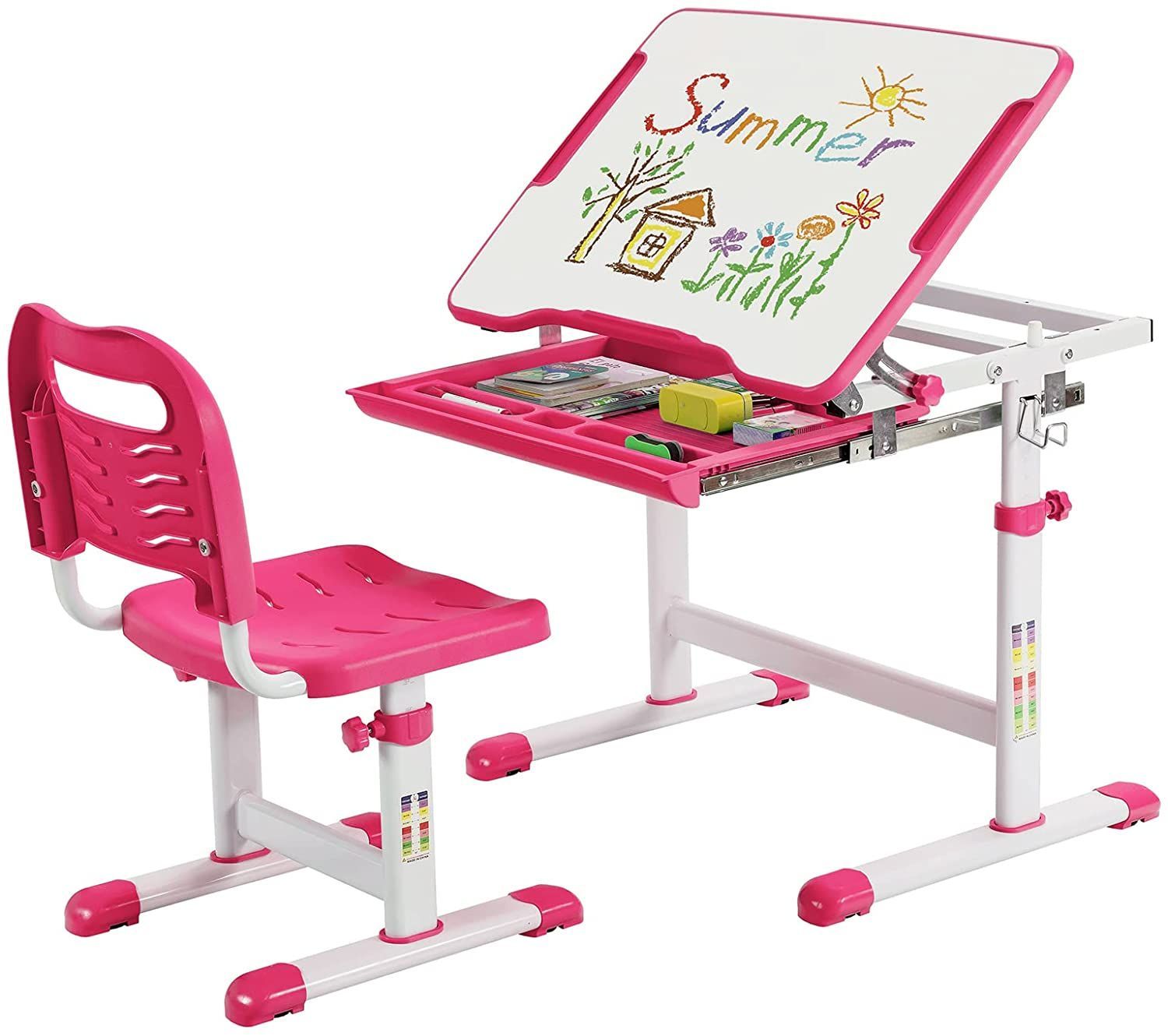 Kinderschreibtisch Set höhenverstellbar, Kindertisch & Stuhl neigbar beschreibbar
