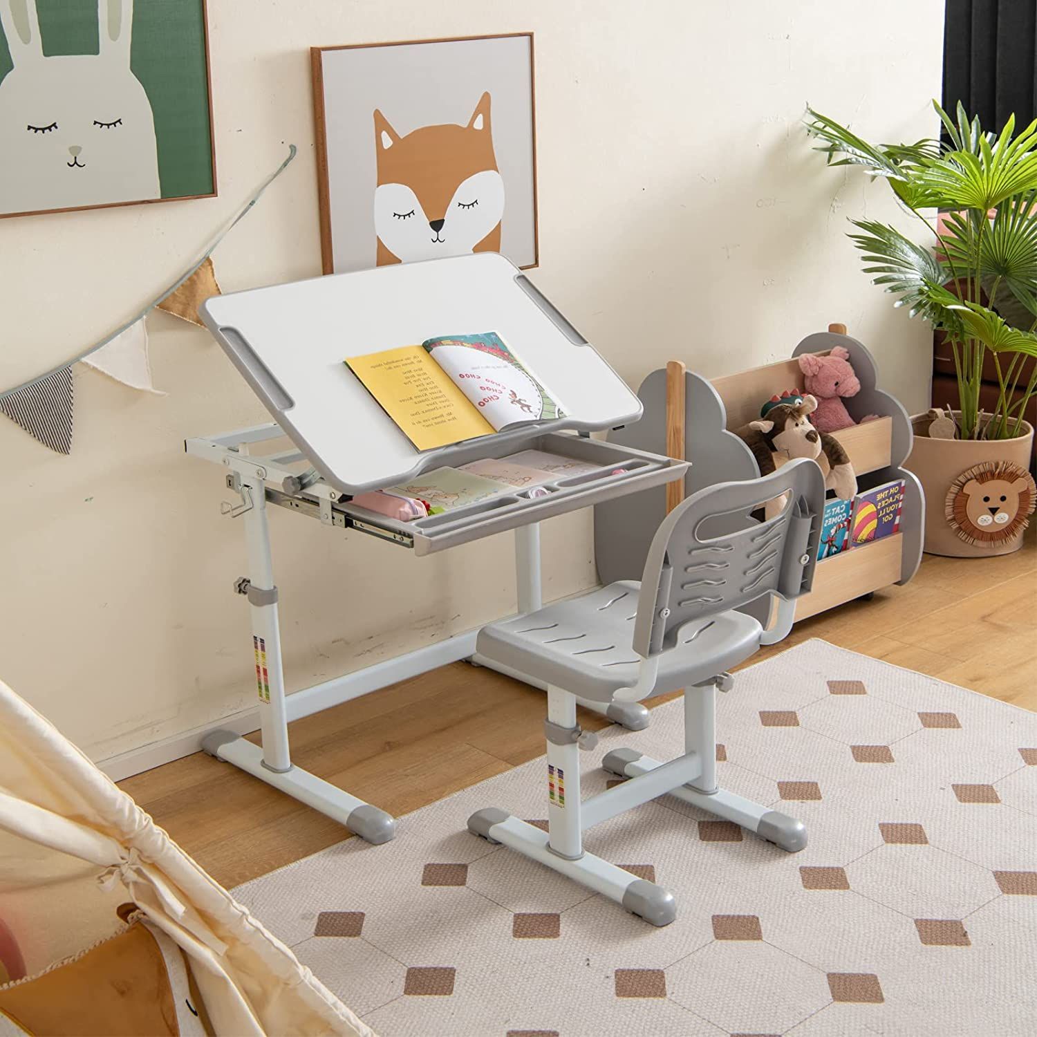 Kinderschreibtisch Set höhenverstellbar, multifunktionaler Kindertisch und Stuhl