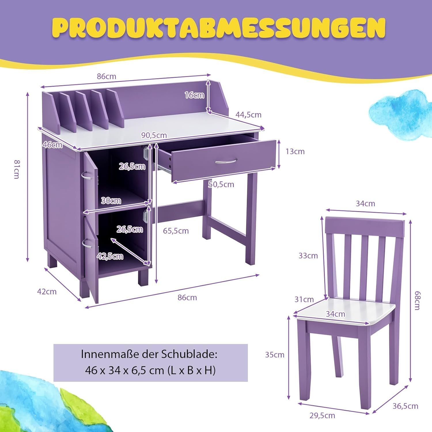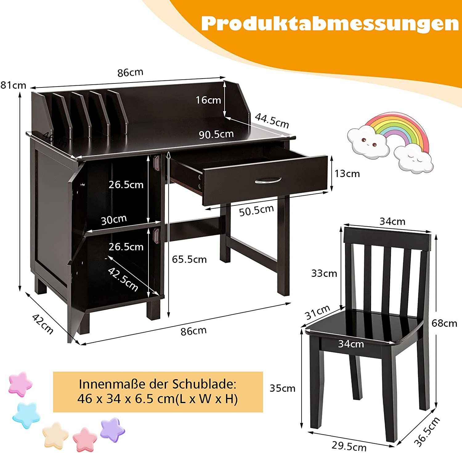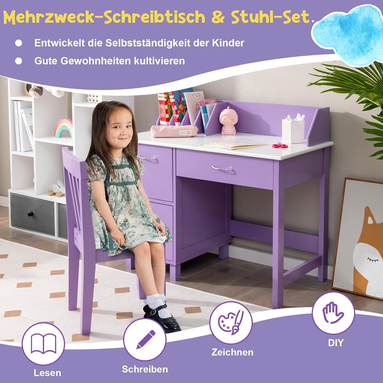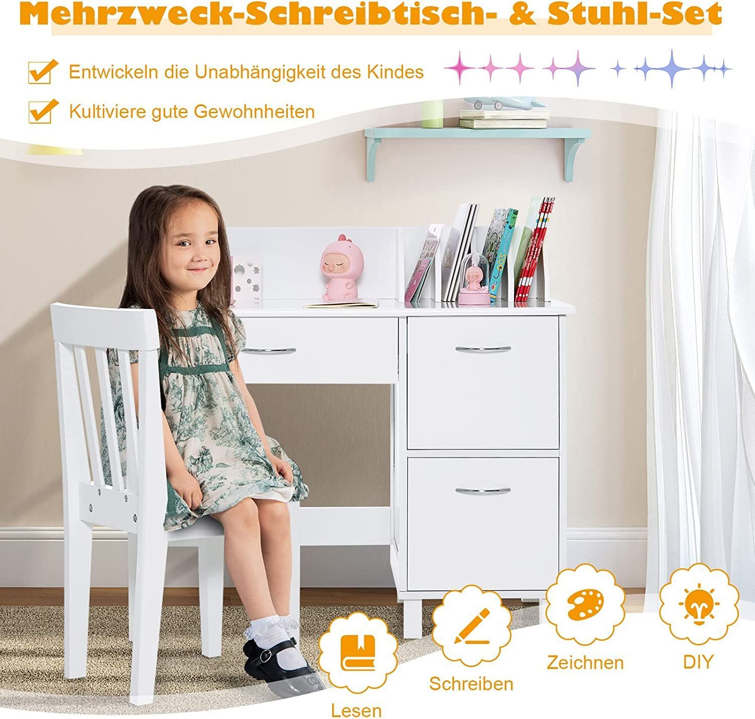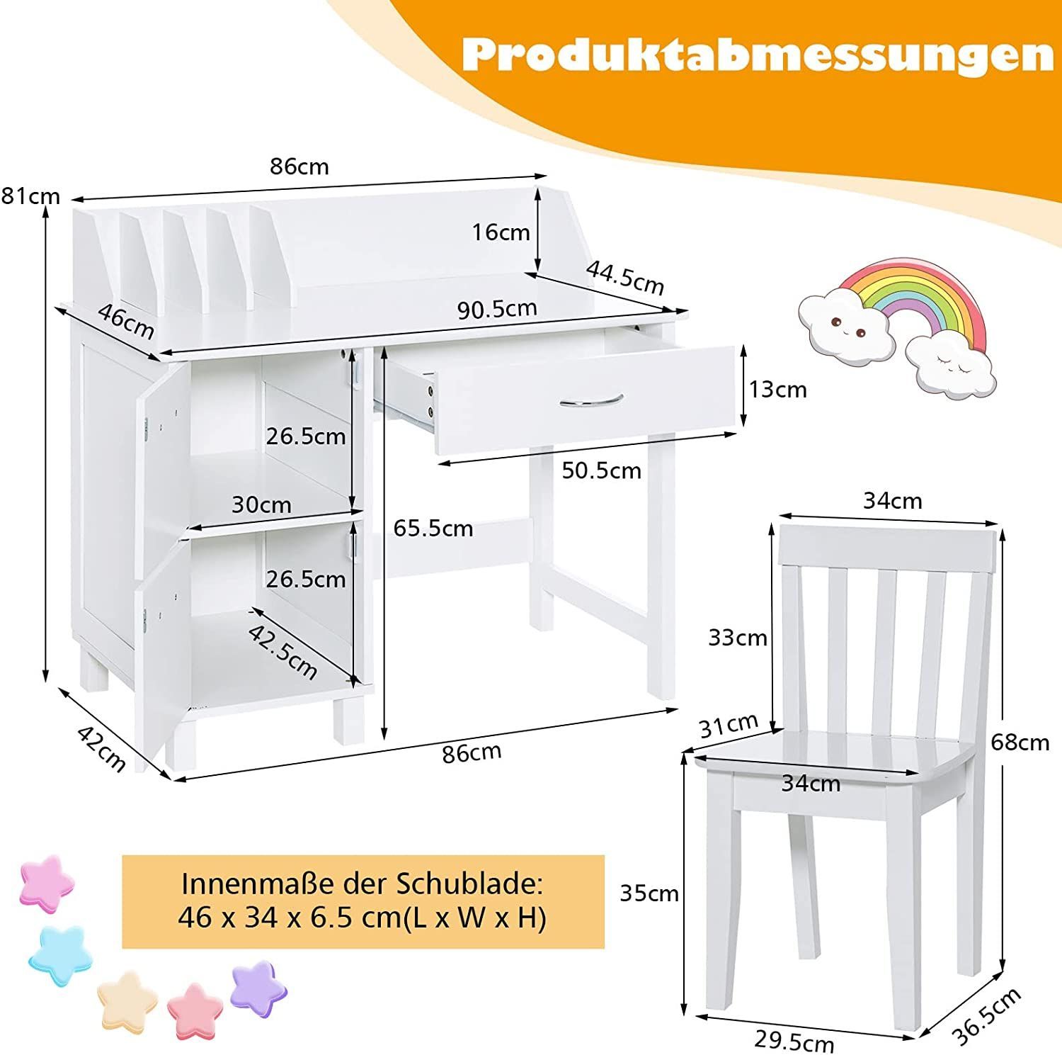 Kinderschreibtisch - und Stuhl-Set mit Schublade und Aufbewahrungsschränken