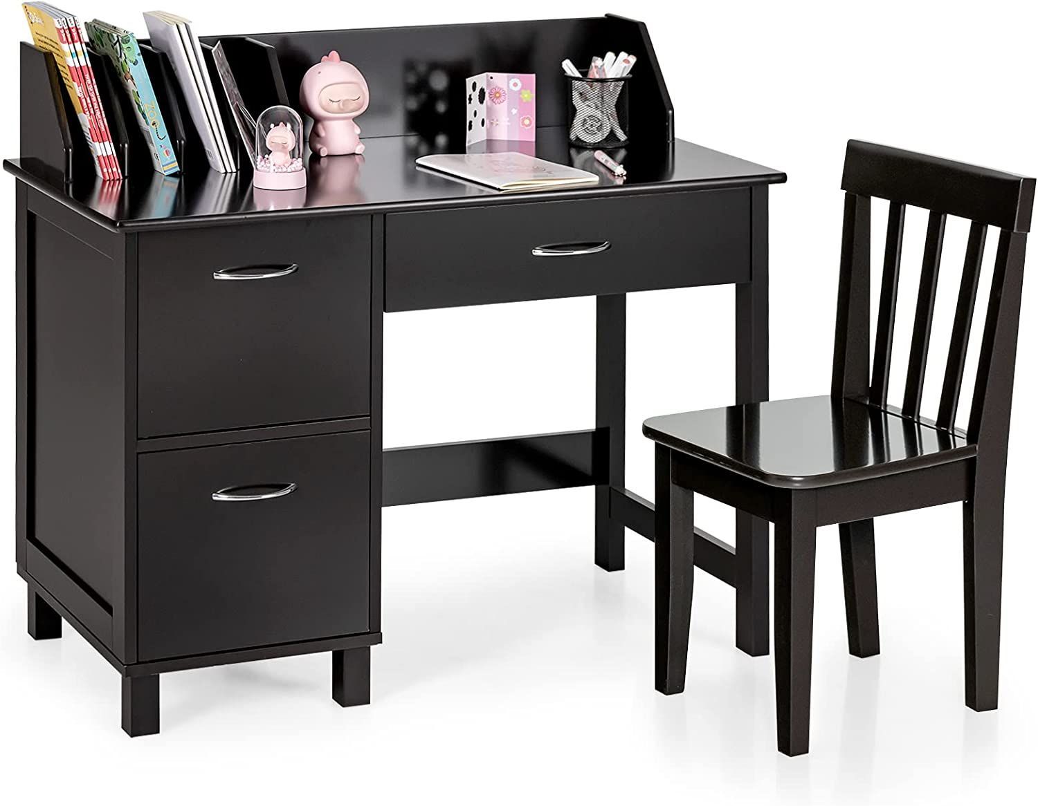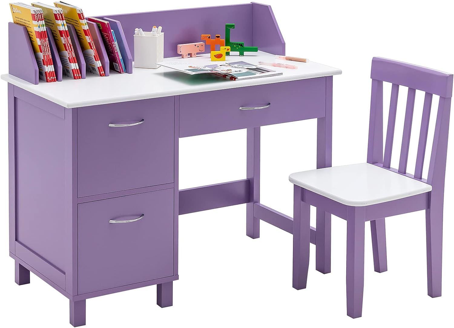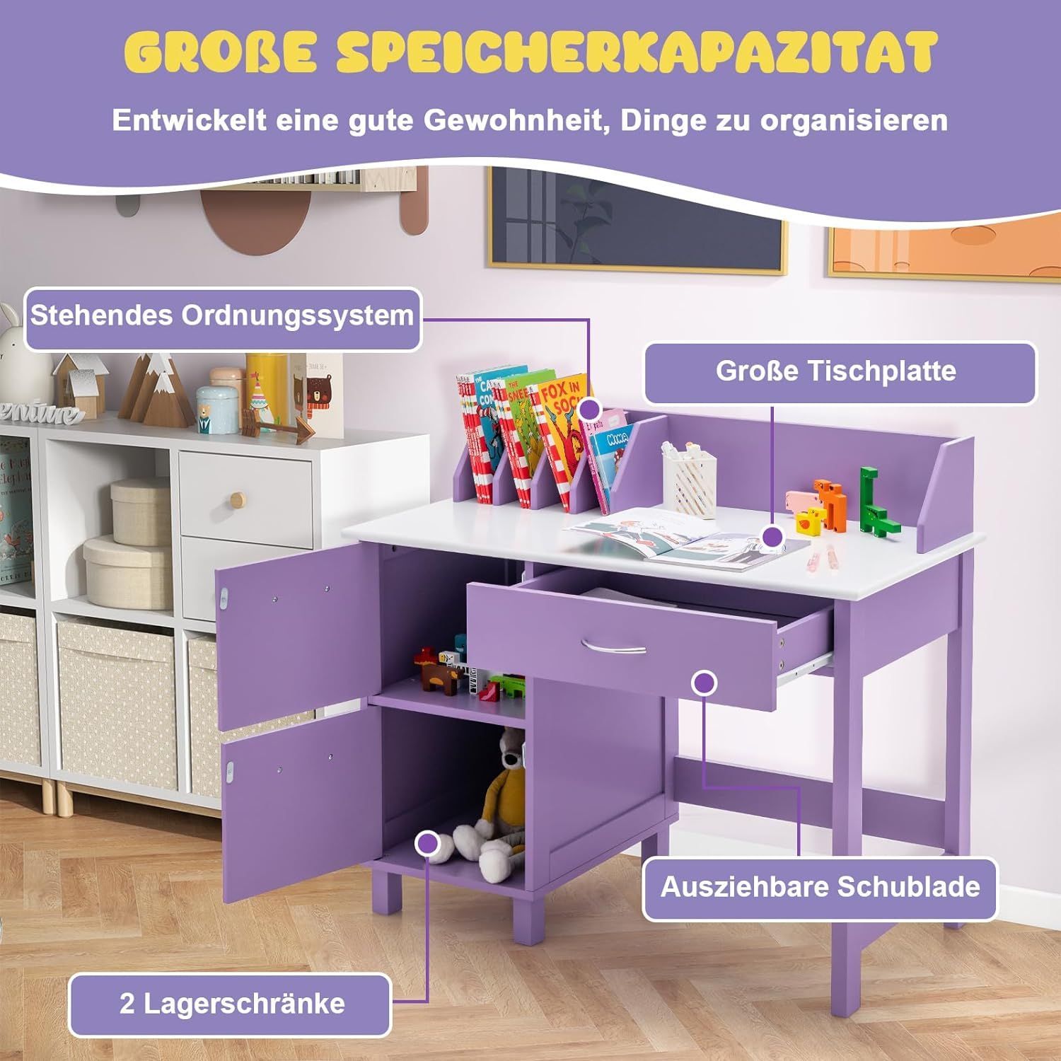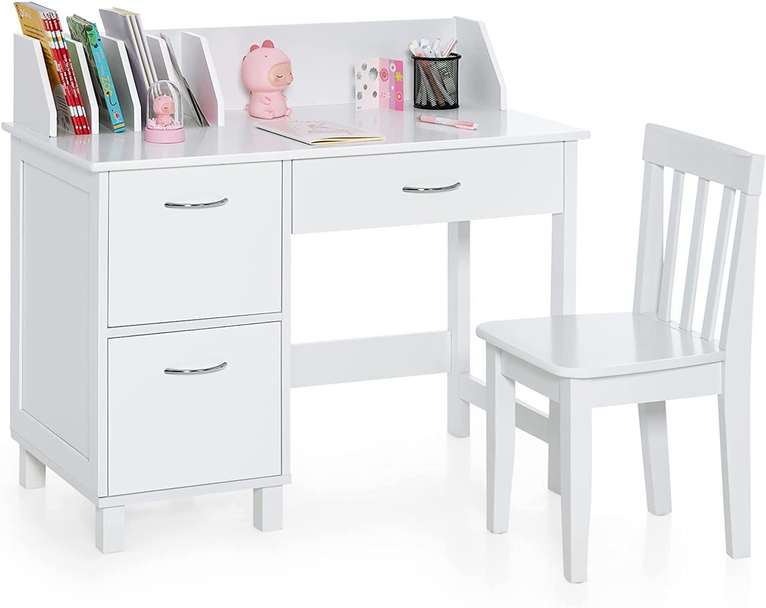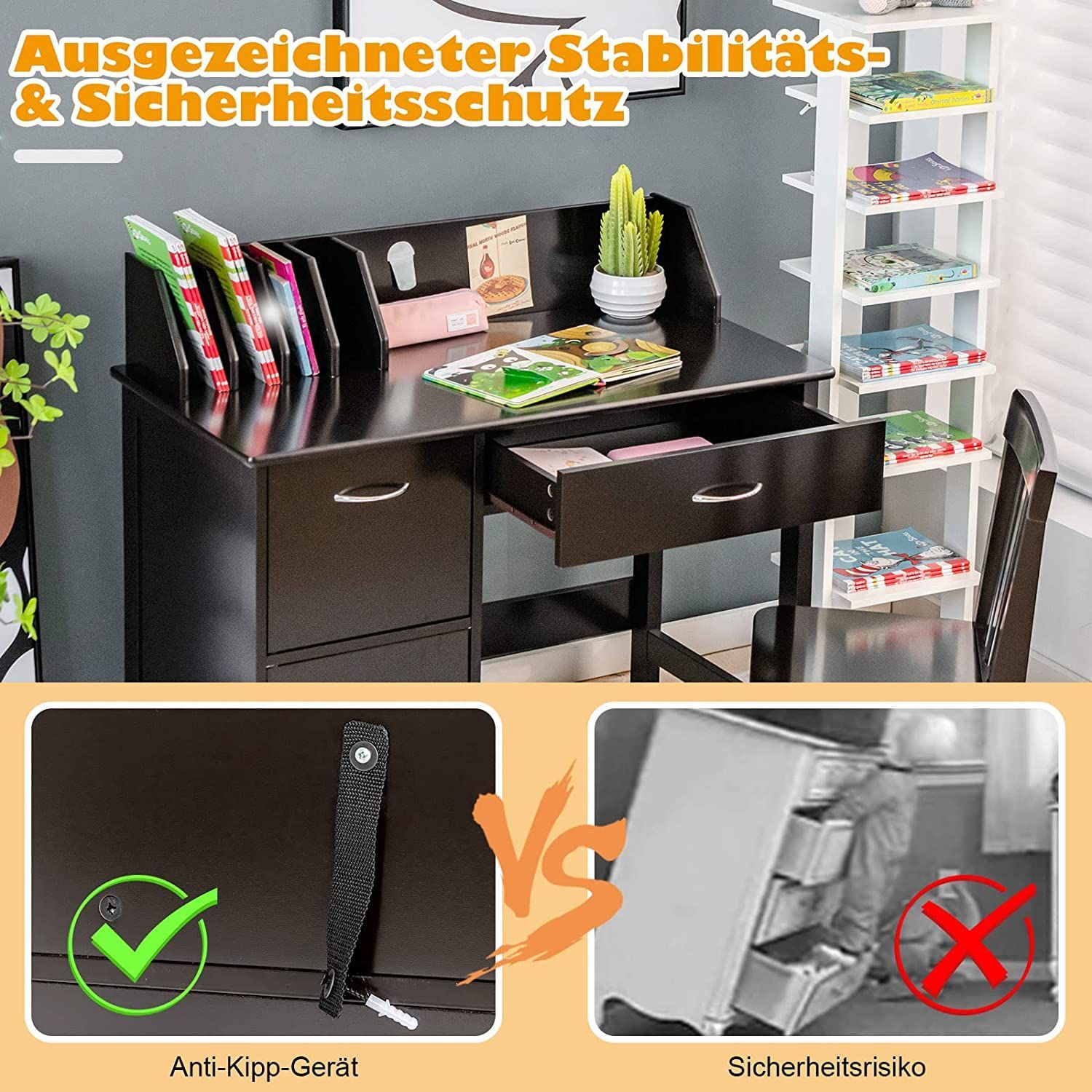 Kinderschreibtisch - und Stuhl-Set mit Schublade und Aufbewahrungsschränken