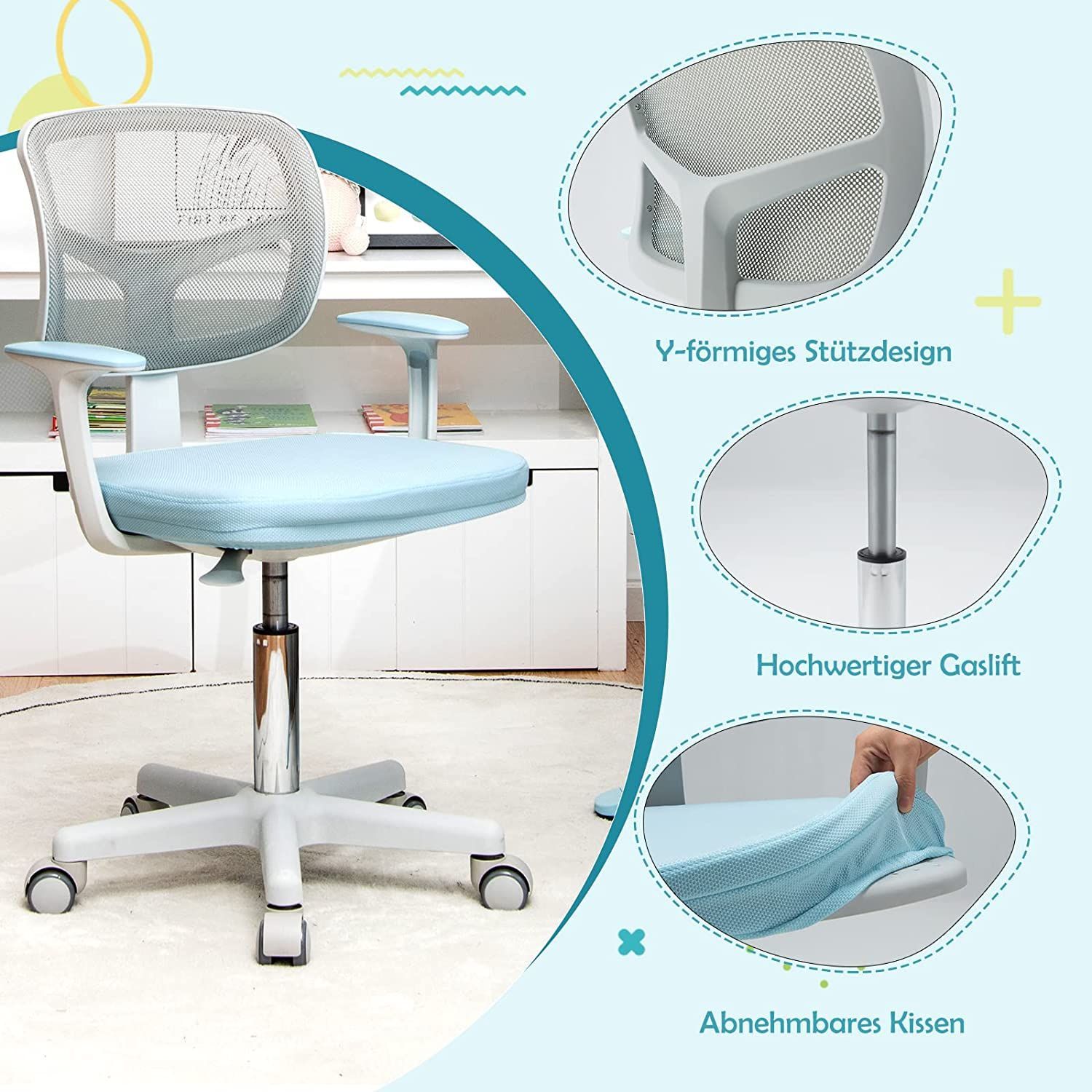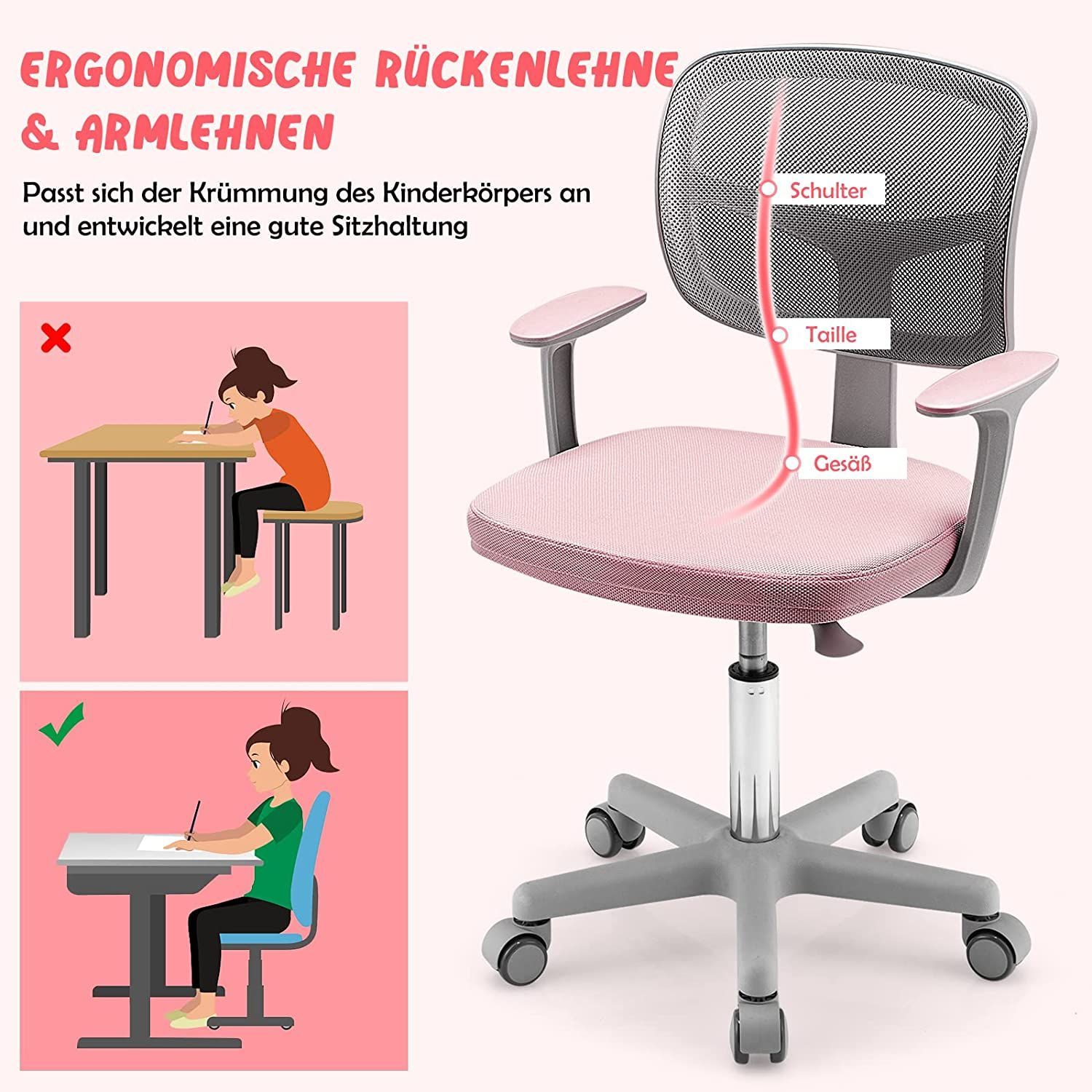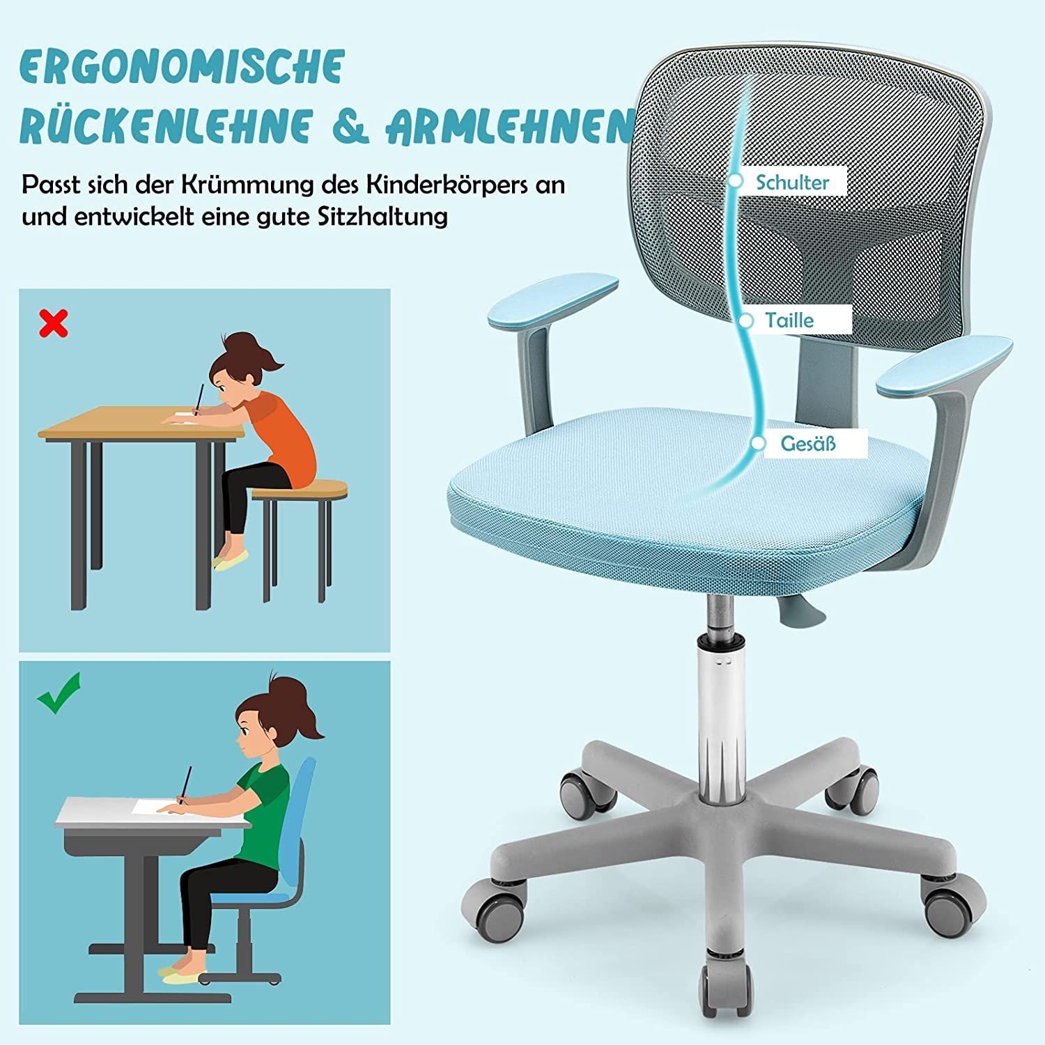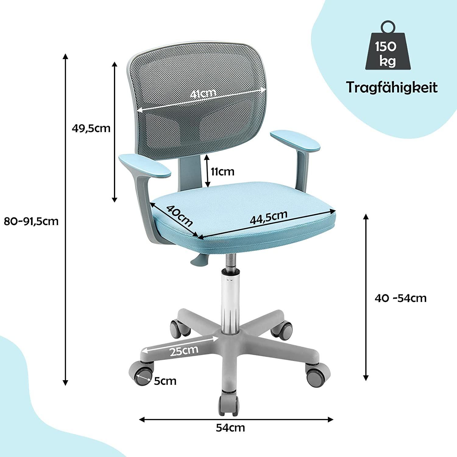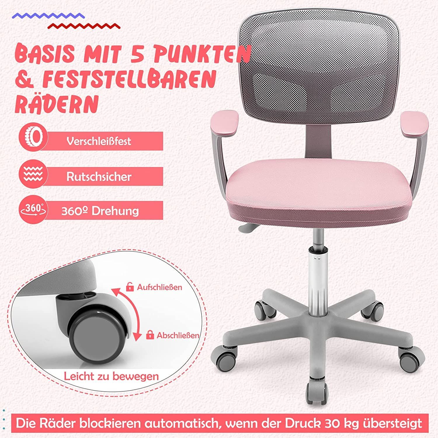 Kinderschreibtischstuhl 360° drehbar, Jugendstuhl 80-91,5cm höhenverstellbar, Kinder