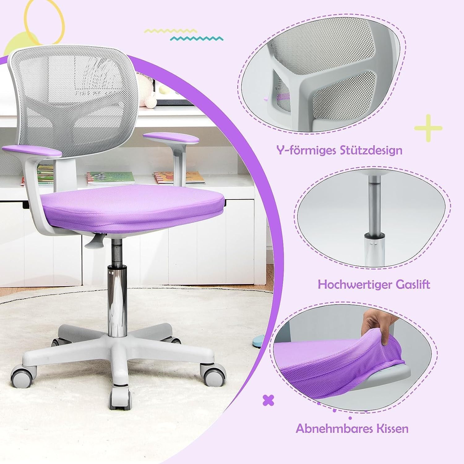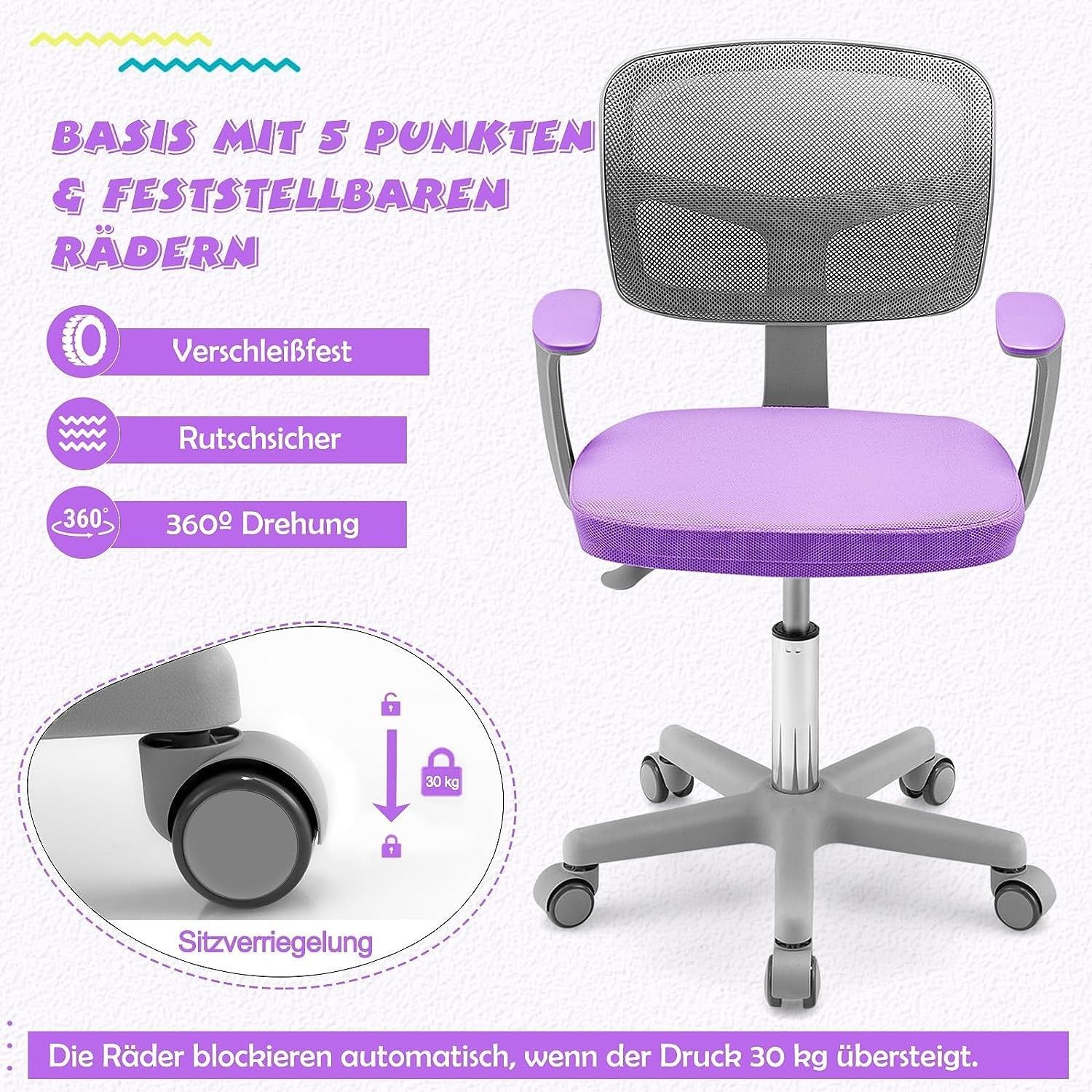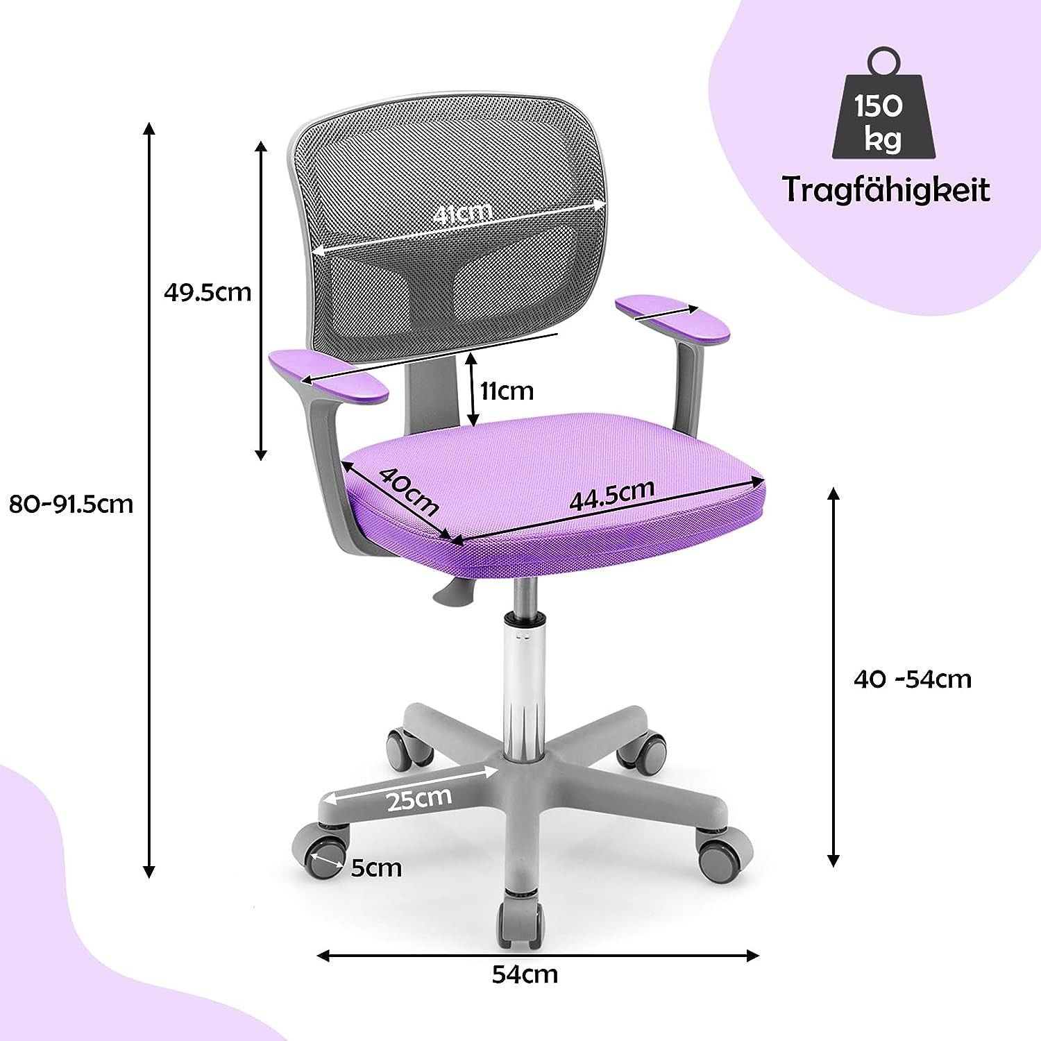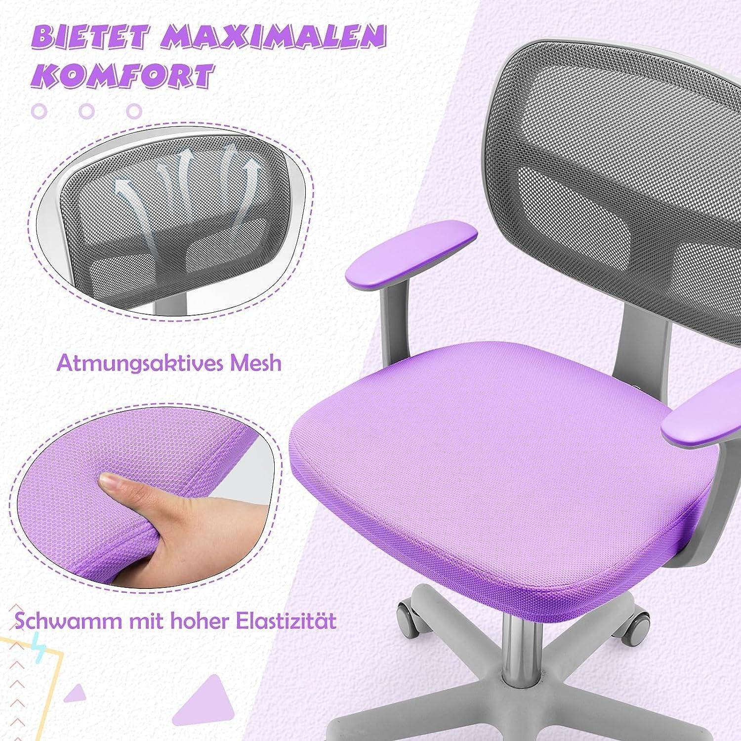 Kinderschreibtischstuhl 360° drehbar, Jugendstuhl 80-91,5cm höhenverstellbar, Violett