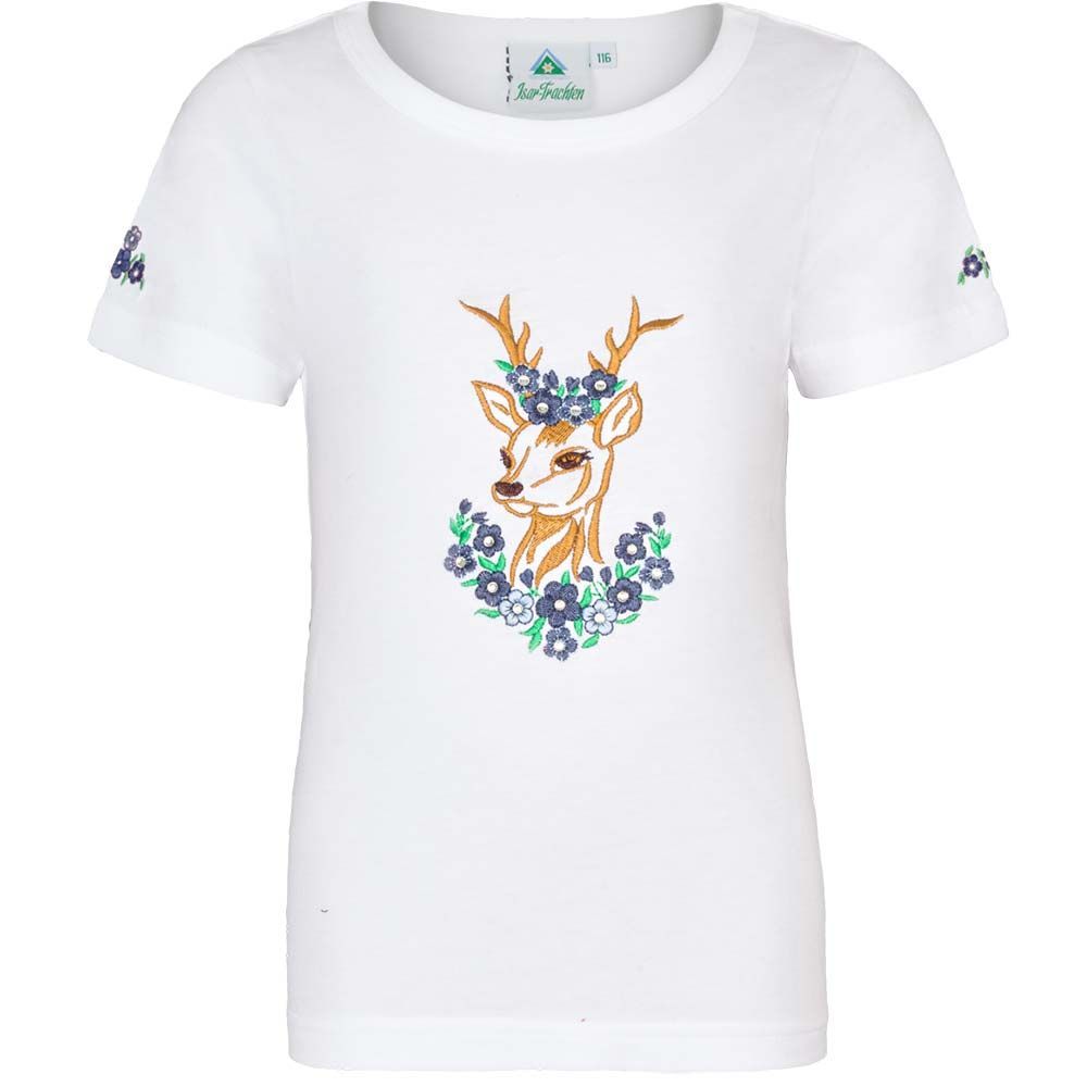 Süßes Kinder T-Shirt Reh weiß blau Das Shirt ist weiß und hat ein süßes Reh als Motiv. Das Kindershirt stammt von dem bekannten Trachten-Hersteller Isar Trachten. • Isar Trachten Art. 52766 • Material: 100% Baumwolle • Wäsche: 30° Maschinenwäsche • Lieferumfang: Ein Tshirt. • Weiteres Zubehör ist nicht im Lieferumfang enthalten.