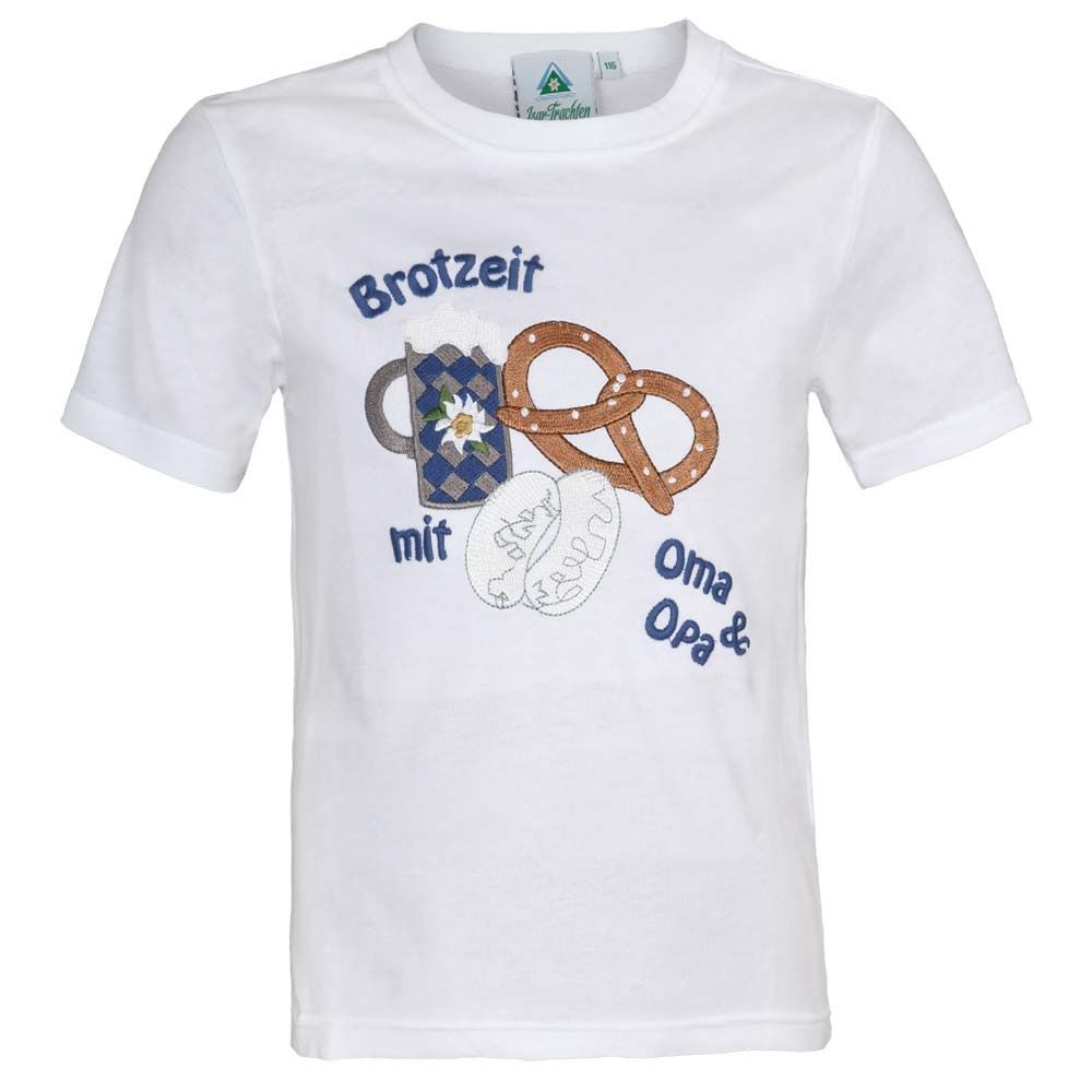 Kinder T-Shirt 52956 weiß Das T-Shirt ist mit der Aufschrift ,,Brotzeit mit Oma & Opa'' bestickt. • Material:100 % Baumwolle • Isar Trachten Art. 52956 • Lieferumfang: Ein Shirt. • Weiteres Zubehör ist nicht im Lieferumfang enthalten.