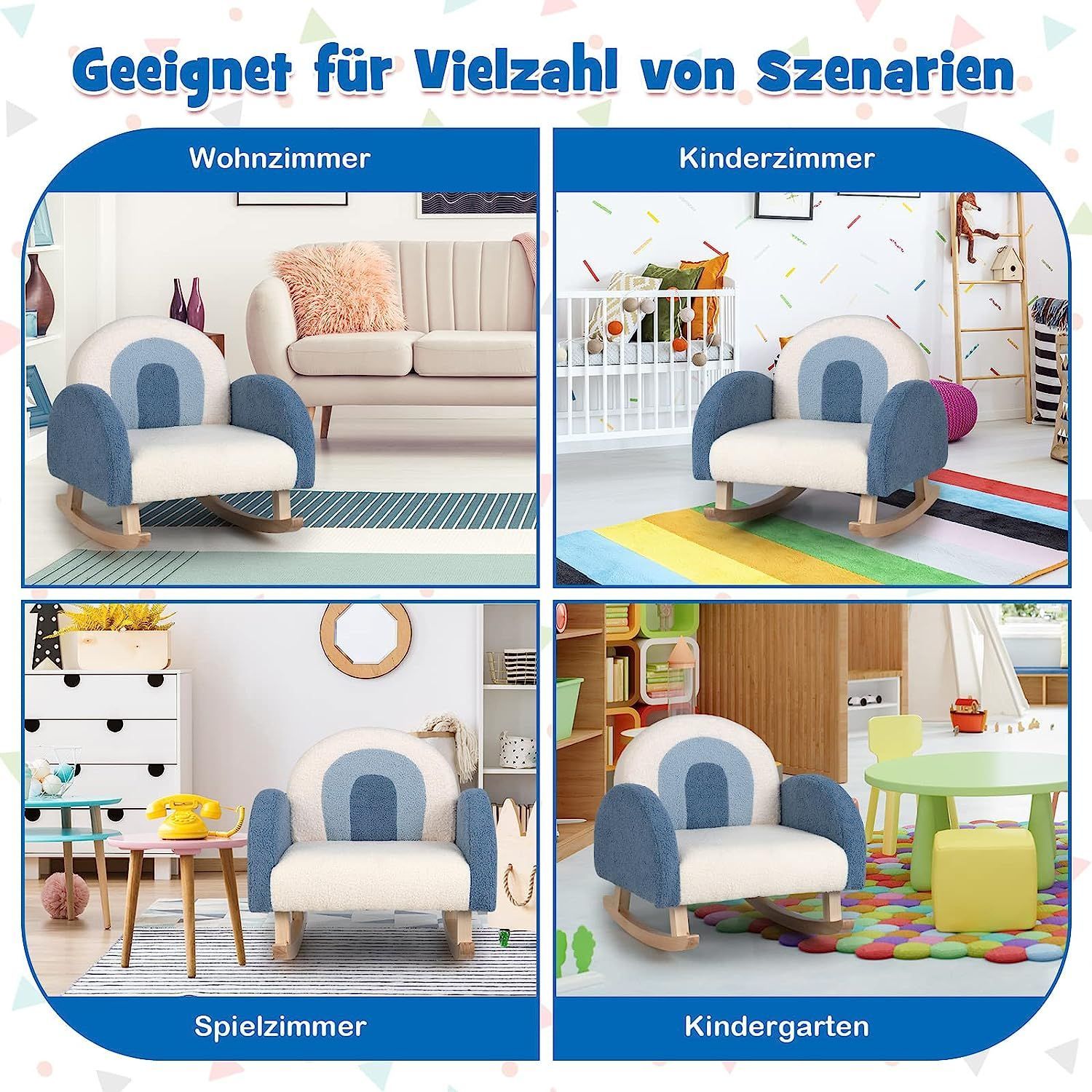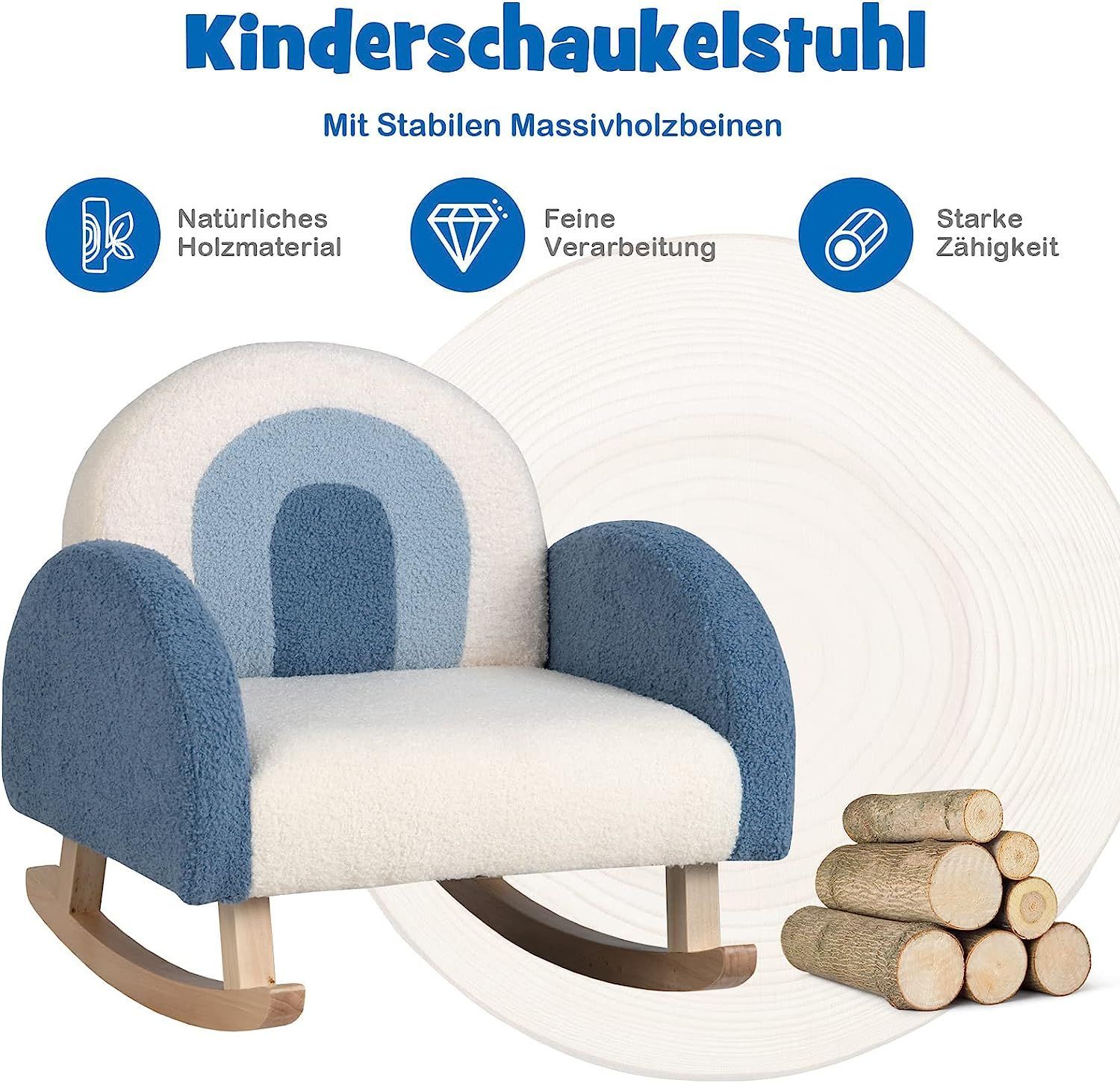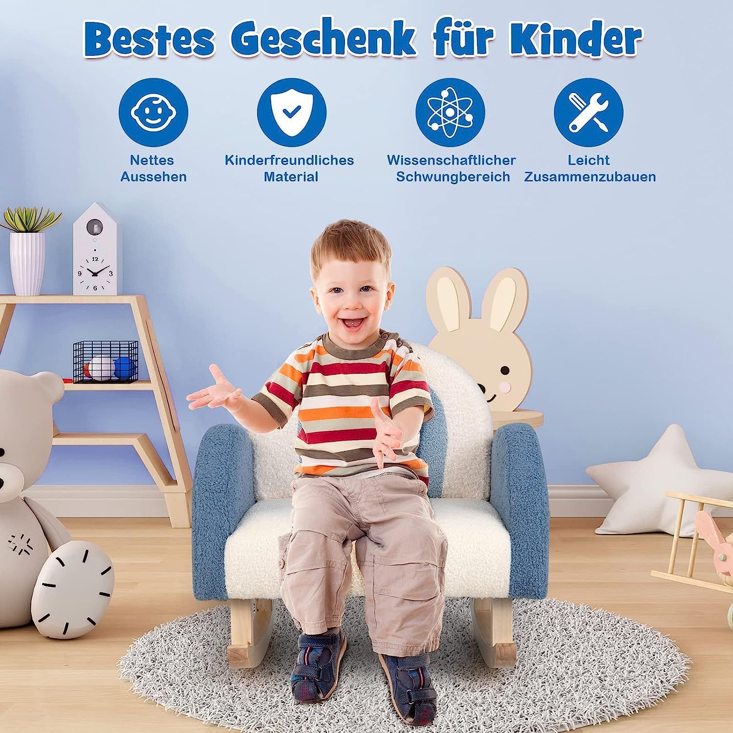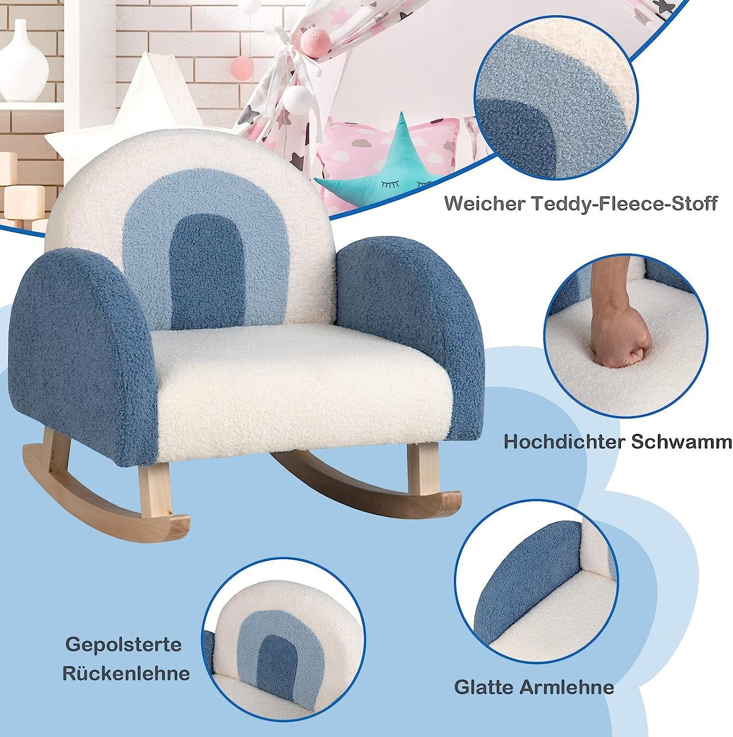 Kindersofa Kinder Schaukelstuhl, Kindersessel Teddy Samtmaterial & Massivholzbeinen