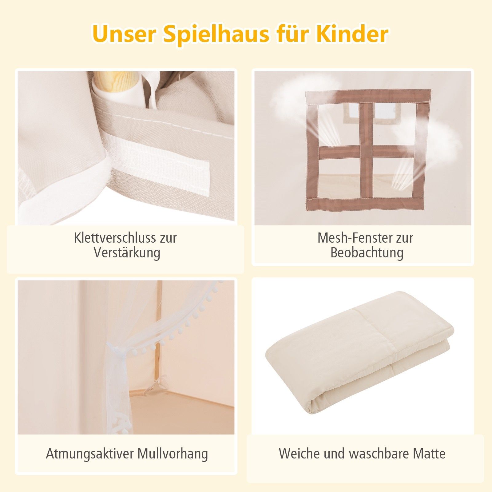 Kinderspielburg, 120 x 105 x 140cm Kinderspielhaus Kinderzelt, Kinderspielzelt