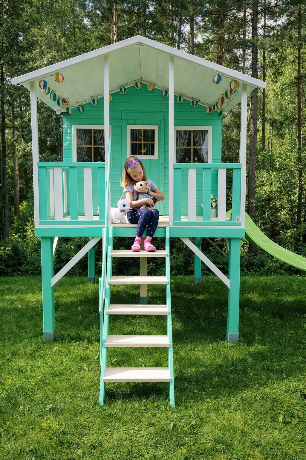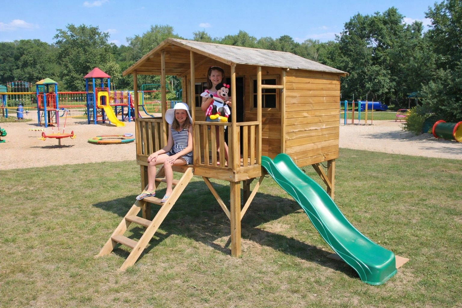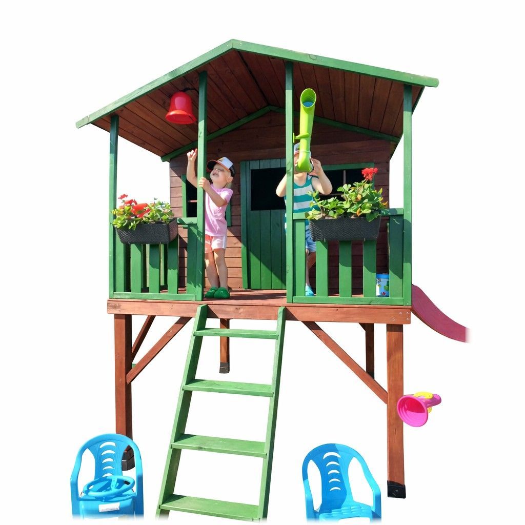 • Holzgartenhaus 2 Rutschen Kinderspielhaus Spielhütte #4447