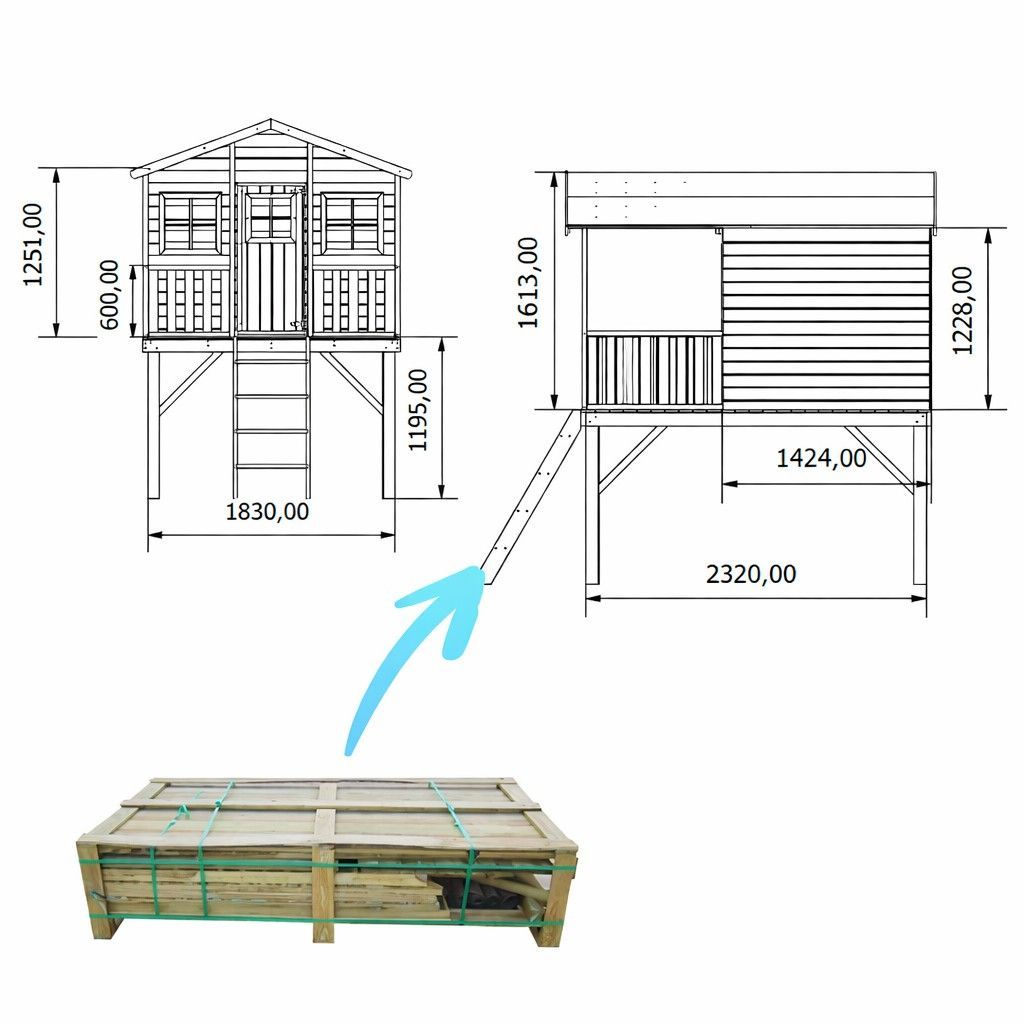 Zweistöckiges Kinderspielhaus Spielhaus 2,48×1,61x2,40 Spielhütt #3995