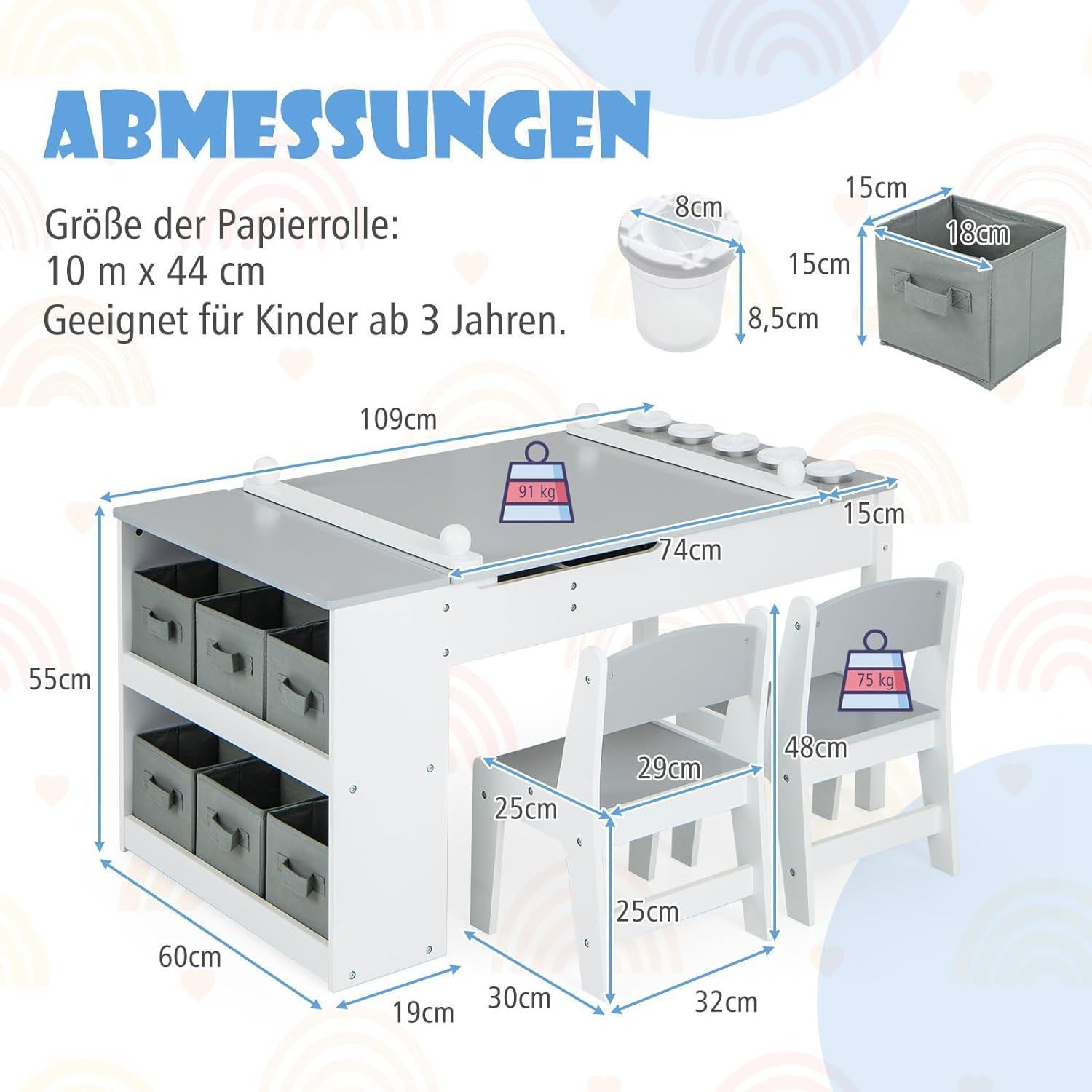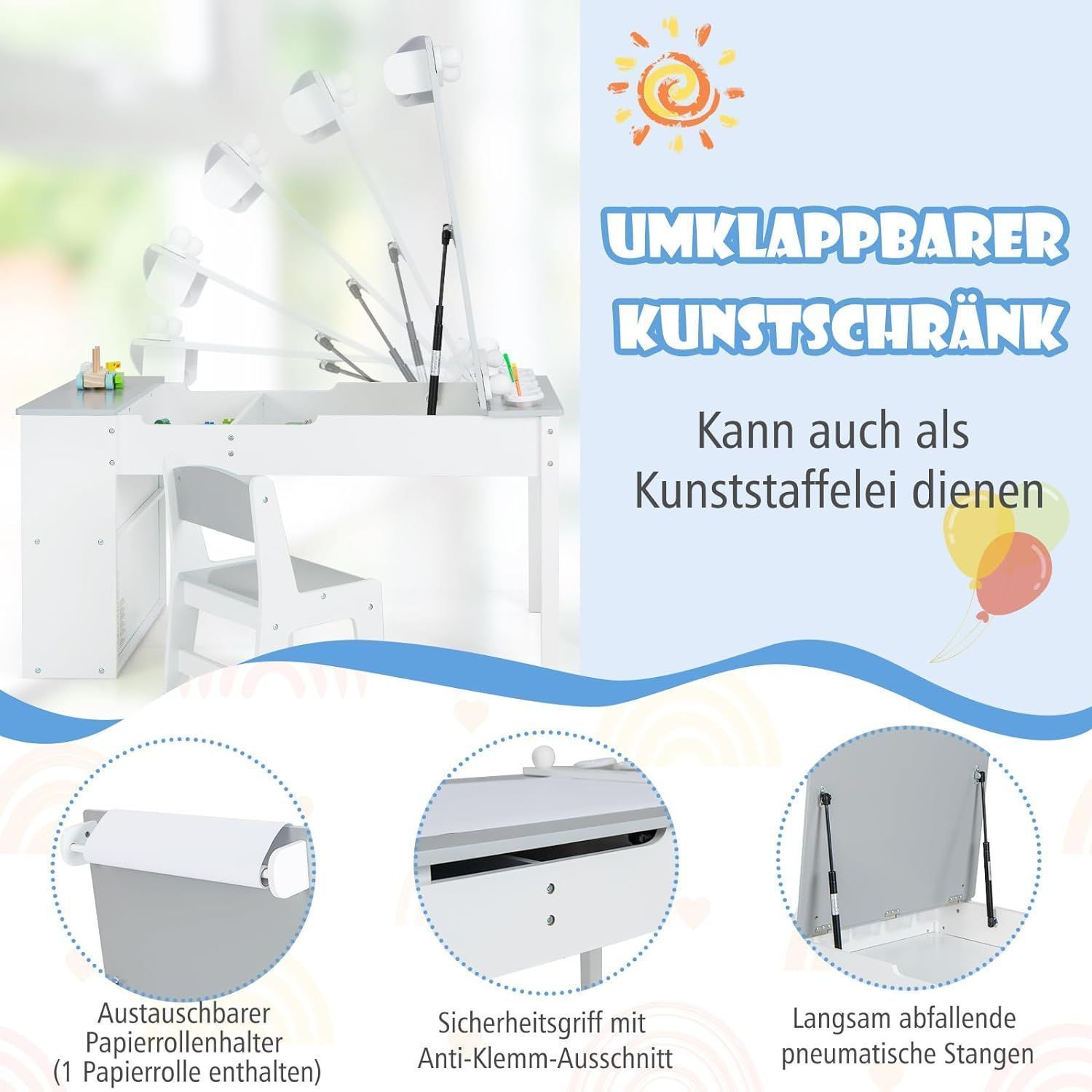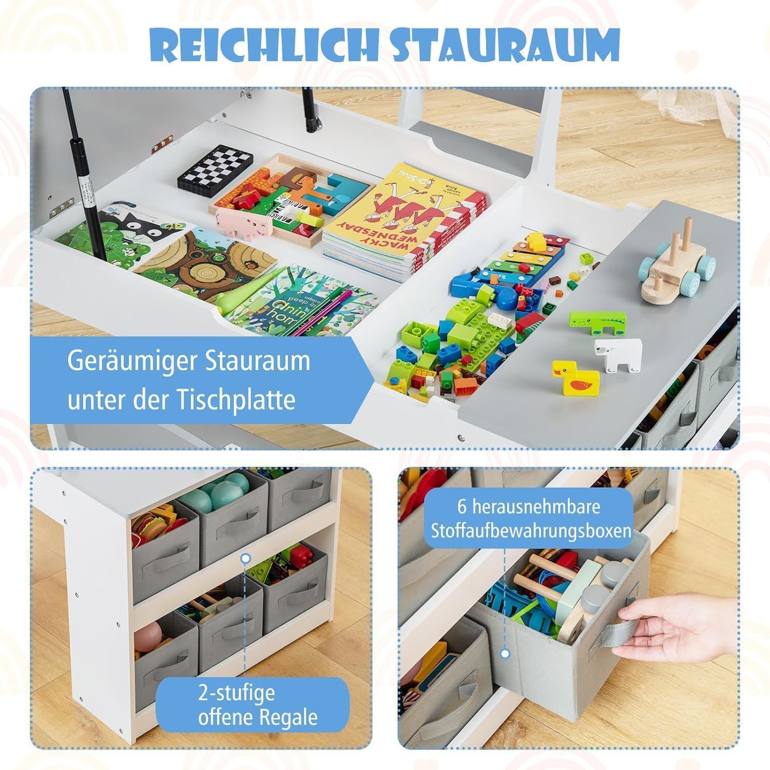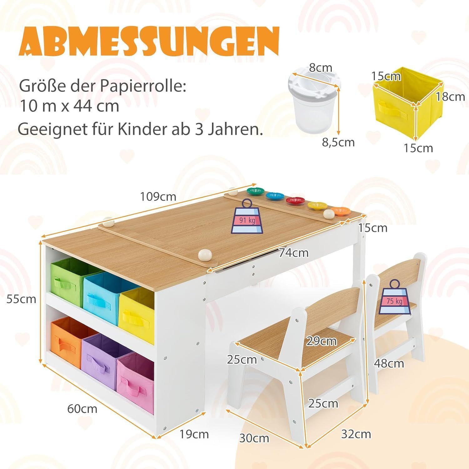 Kindertisch mit 2 Stühlen, 3 in 1 Aktivitätstisch & Staffelei aus Holz, sitzgruppe