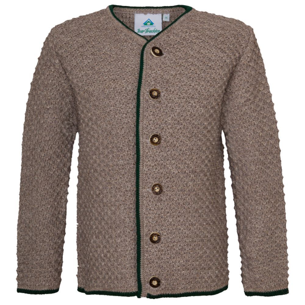 Trachtenjacke für Kinder in berber Diese tolle Kinderstrickjacke von Isar-Trachten rundet das Kindetrachten-Outfit an kühleren Tagen perfekt ab. Ob zu Volksfesten oder anderen feierlichen Anlässen, wie Hochzeiten, Kommunion oder Konfirmation. Mit dieser schönen Strickjacke in der klassischen Farbe berber, sind die Kleinen festlich gekleidet. Das schöne traditionelle Strickmuster, dem farblich abgesetzten Abschlussrand in grün sowie die Knöpfe in Hirschhorn-Optik sind das optisch...