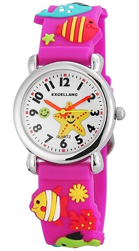 Kinderuhr Armbanduhr Meerestieredruck auf Silikonband lila Analog Quartzwerk