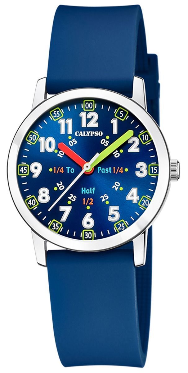 • Calypso Kinderuhr analog Quarz blaues Kunststoffband K5790/5 Edelstahl