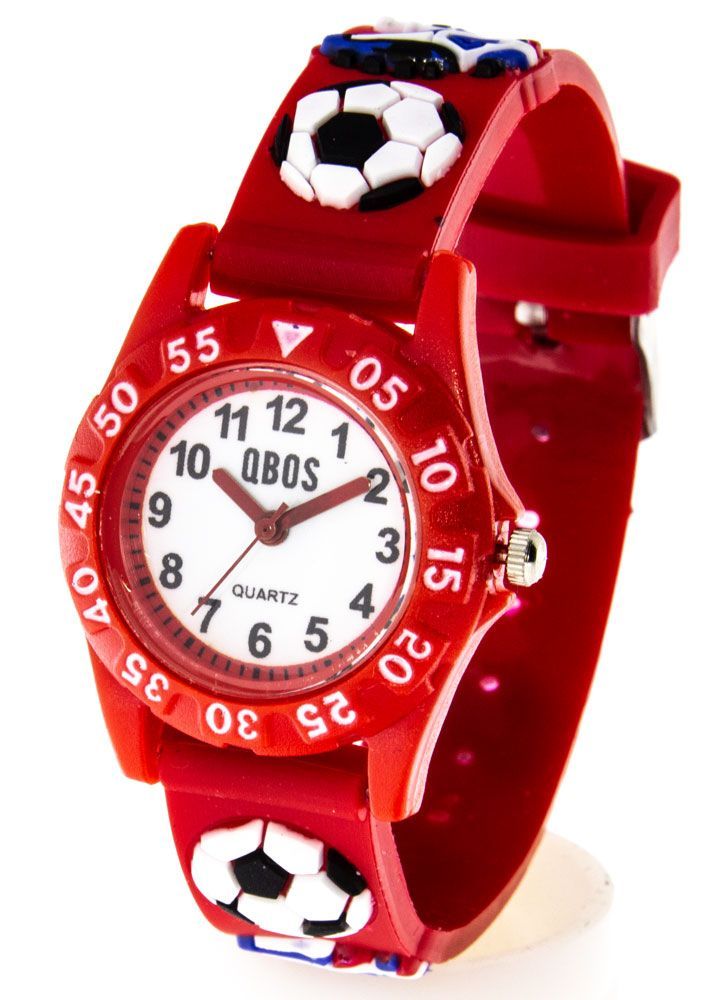 Kinderuhr Qbos Fußballmotiv rot