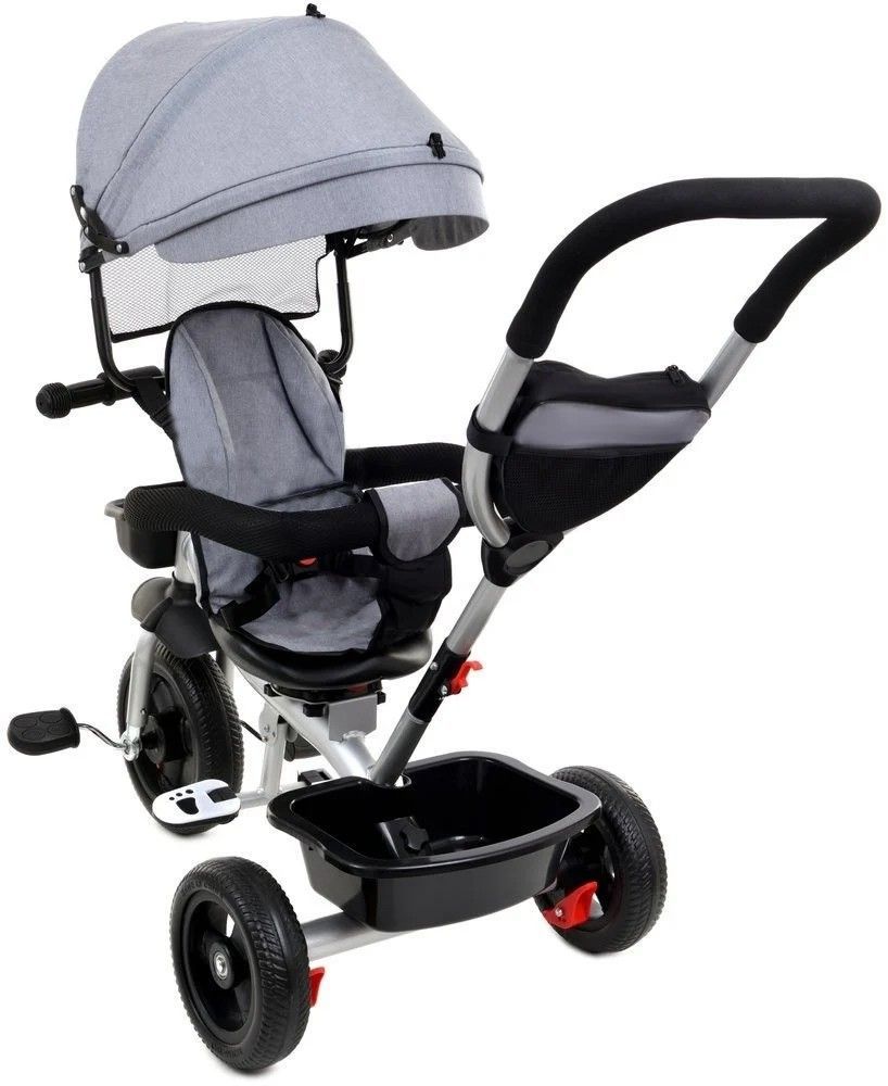 Kinderwagendreirad - Kinderfahrrad mit Sonnenblende - grau