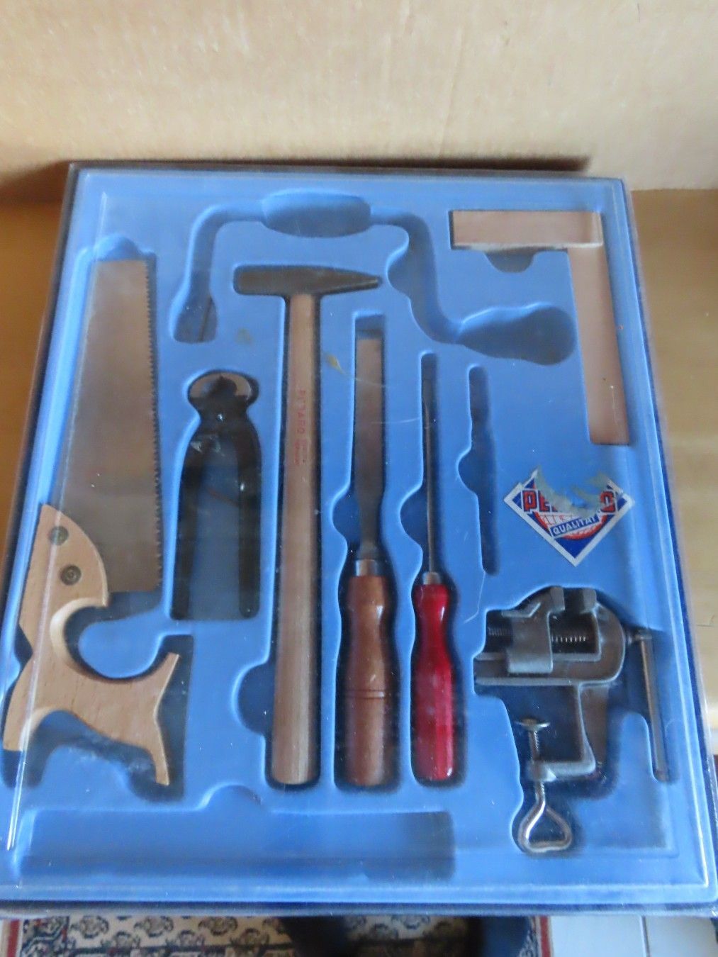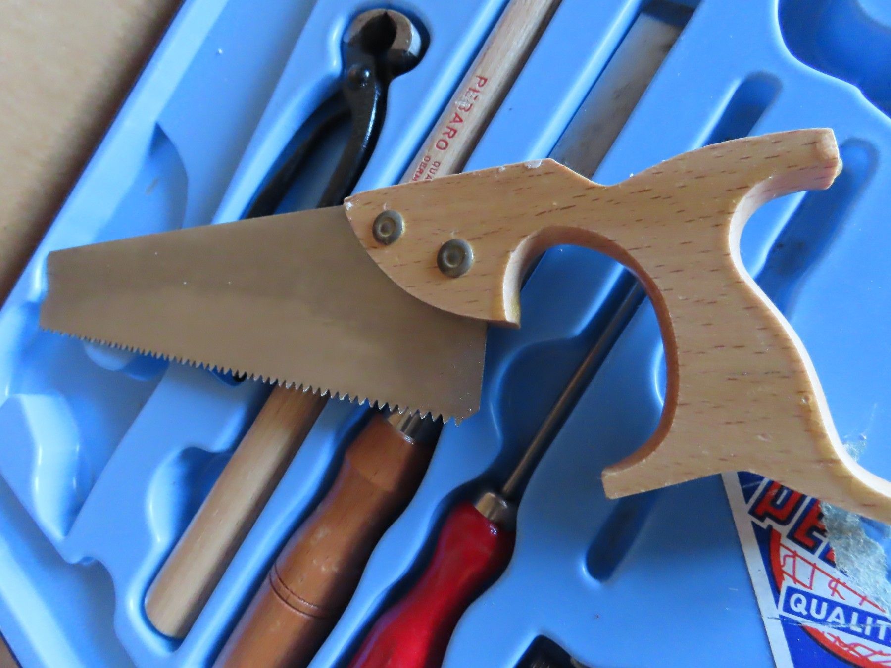 Kinderwerkzeug-Kasten Säge Meißel Hammer Schraubzwinge Pebaro