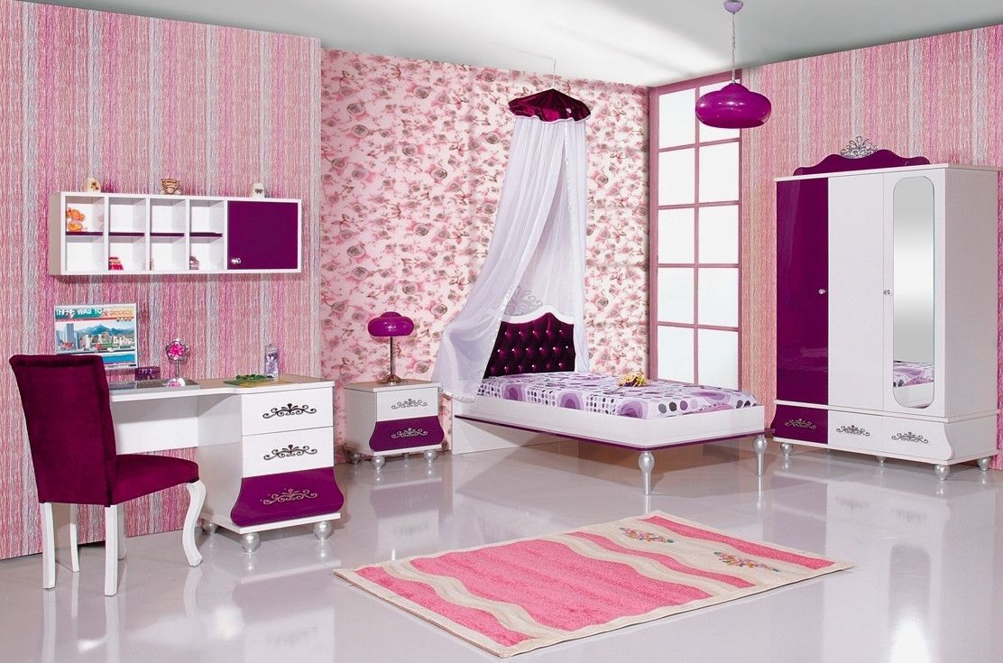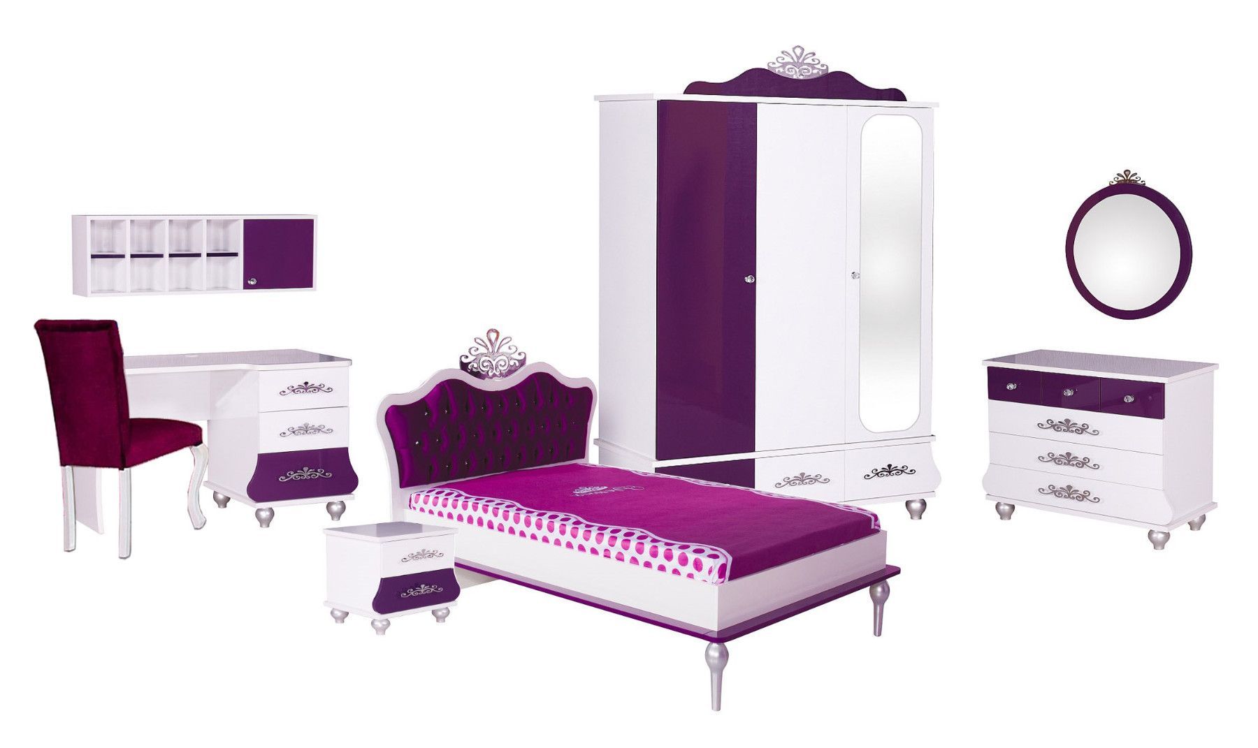 byMM Kinderzimmer Anastasia lila mit Bett 90x200cm, Mädchenzimmer, Sparset 9-teilig