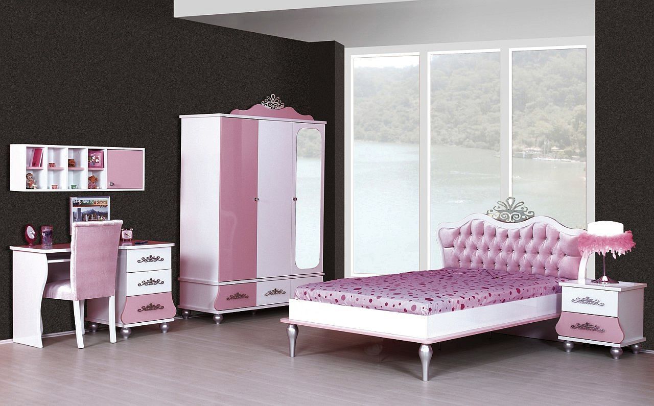 byMM Kinderzimmer Anastasia rosa mit Bett 90x200cm, Mädchenzimmer, Sparset 9-teilig