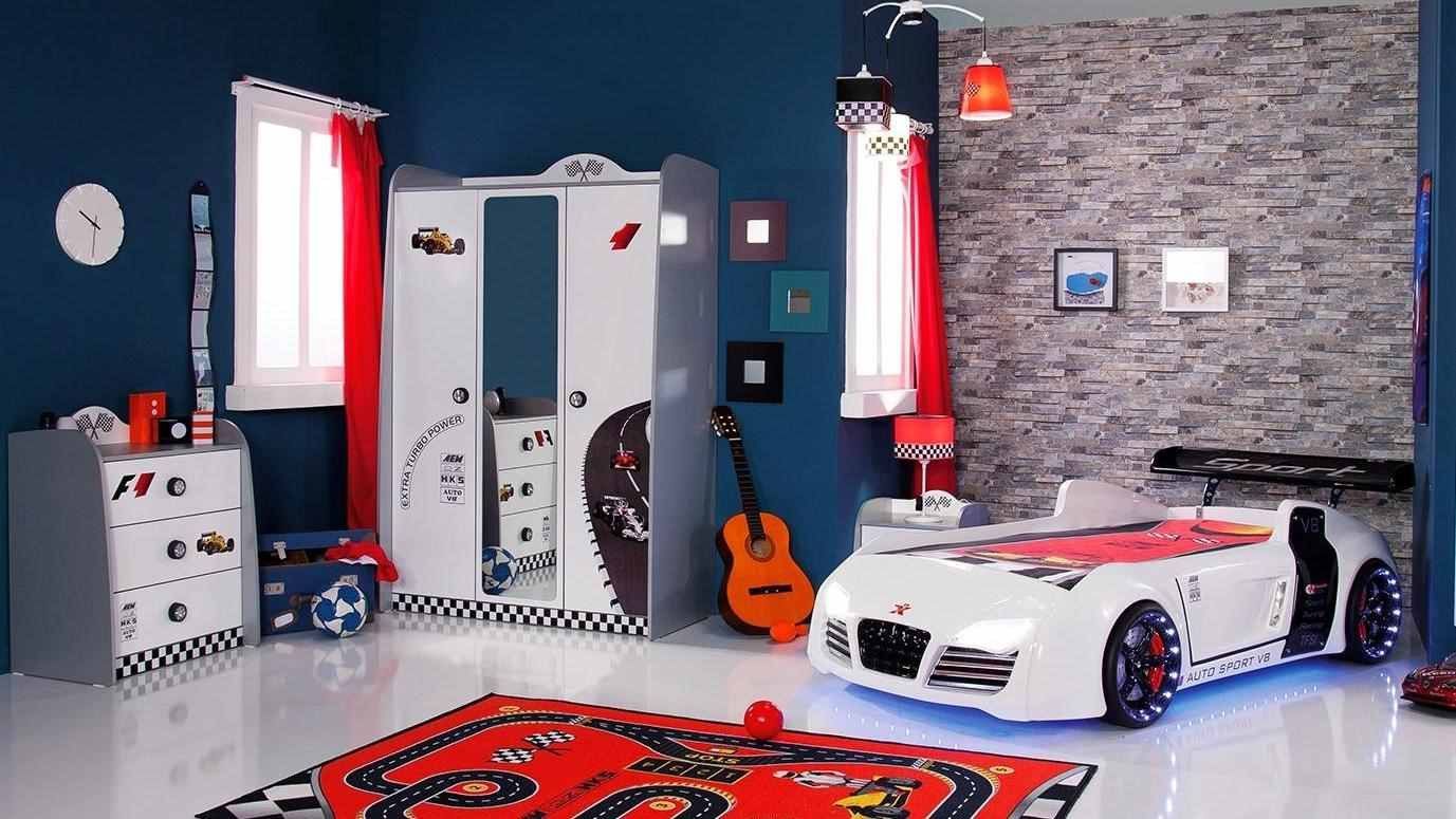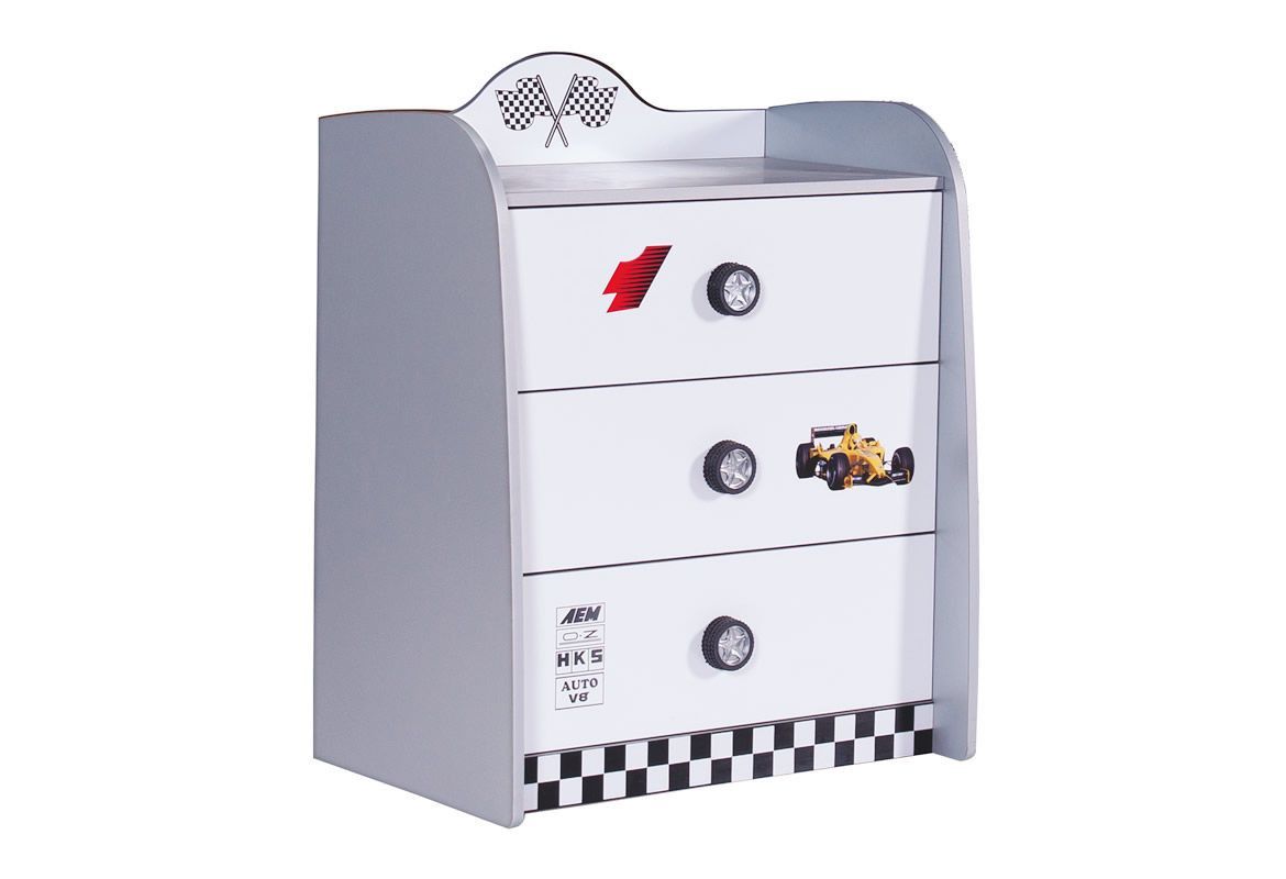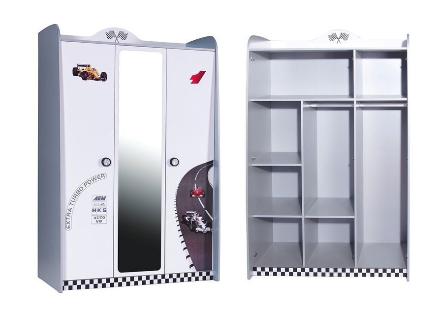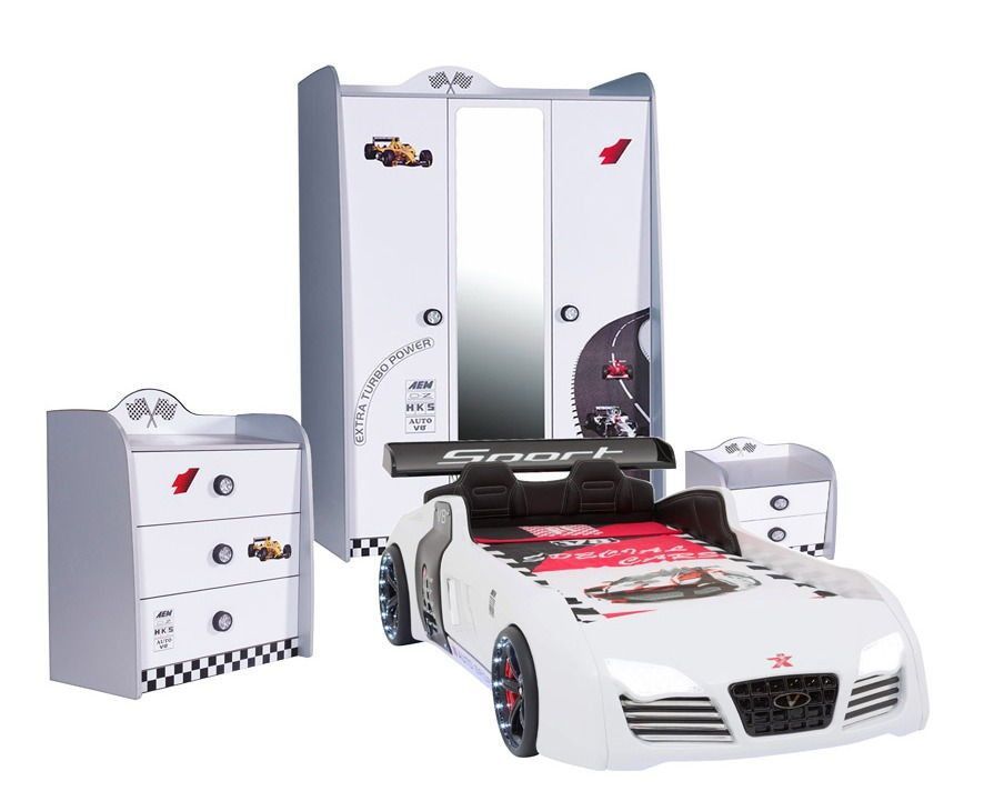 byMM Kinderzimmer Autobettzimmer TURBO 3 weiß mit Turbo V8 Autobett, Sparset 4-teilig