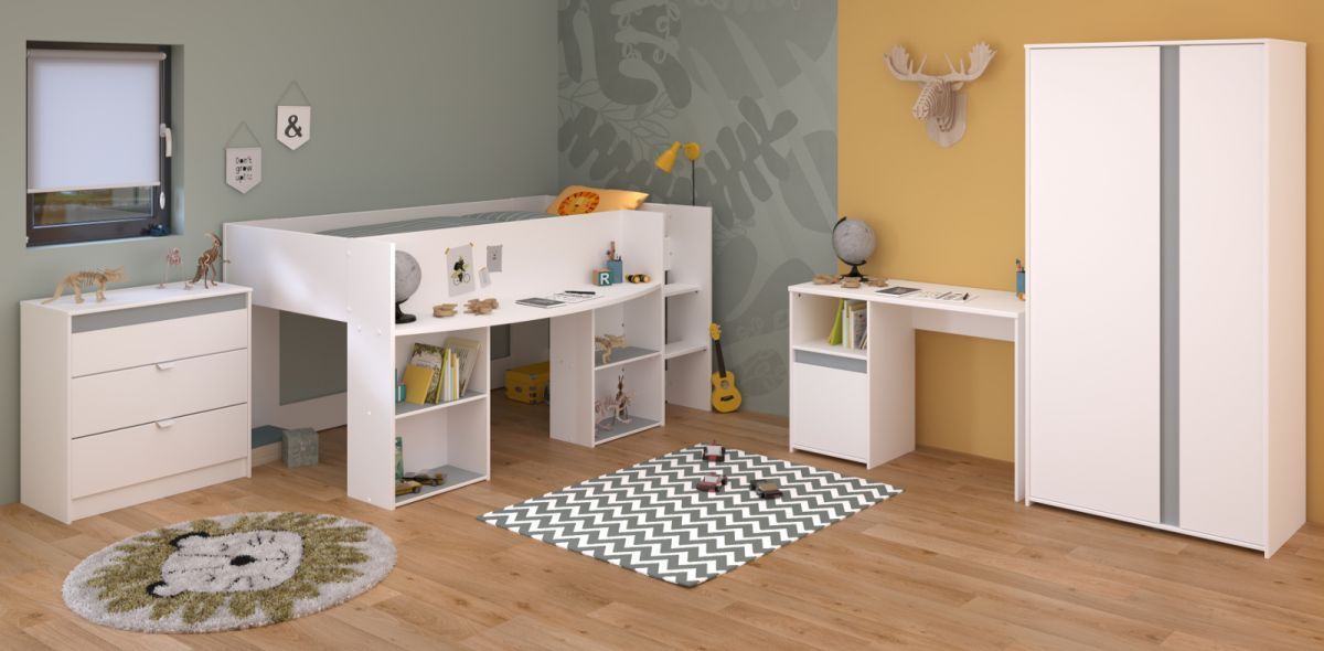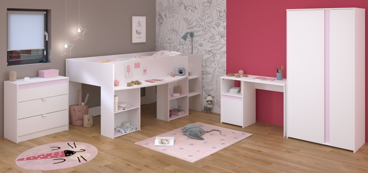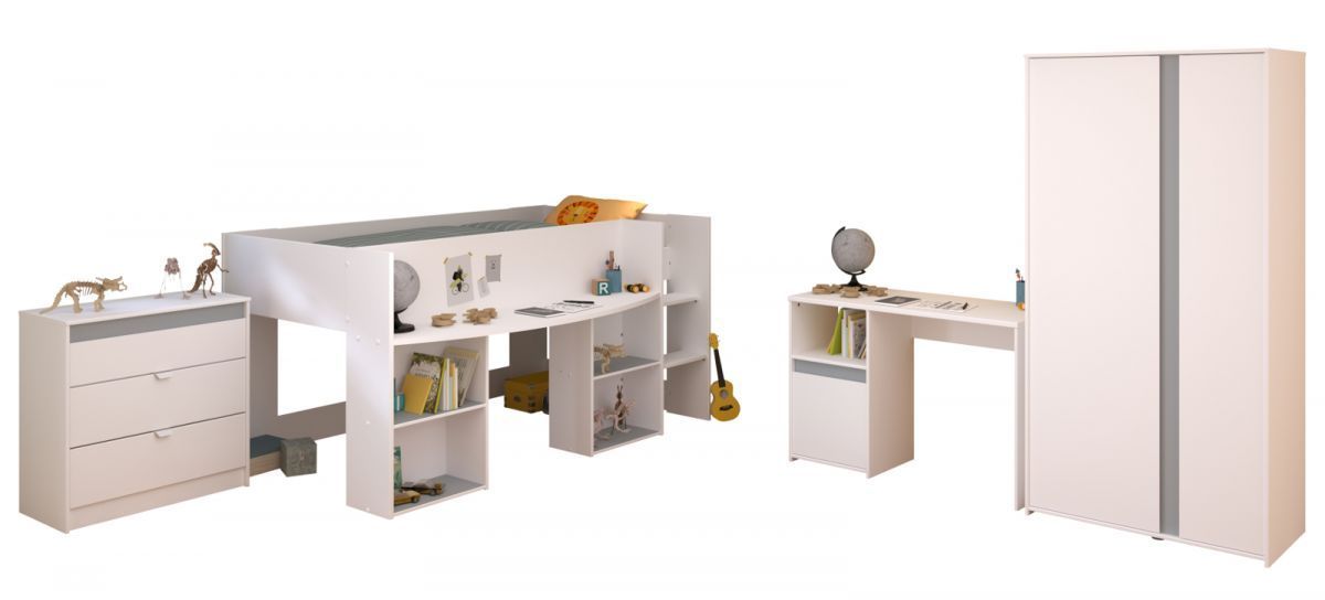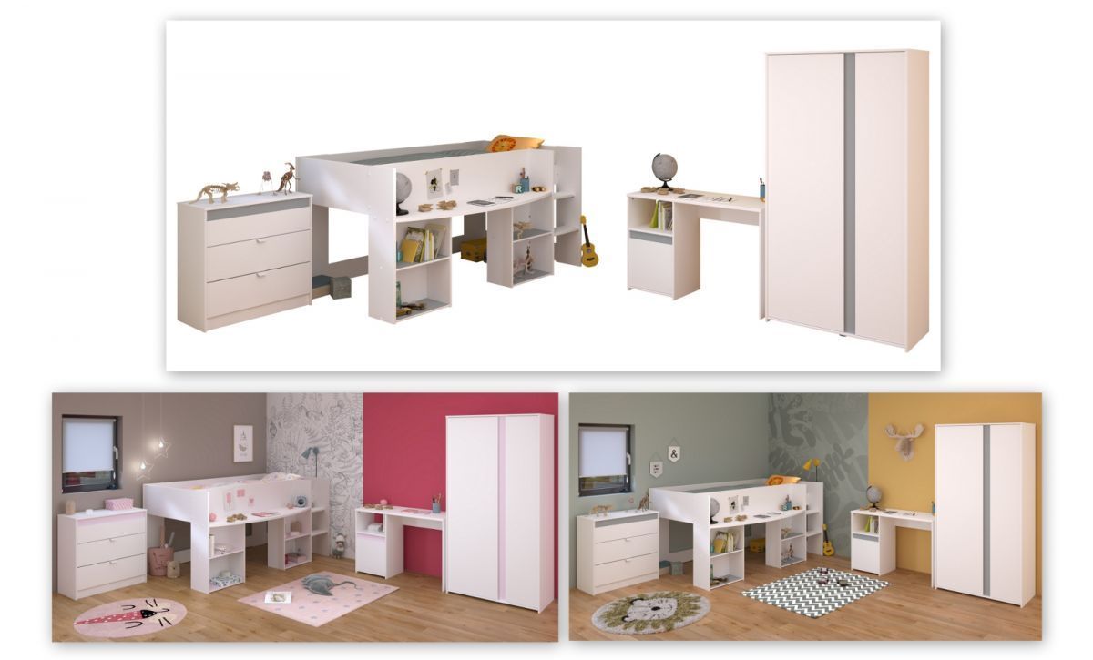 Kinderzimmer Jugendzimmer komplett Set 4-tlg Hoch Bett Kleiderschrank Pirouette
