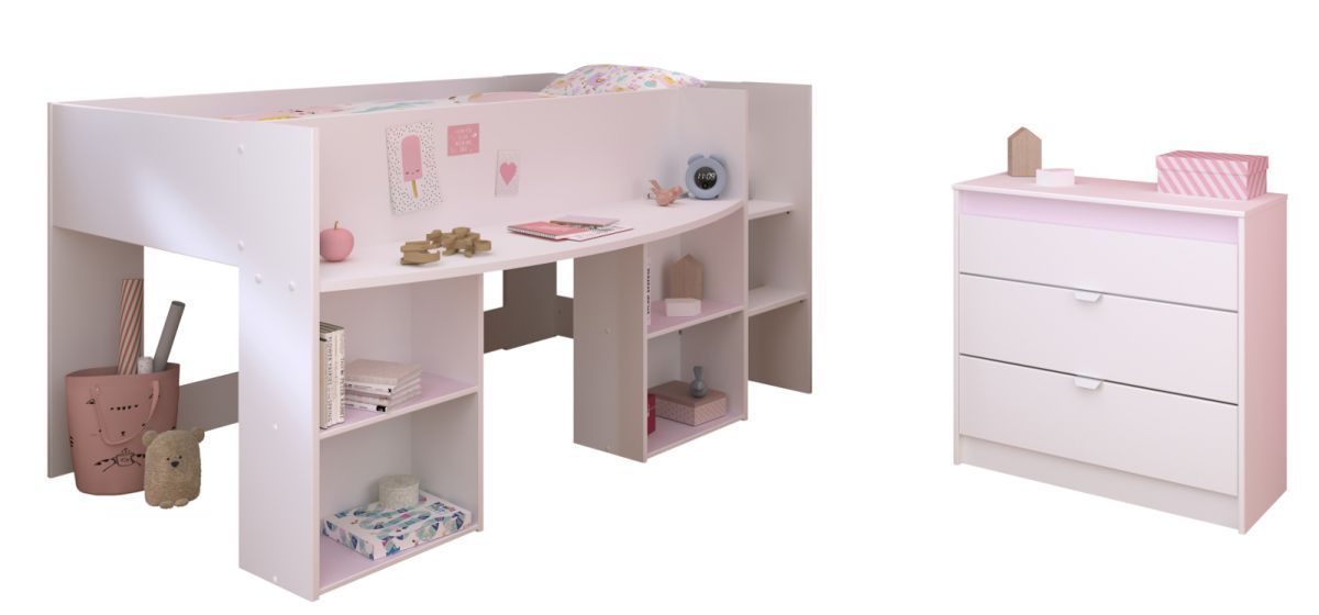 Kinderzimmer Jugendzimmer komplett Set mit Hochbett Kommode Lattenrost Pirouette