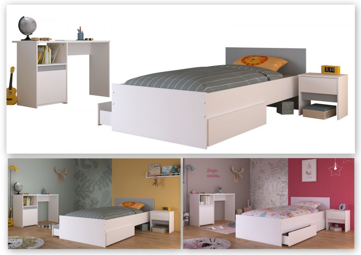 Kinderzimmer Jugendzimmer Set 3-tlg Stauraumbett Schreibtisch Nachttisch Pirouette