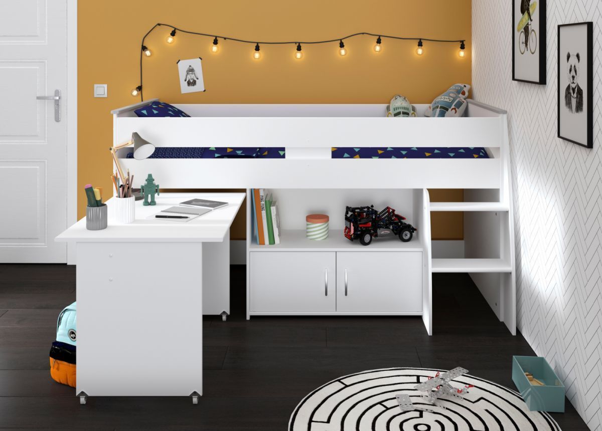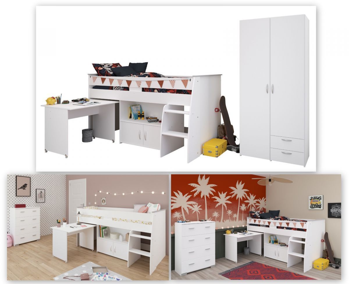 Kinderzimmer Jugendzimmer Set Hochbett mit Schreibtisch Kleiderschrank weiß Releave