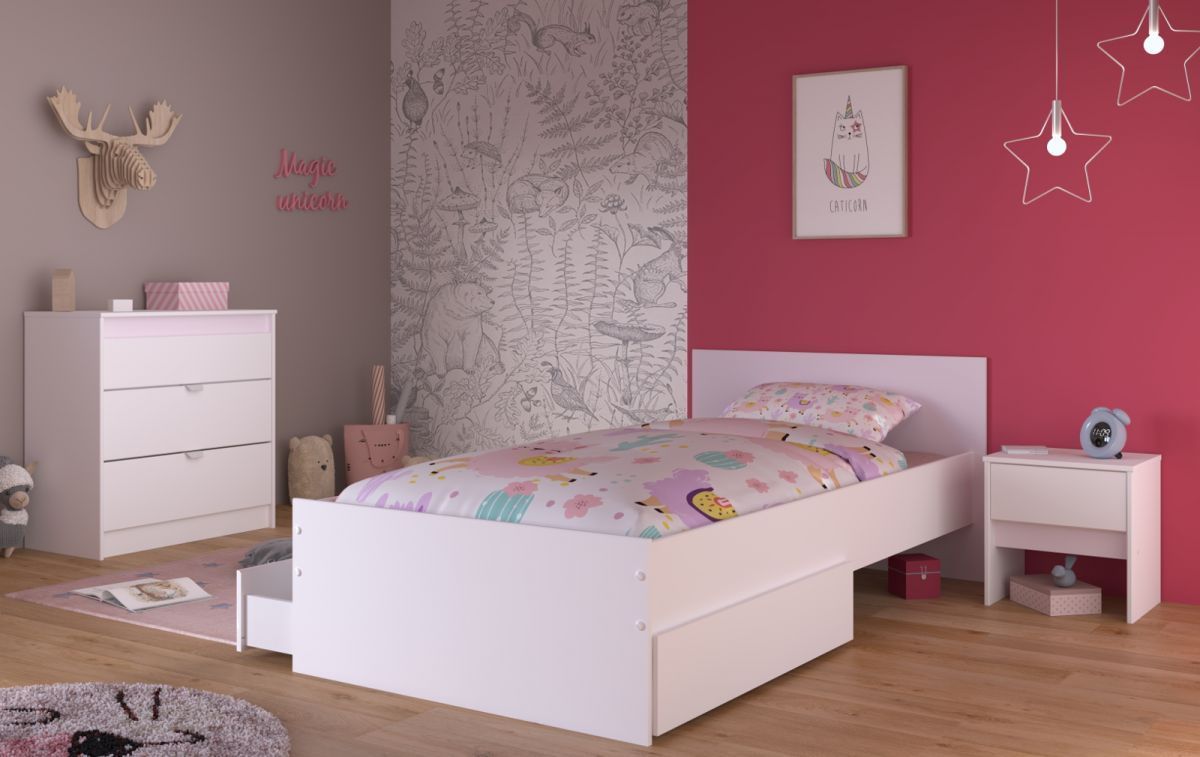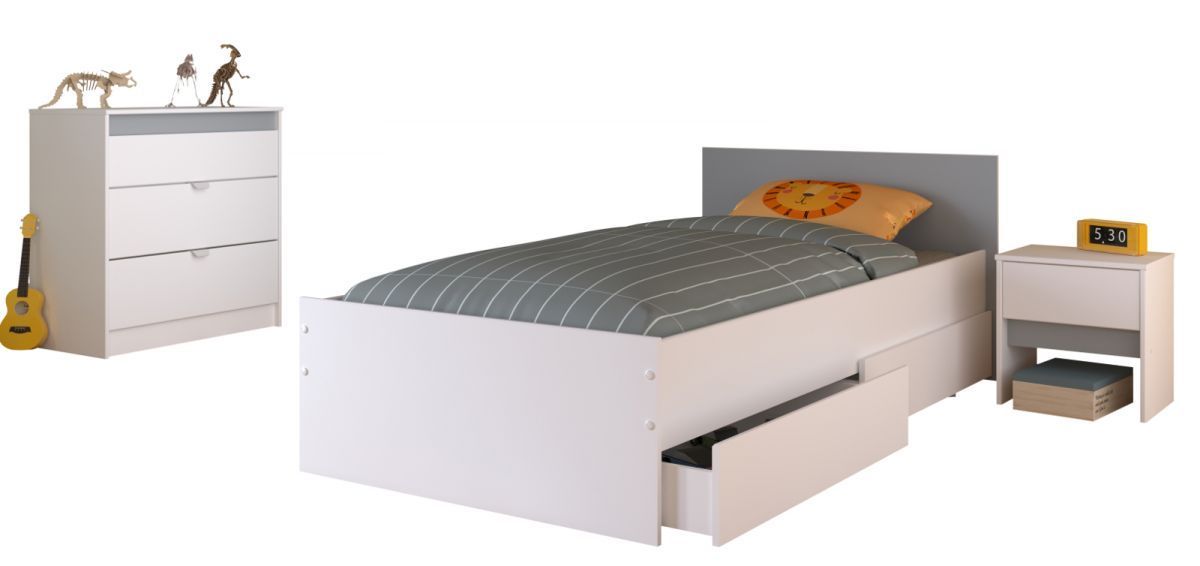 Kinderzimmer Jugendzimmer weiß komplett Set 3-tlg Bett Kommode Nachttisch Pirouette