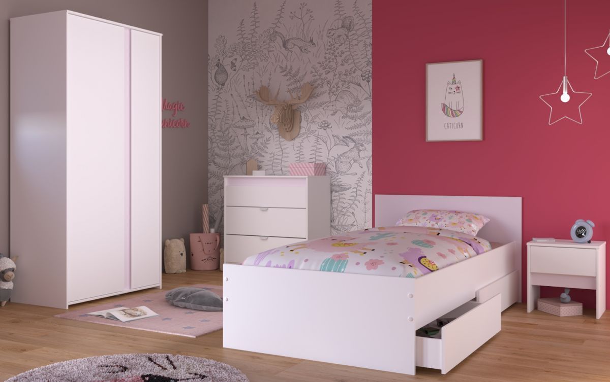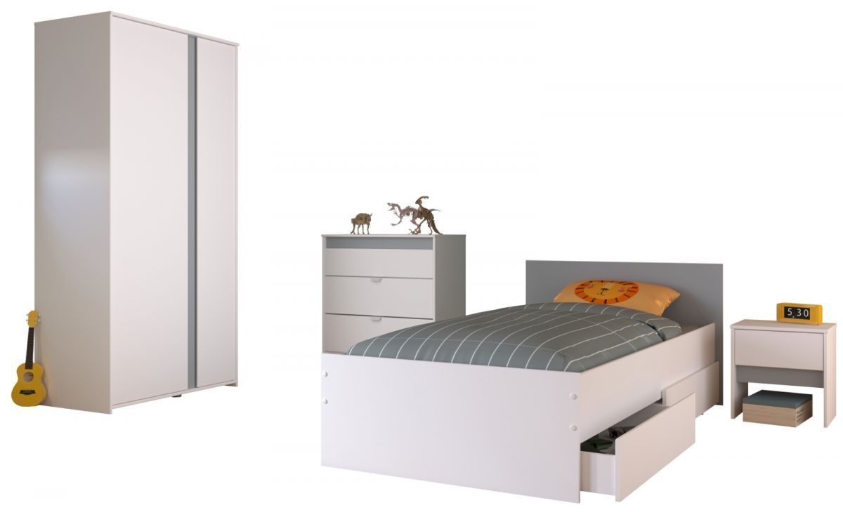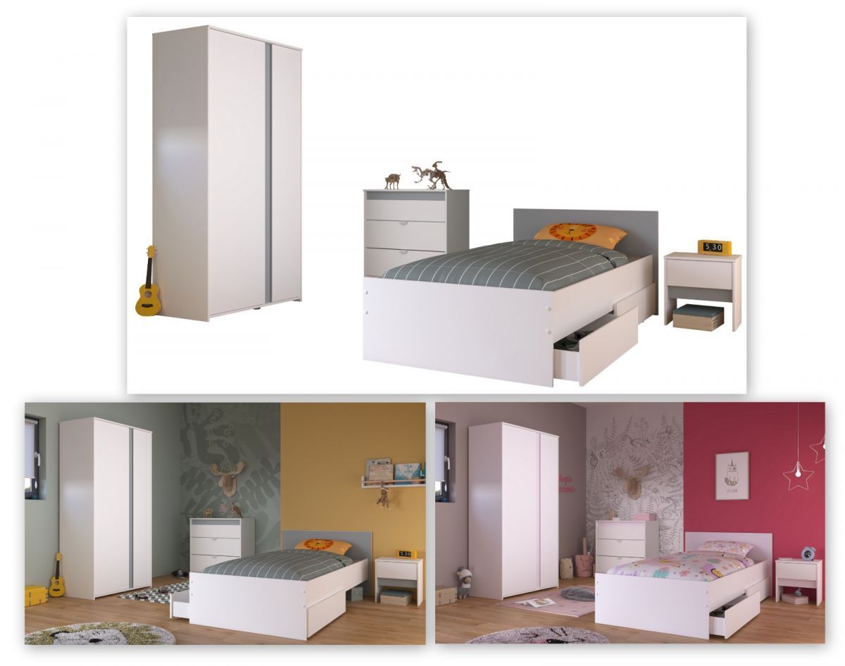 Kinderzimmer Jugendzimmer weiß komplett Set 4-tlg Bett Kleiderschrank Pirouette