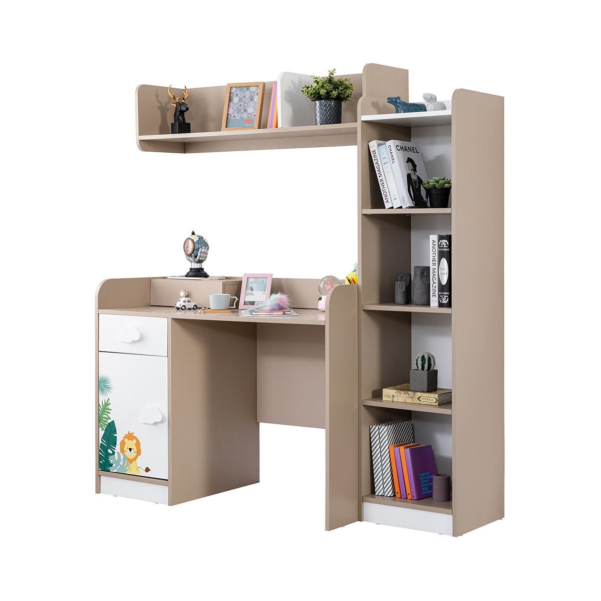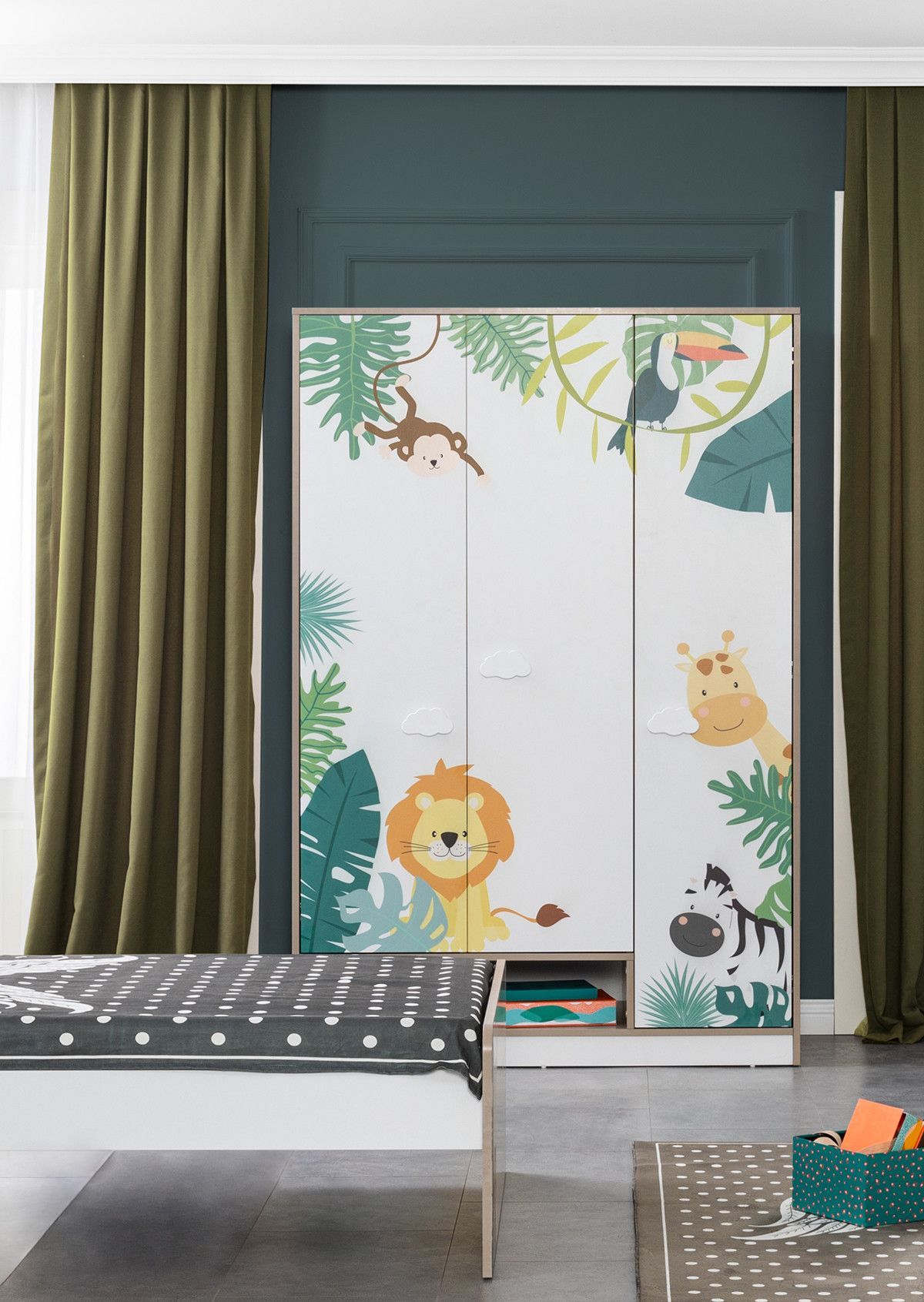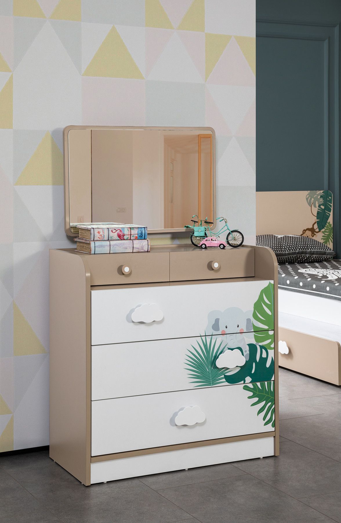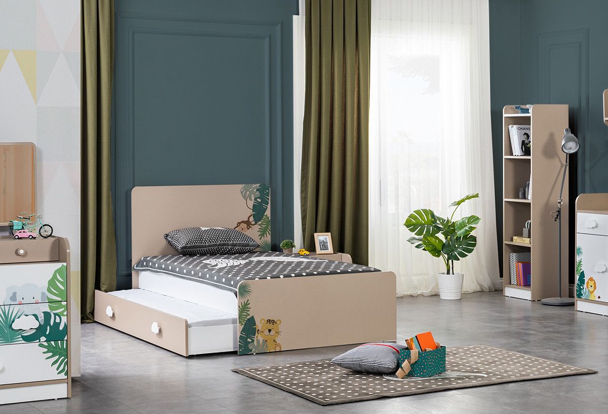 Kinderzimmer Set Safari in Weiß / Braun in Safarimuster