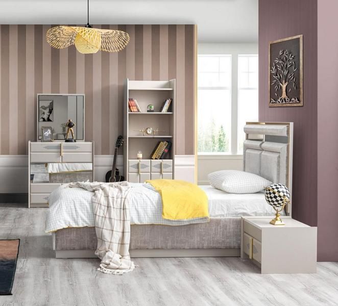 Kinderzimmer Set Top-Qualität Kinderbett Nachttisch Buecherregal Kommode Beige