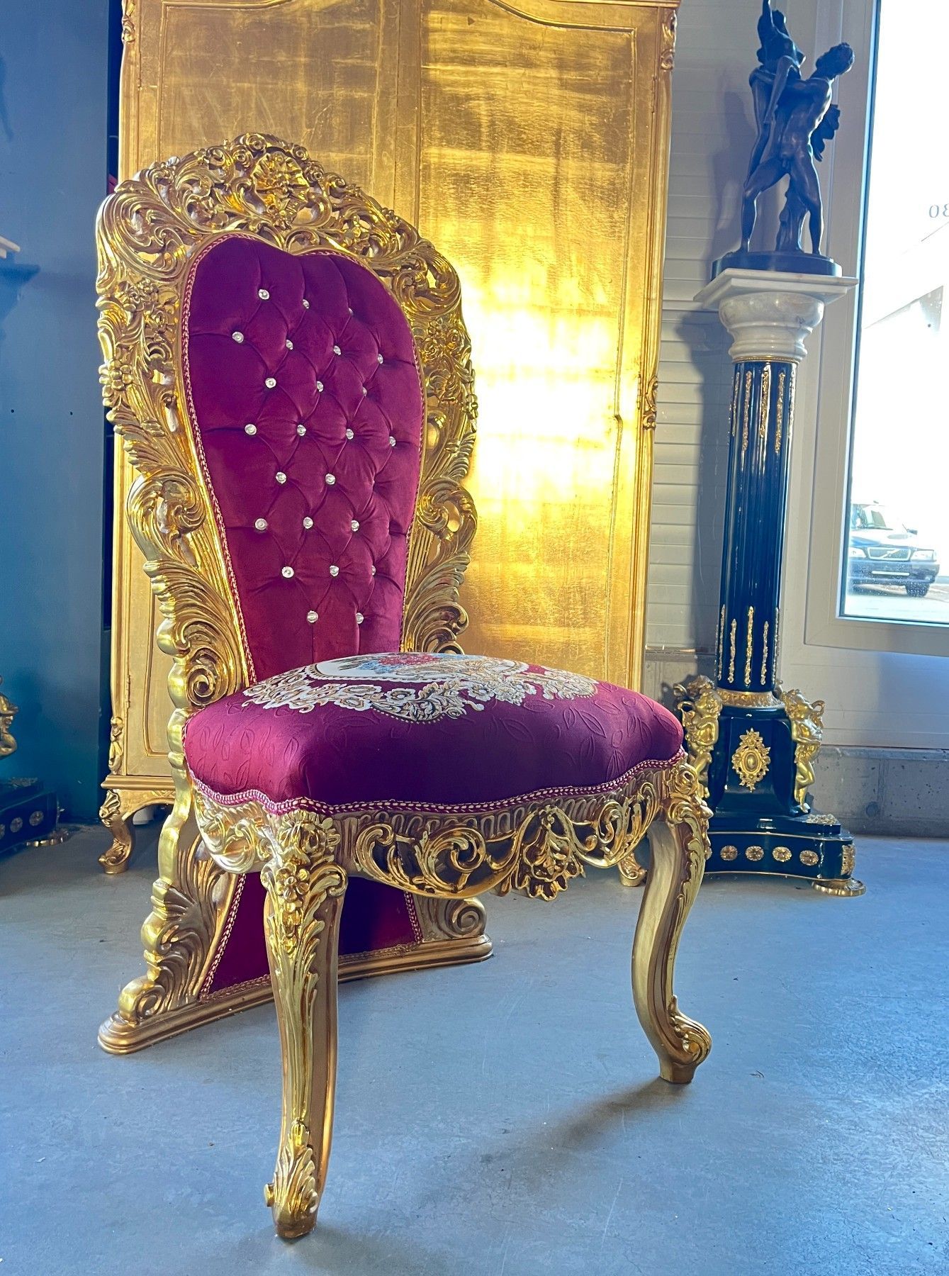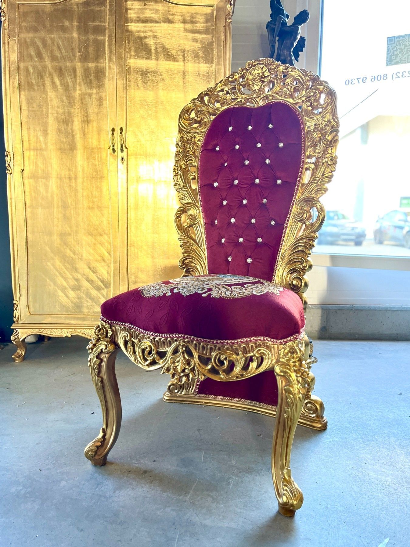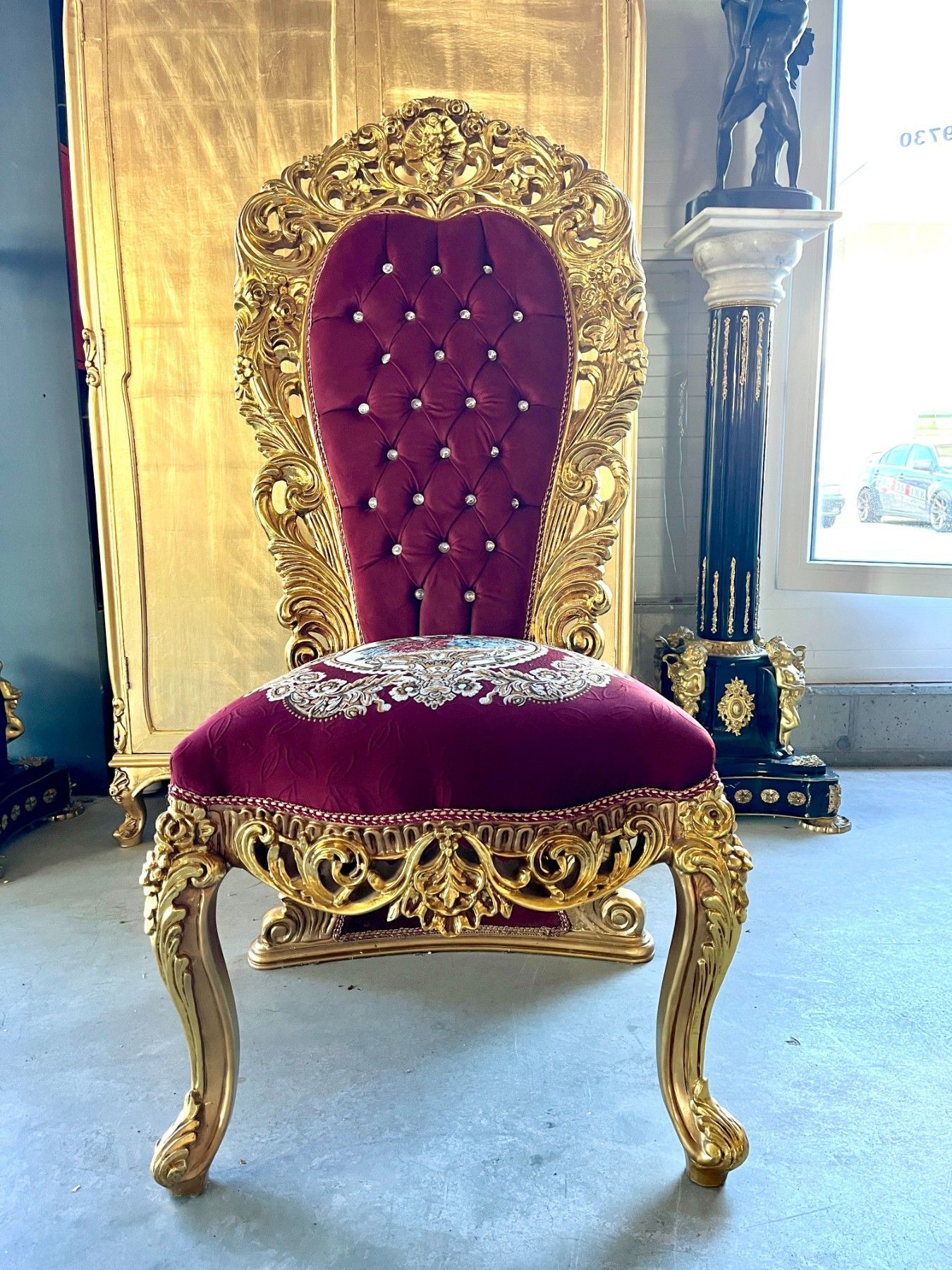 King Throne Italian Barock Rokoko style Huge Armchair in Handmade Gold Finish