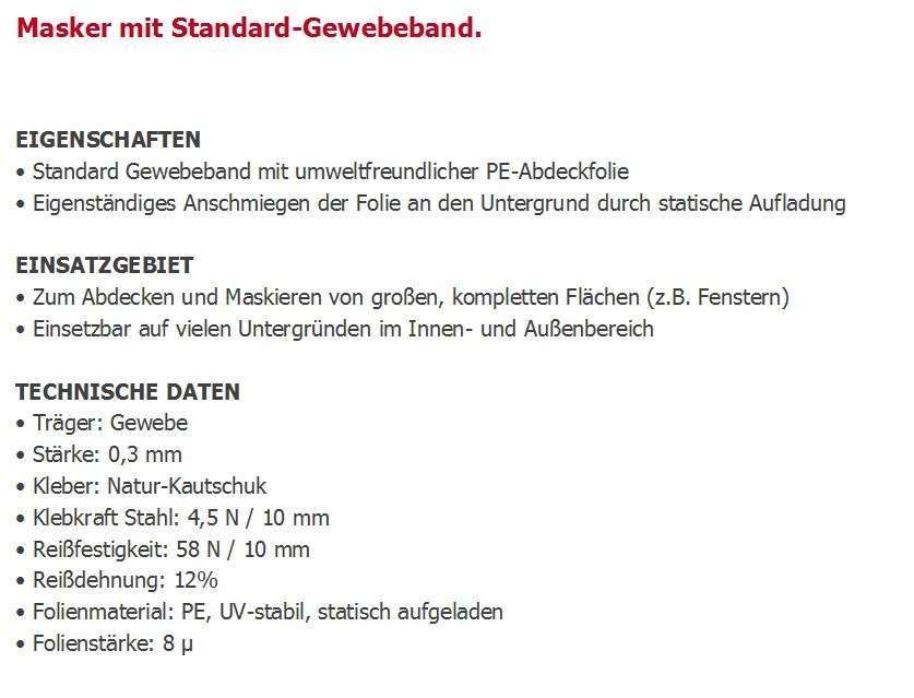 KIP Masker Gewebe Foliengewebe Abklebeband Folienband Malerfolie 1,10 x 20 m
