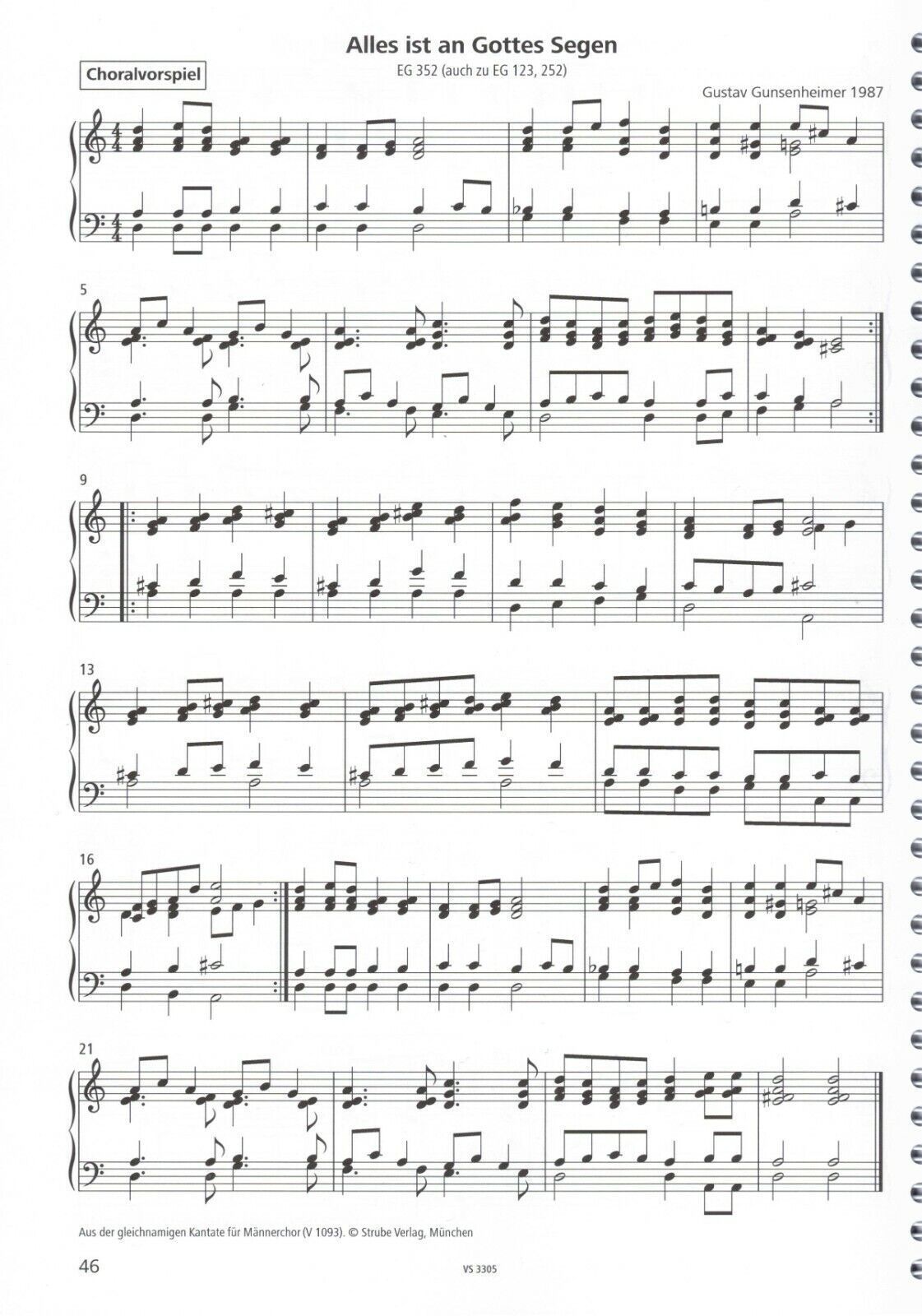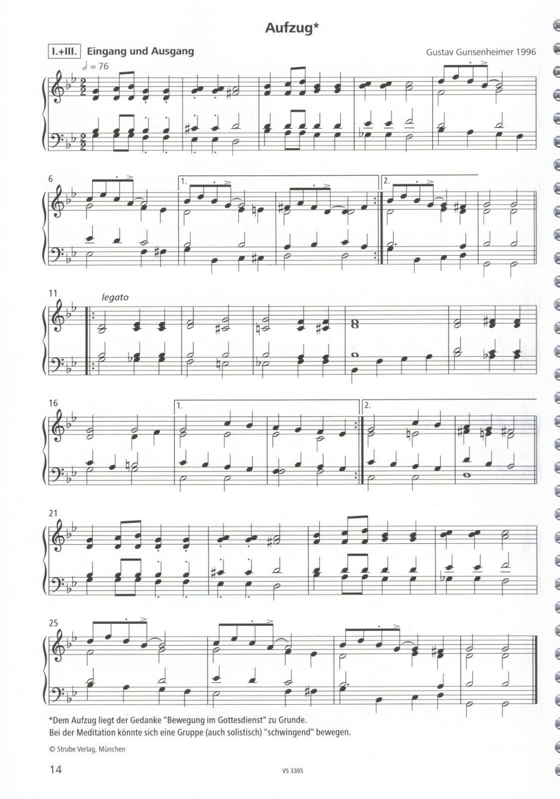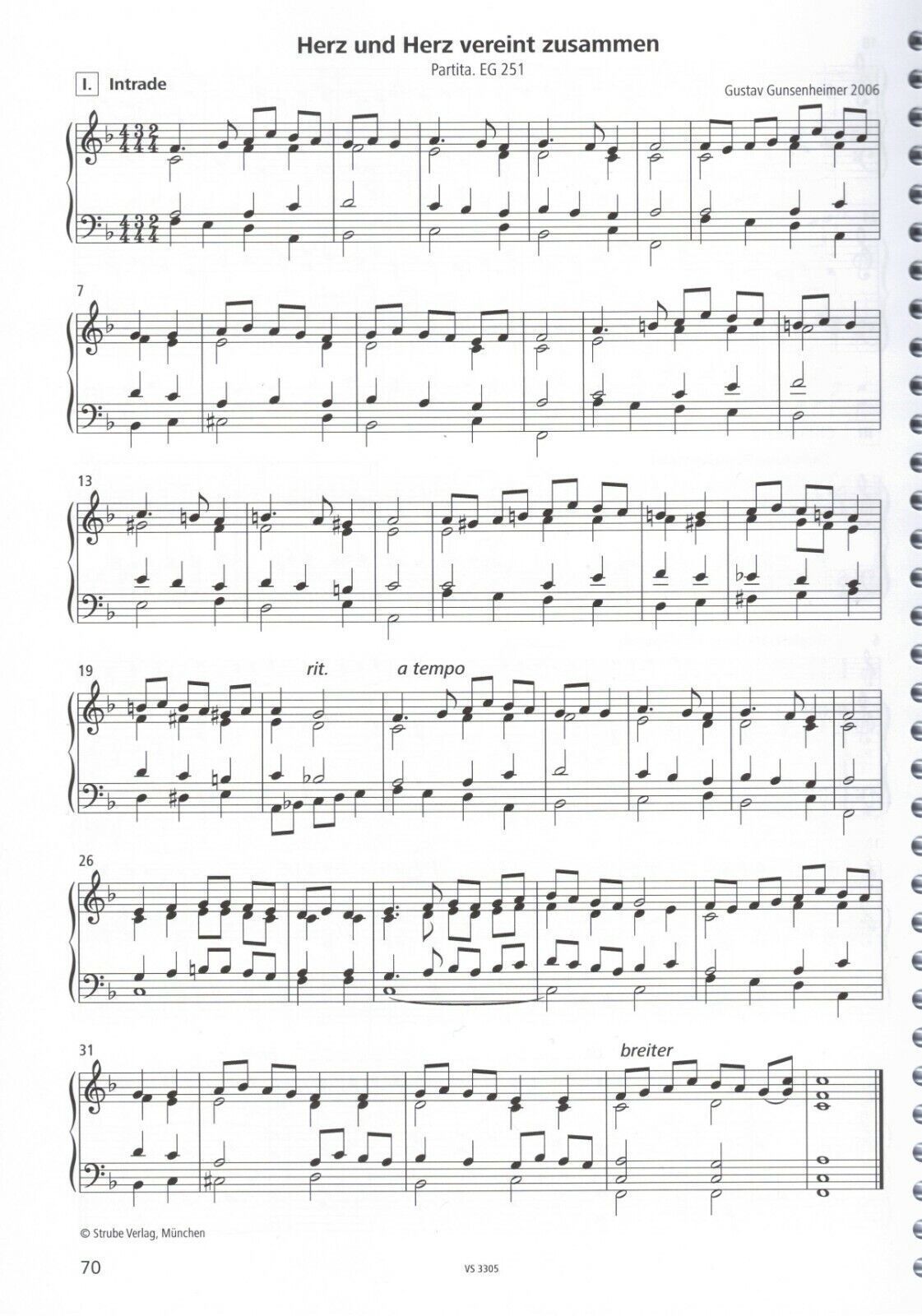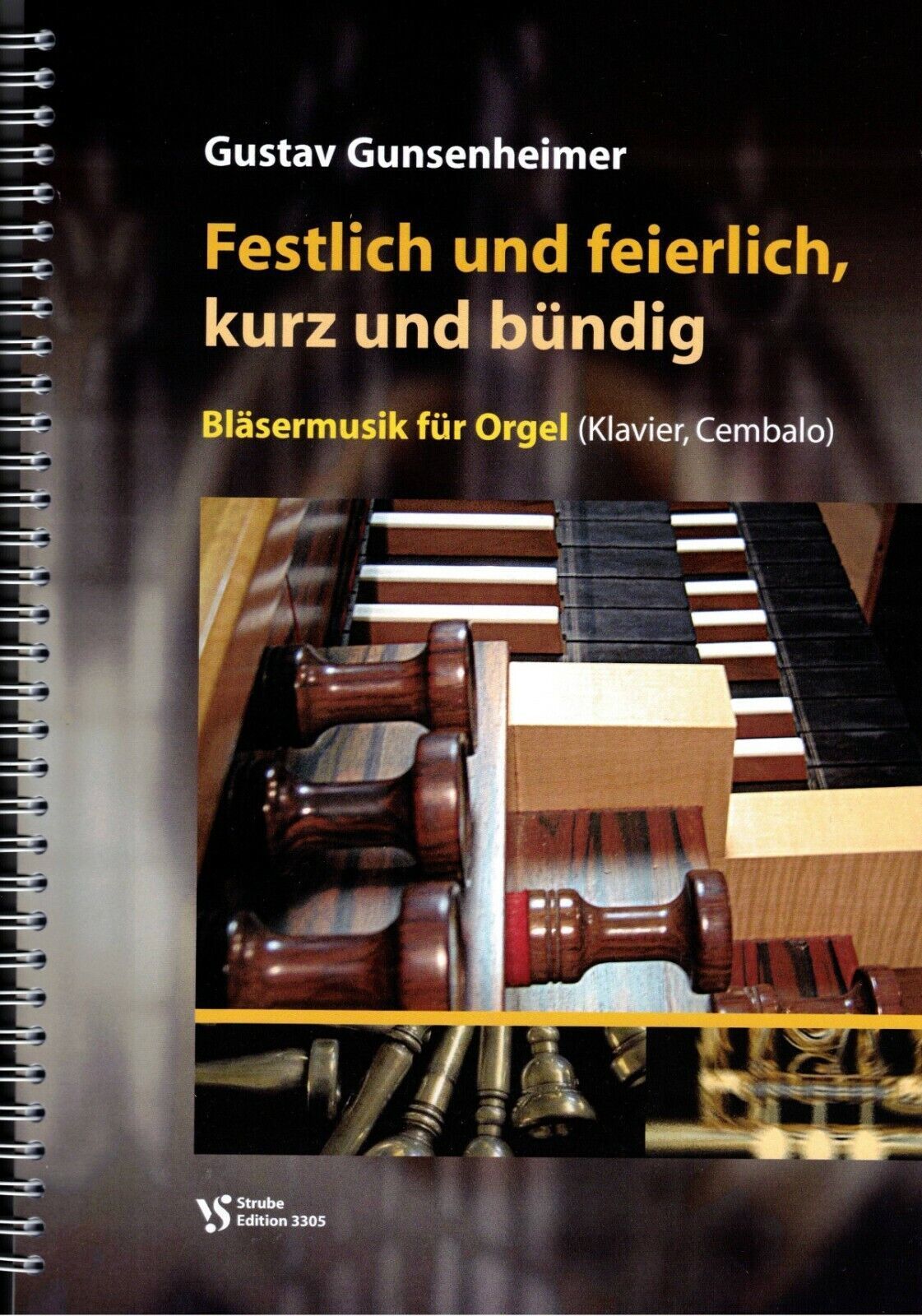 Festlich und feierlich kurz und bündig Bläsermusik für Orgel (Klavier Cembalo) herausgegeben von Gustav Gunsenheimer Auszug aus dem Vorwort: .... bei Anlässen wo ein kurzes Orgelspiel angebracht ist. Außerdem bedenke man, dass es sich bei den Zuhörern in den meisten Fällen nicht um ein Konzertpublik