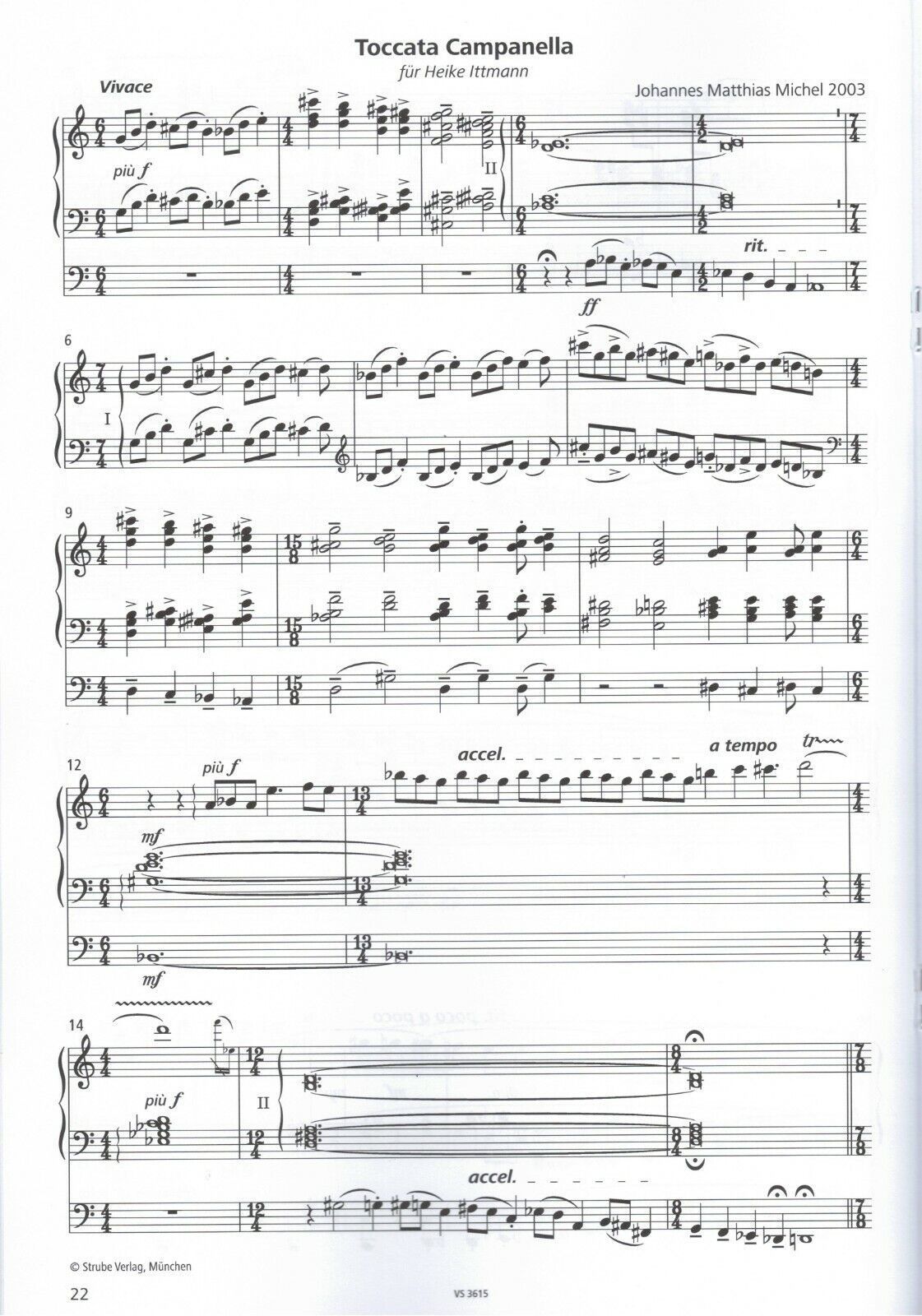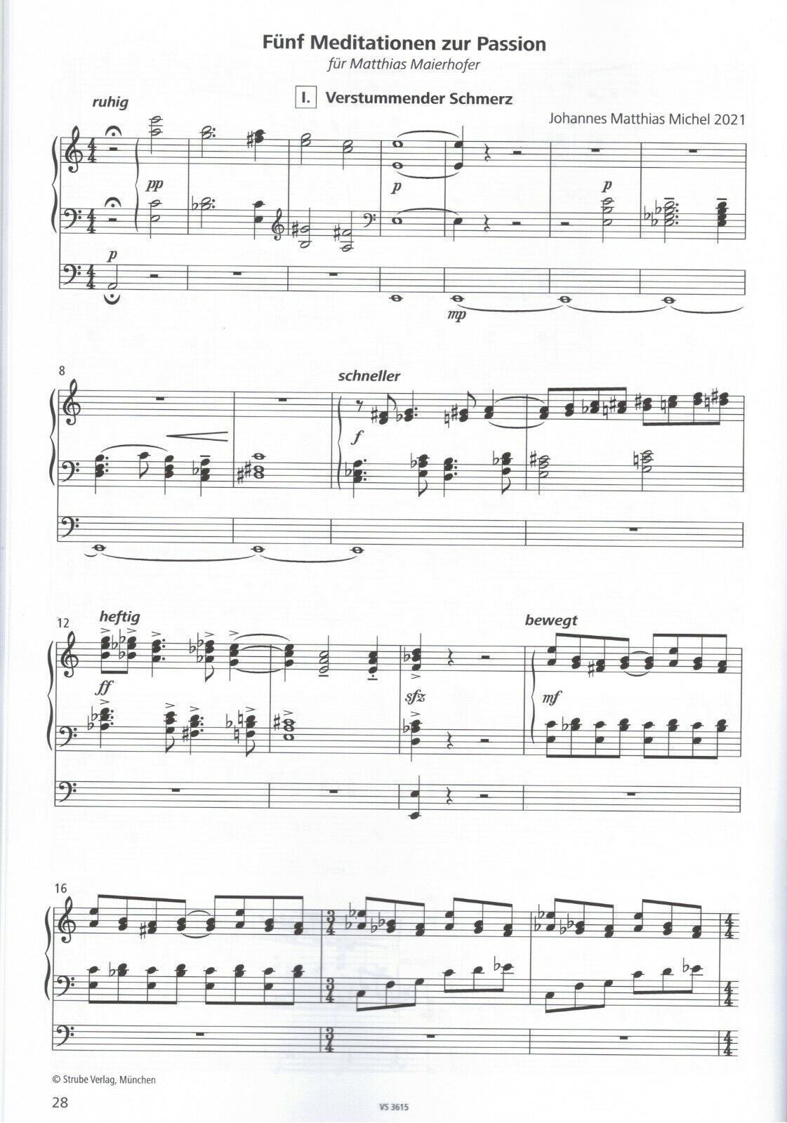 Orgelbuch 21 Zehn freie Orgelwerke von Johannes Matthias Michel . Zustand: NEUWARE Verlag : Strube Verlag - VS 3615 Seitenanzahl : 41 Schwierigkeitsgrad: mittelschwer (meine pers. Einschätzung) Inhalt: 5 Meditationen zur Passion Fanfare Haec dies Toccate, In unum Deum Scherzo Tierce en Taaille Tocca
