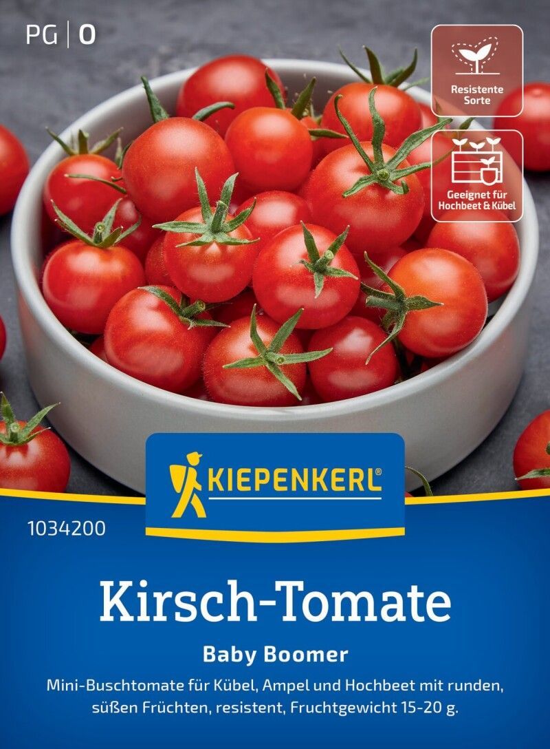 Kiepenkerl Kirsch-Tomate, Baby Boomer, F1, Mini-Buschtomate für Kübel, Ampel und